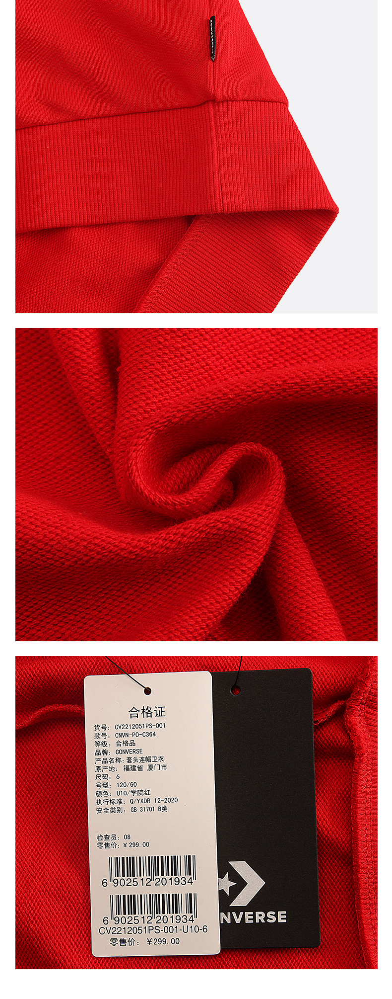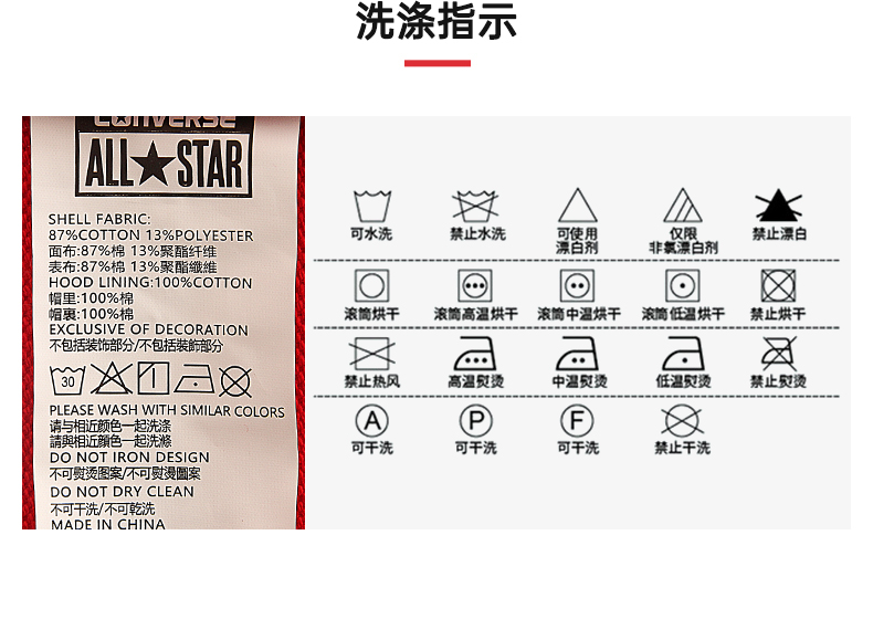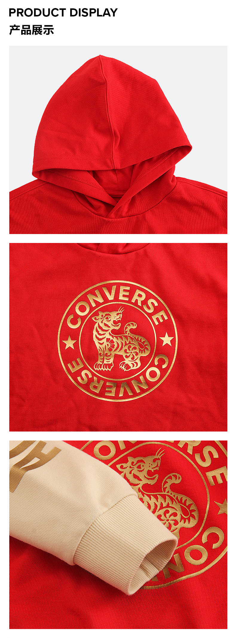 Converse匡威商场同款童衣童装春新年款毛圈纯棉套头连帽卫衣CV2212051