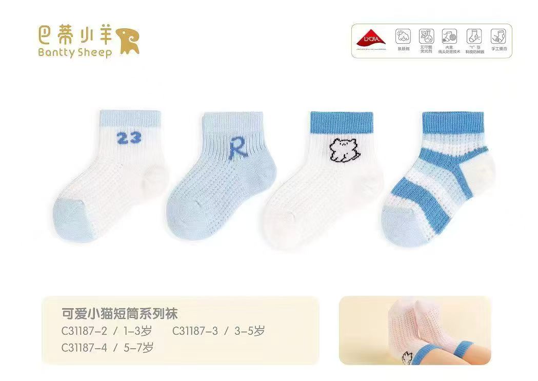 巴蒂小羊2-25配饰可爱小猫短筒系列袜1-3岁BDX-C31187-2
