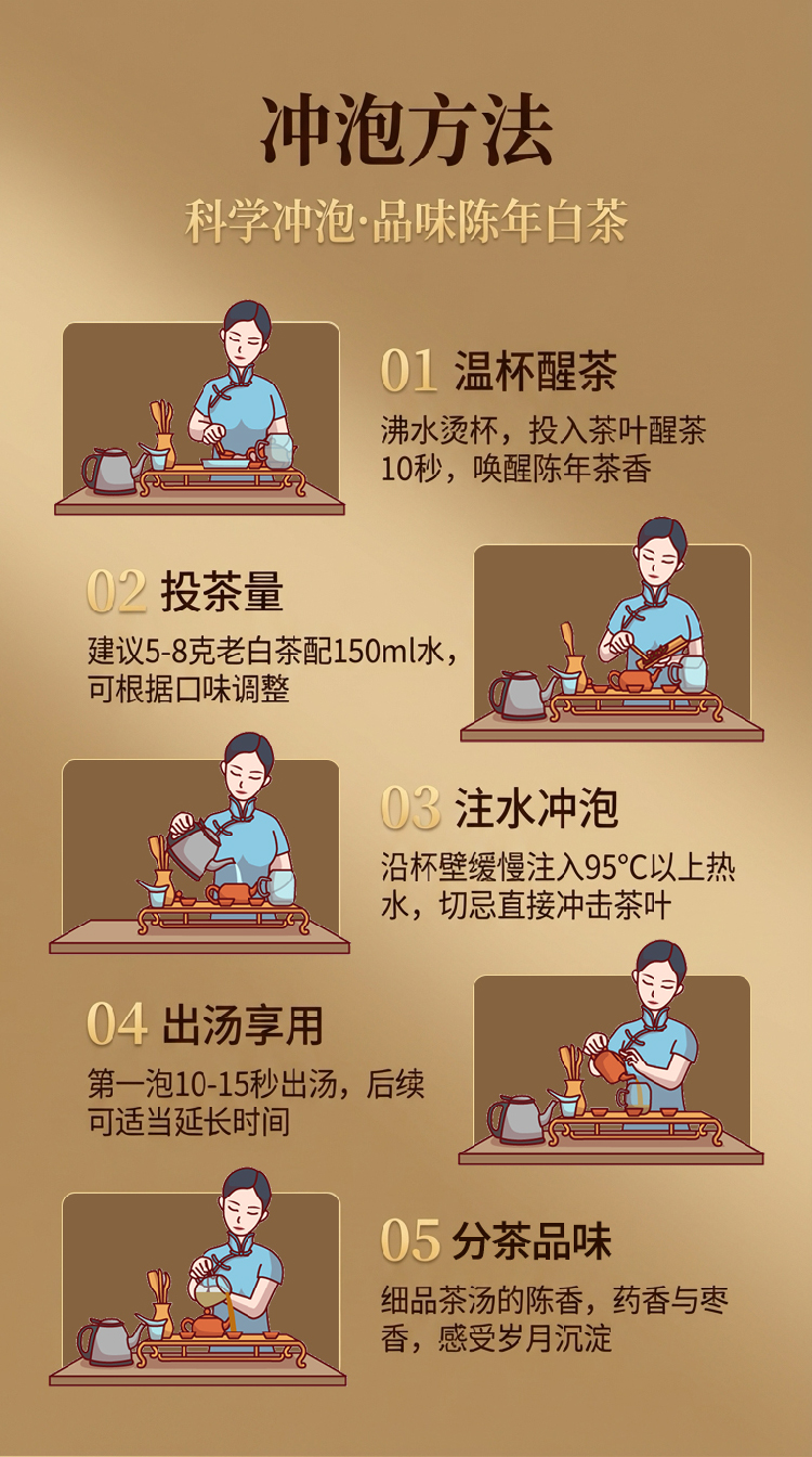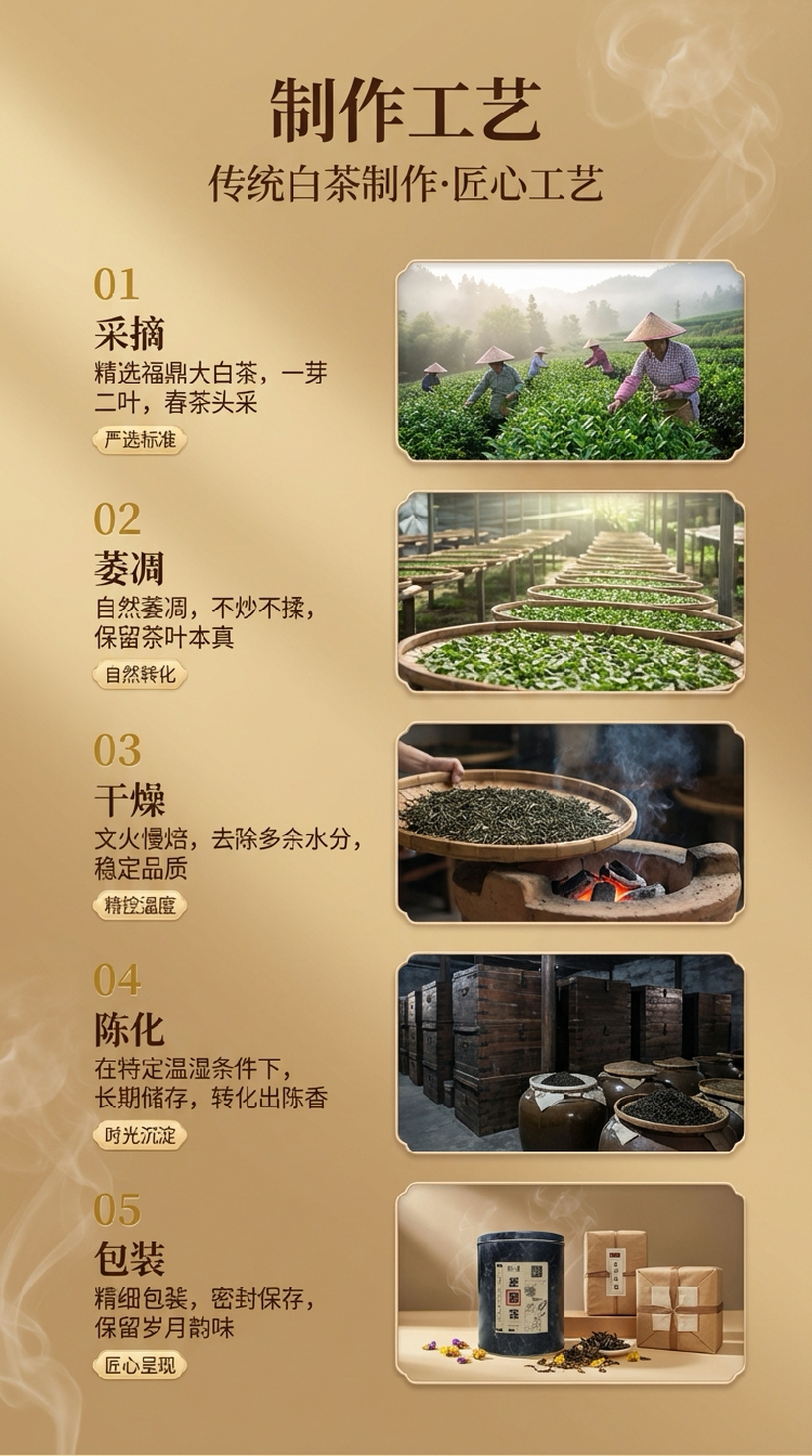 精选福鼎大白茶,春茶头采,自然萎凋,不炒不揉,保留茶叶本真;