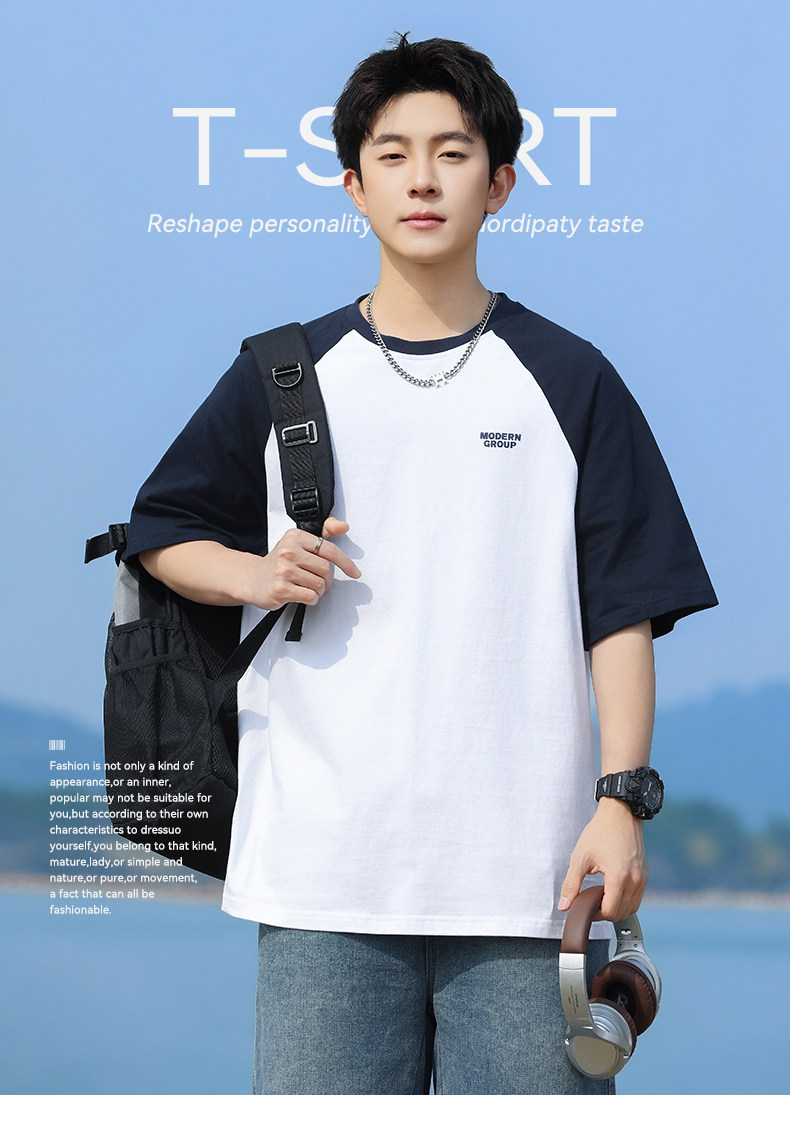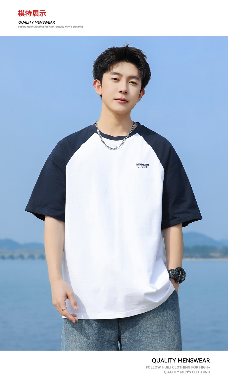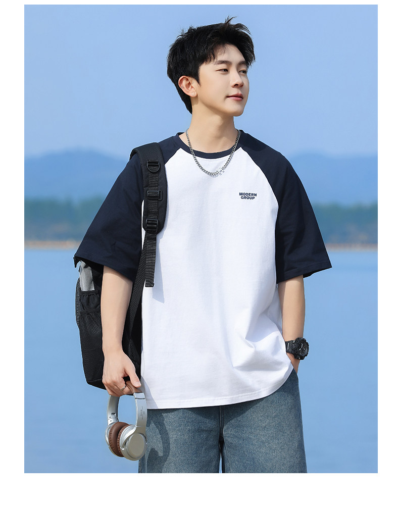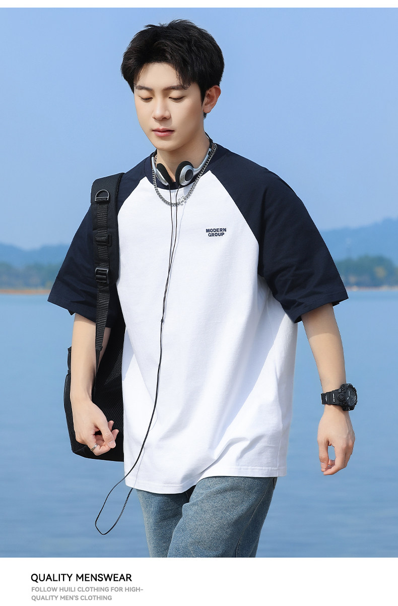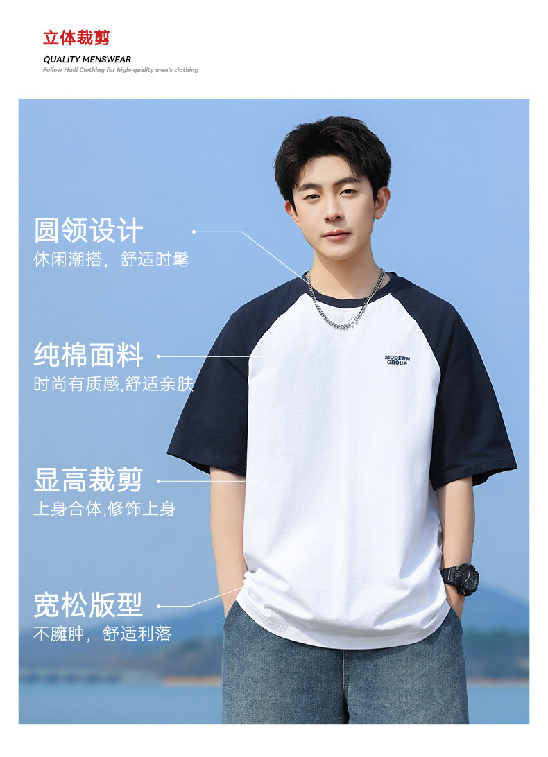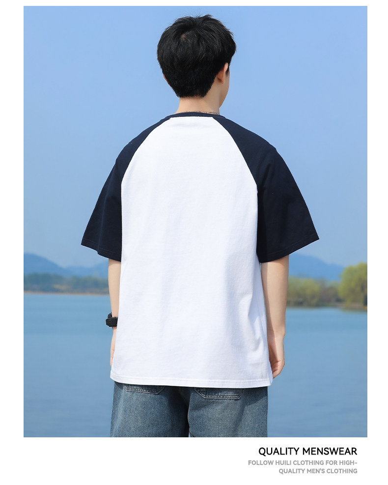 回力短袖T恤男2025夏季新款纯棉半袖宽松撞色插肩袖复古体恤上衣