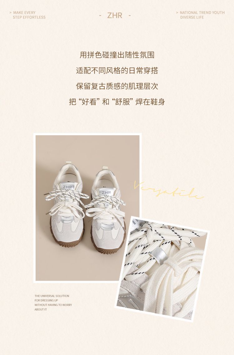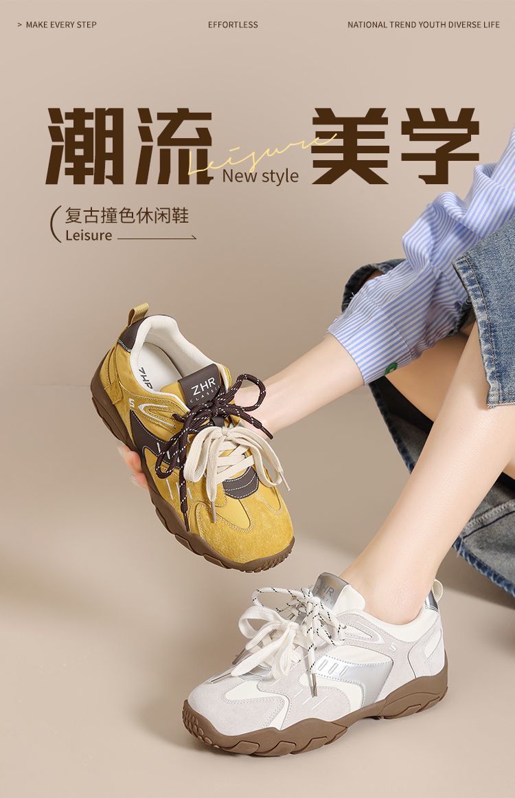 ZHR则则经典复古撞色阿甘鞋女春季新款潮流轻便休闲鞋百搭德训鞋