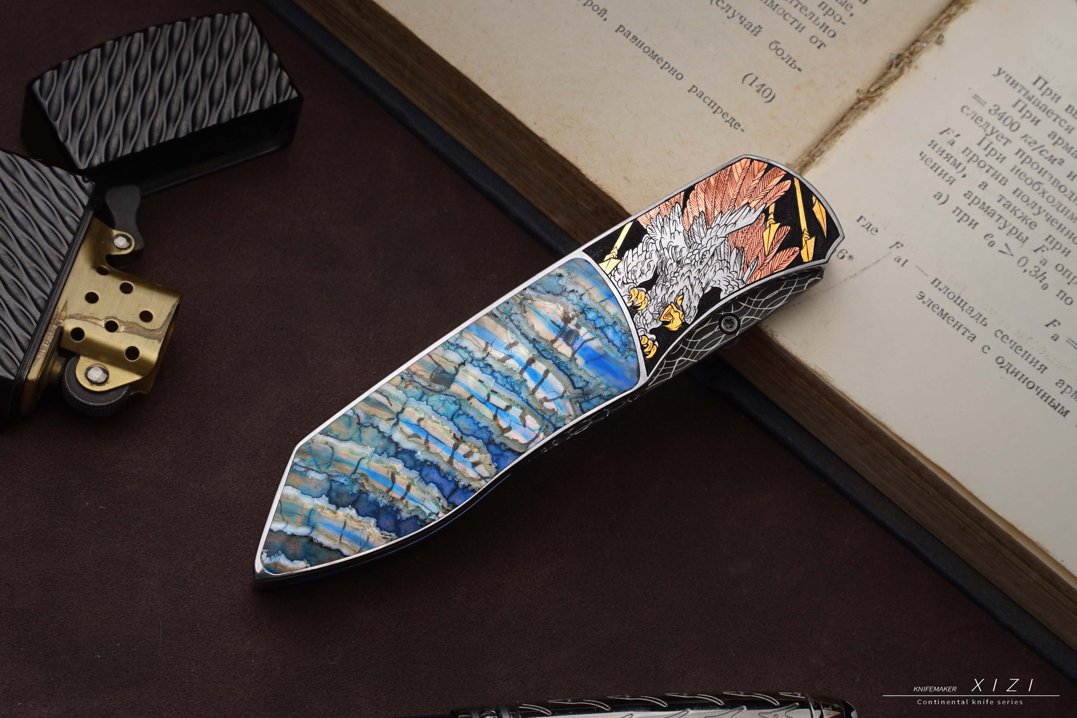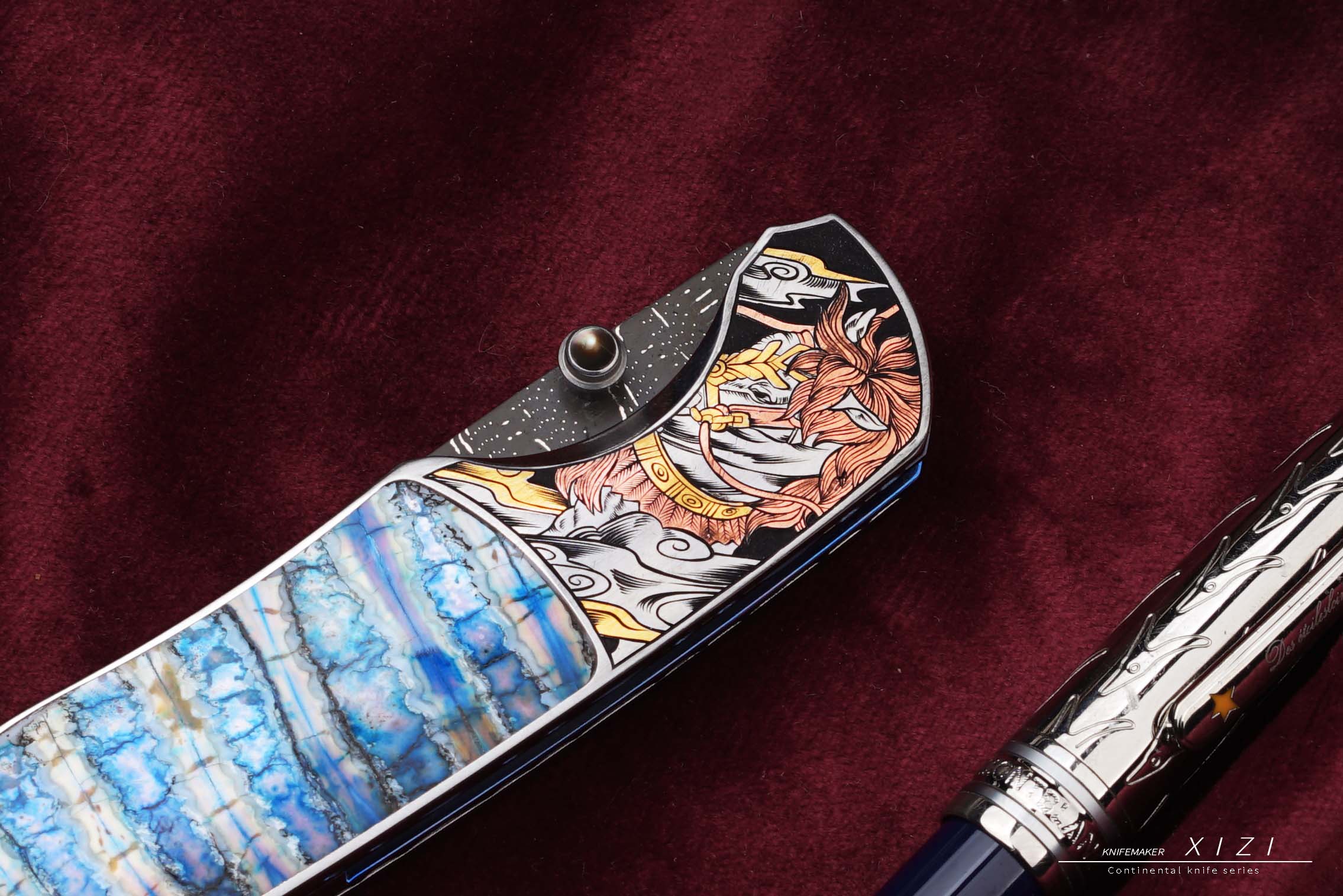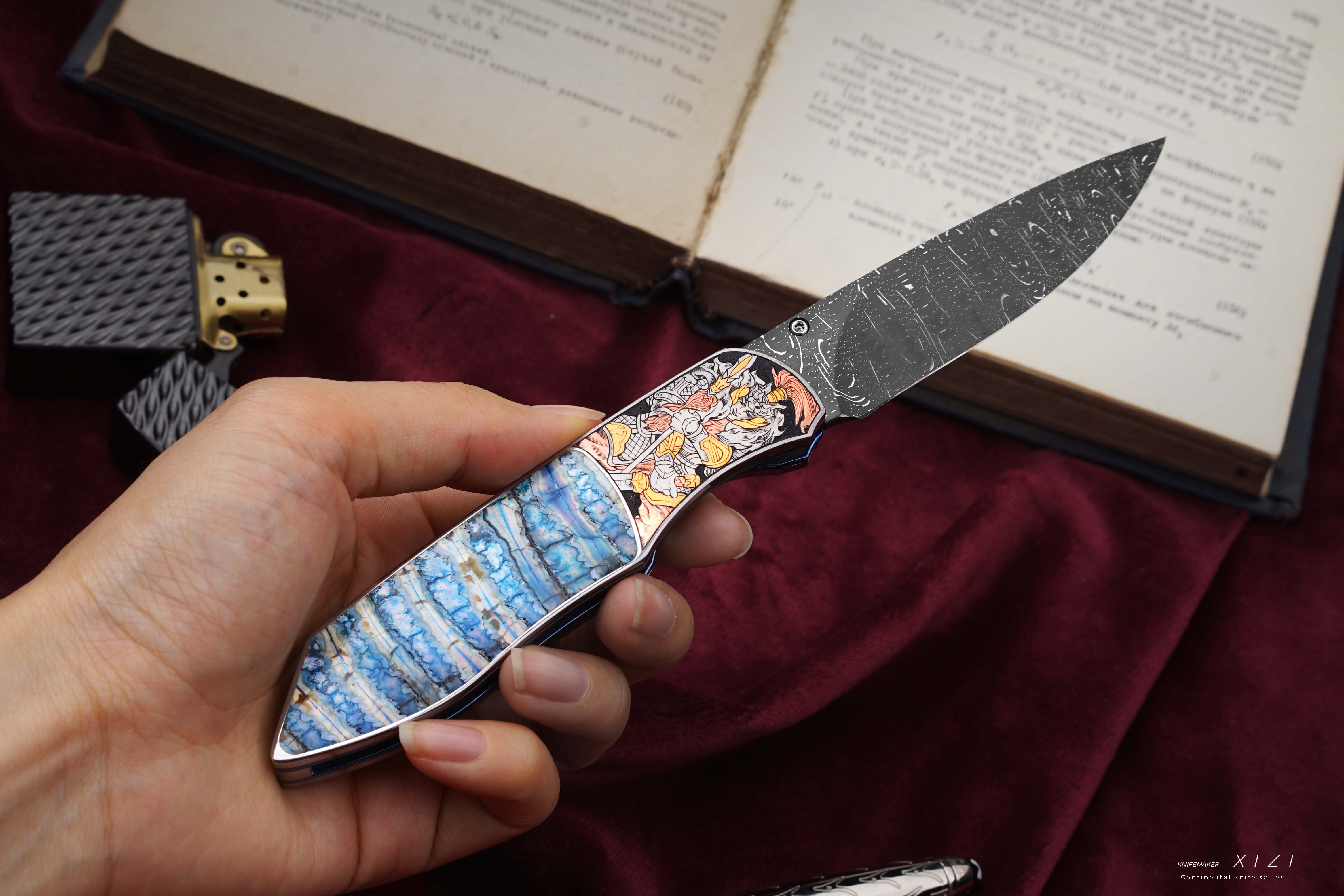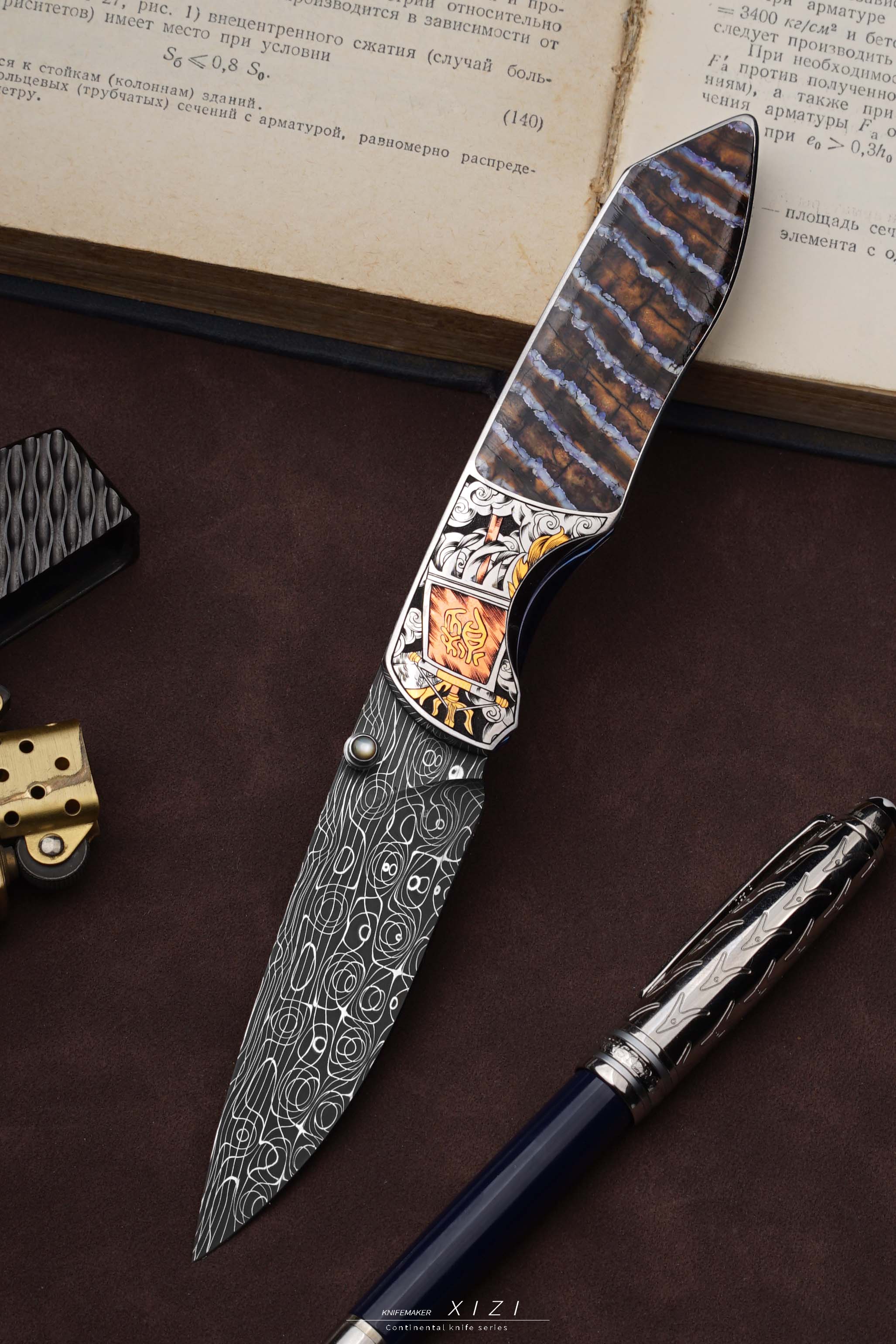 价格非常合适,经典的刀形,三国题材—五虎上将,赵云、关羽、张飞、马超、黄忠,全手工雕刻,镶嵌24k真金