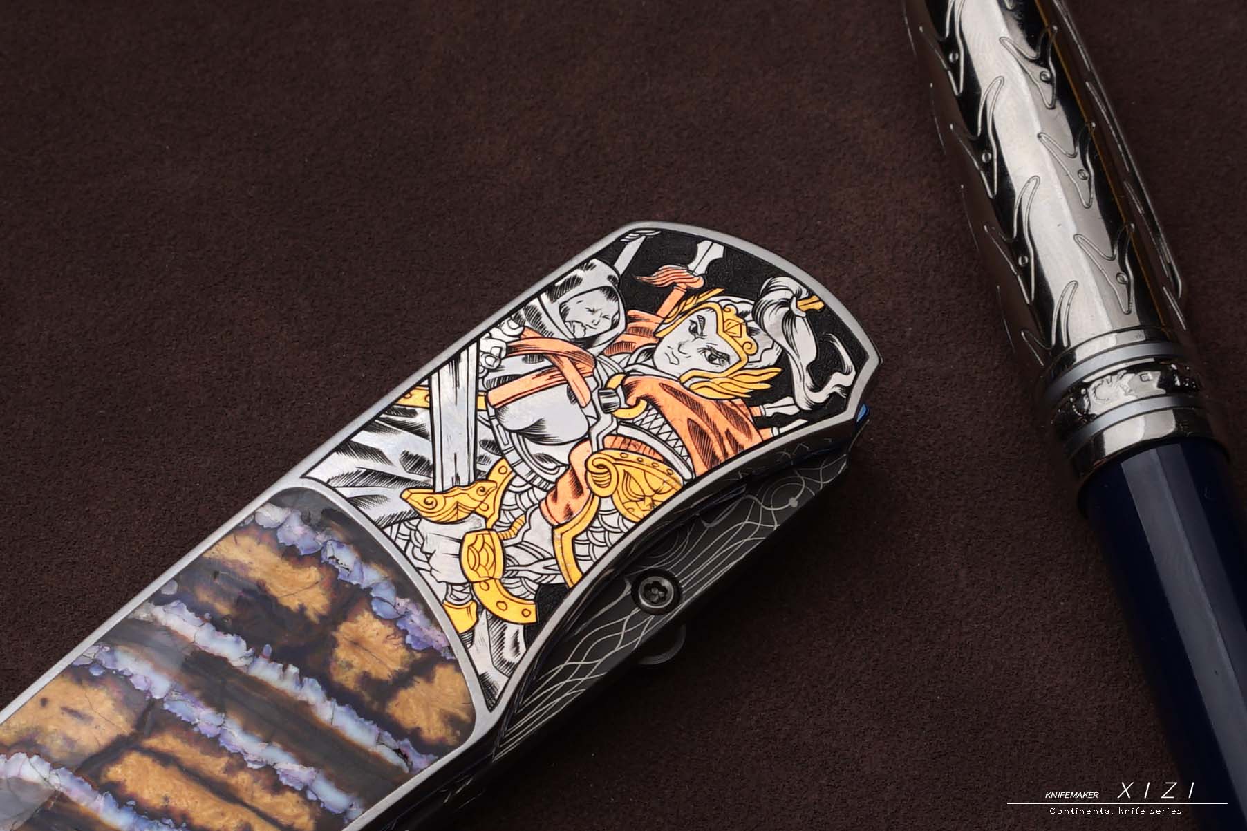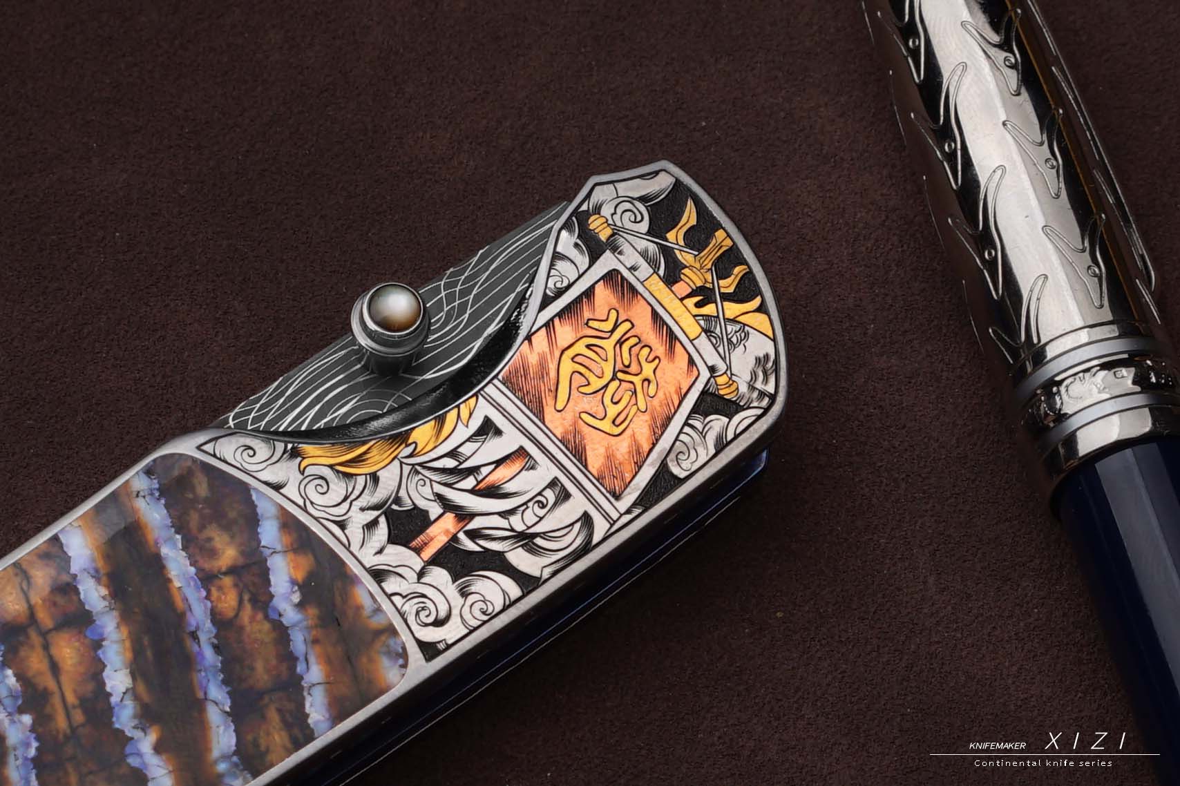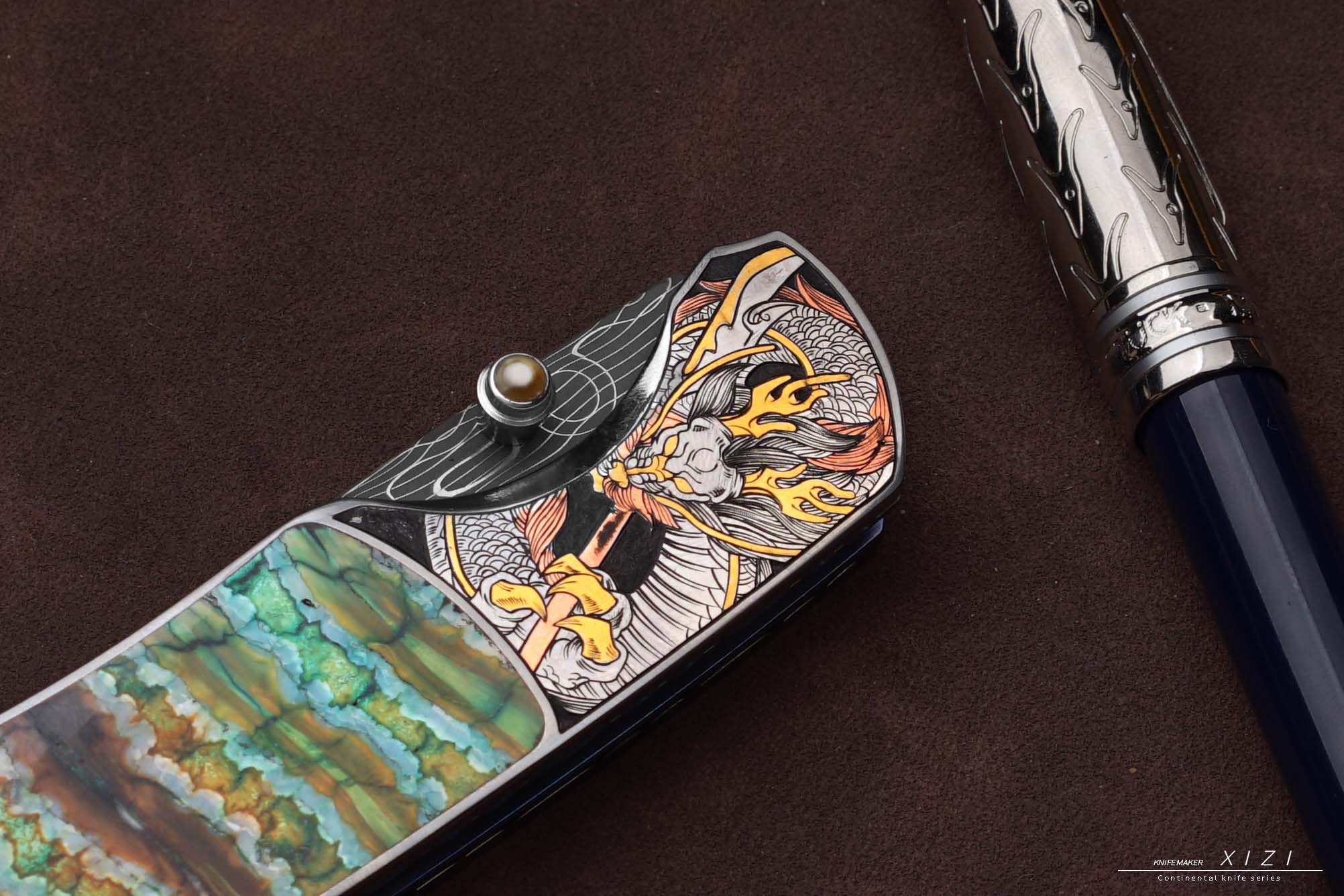 三希堂 现代刀系列 五虎上将雕金小折 未开刃