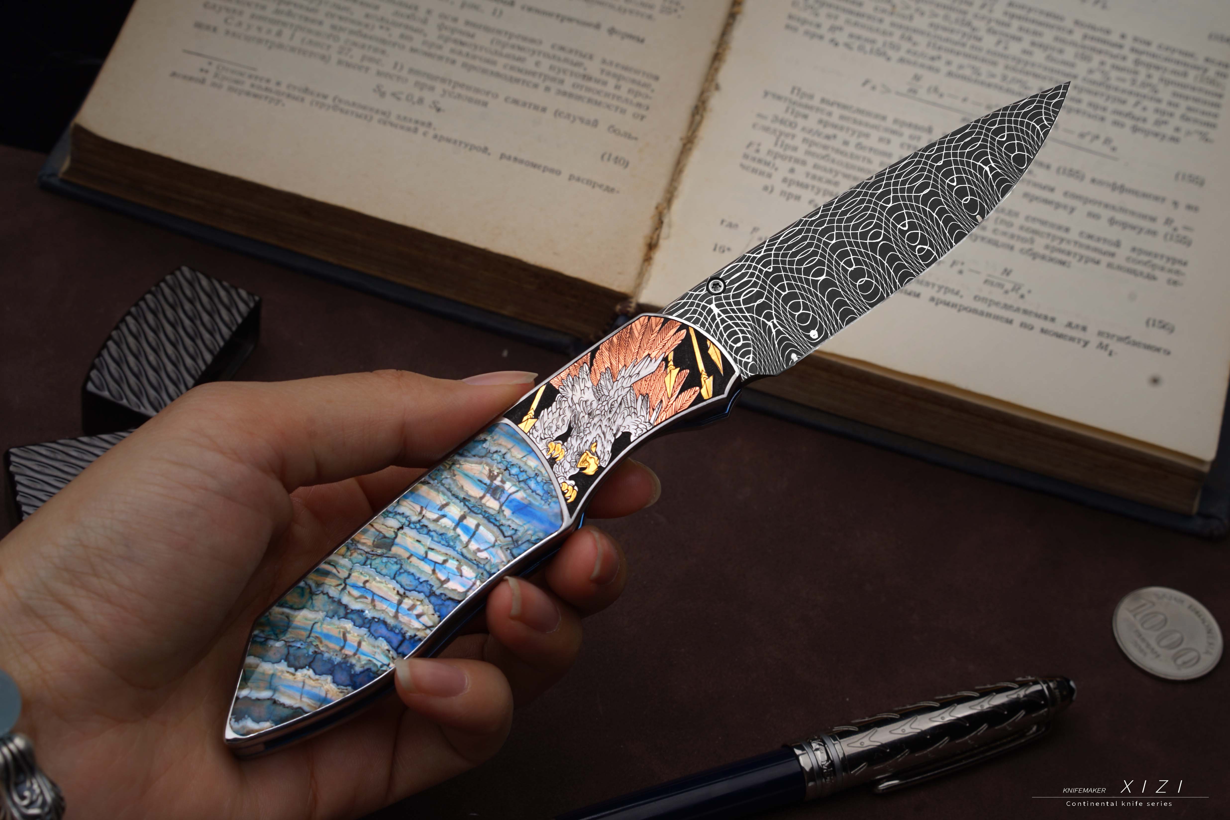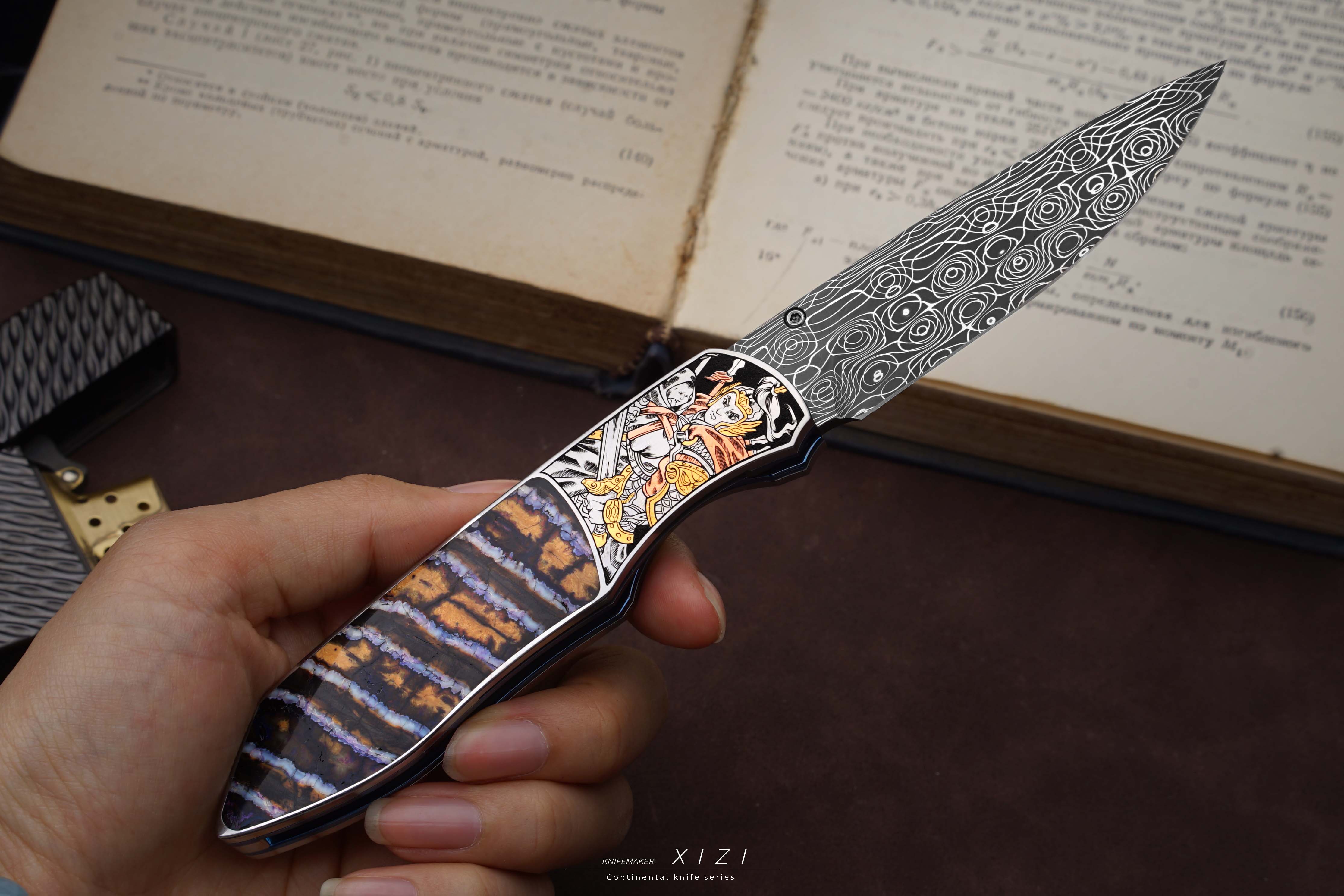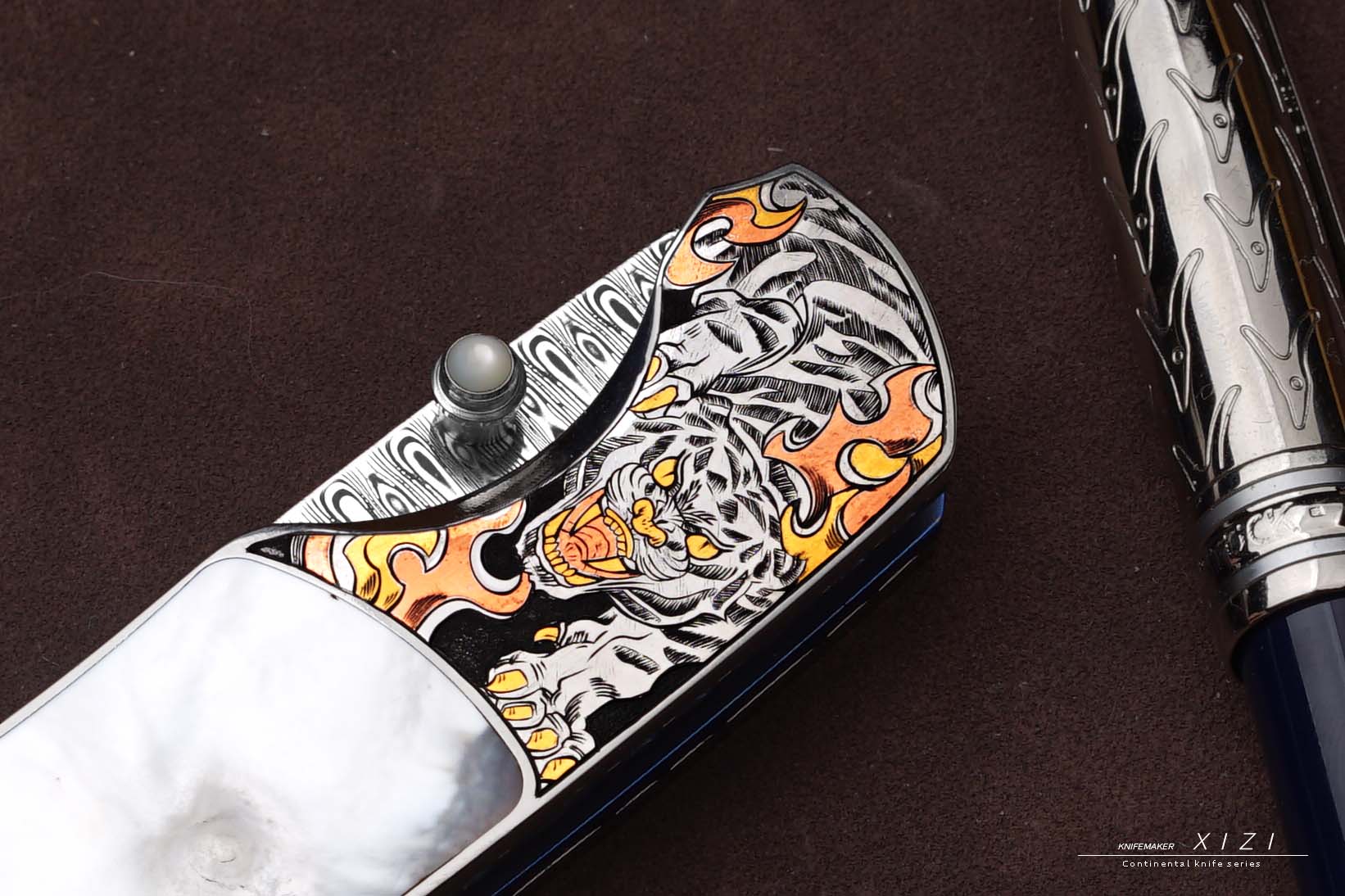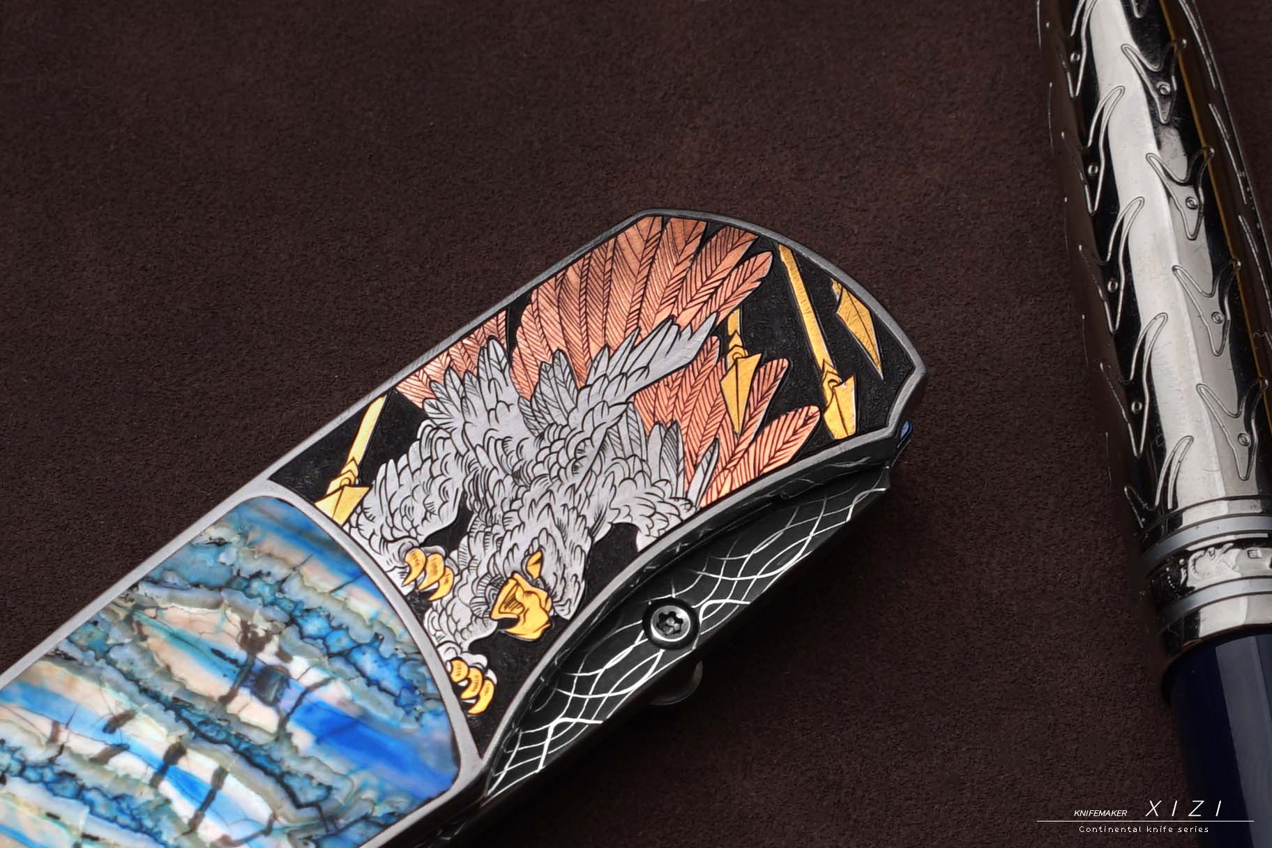 三希堂 现代刀系列 五虎上将雕金小折 未开刃