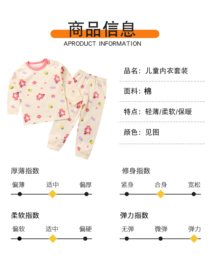 【萌趣儿童内衣套装】A类家居服男女童内衣套装薄秋衣裤儿童内衣纯棉sh