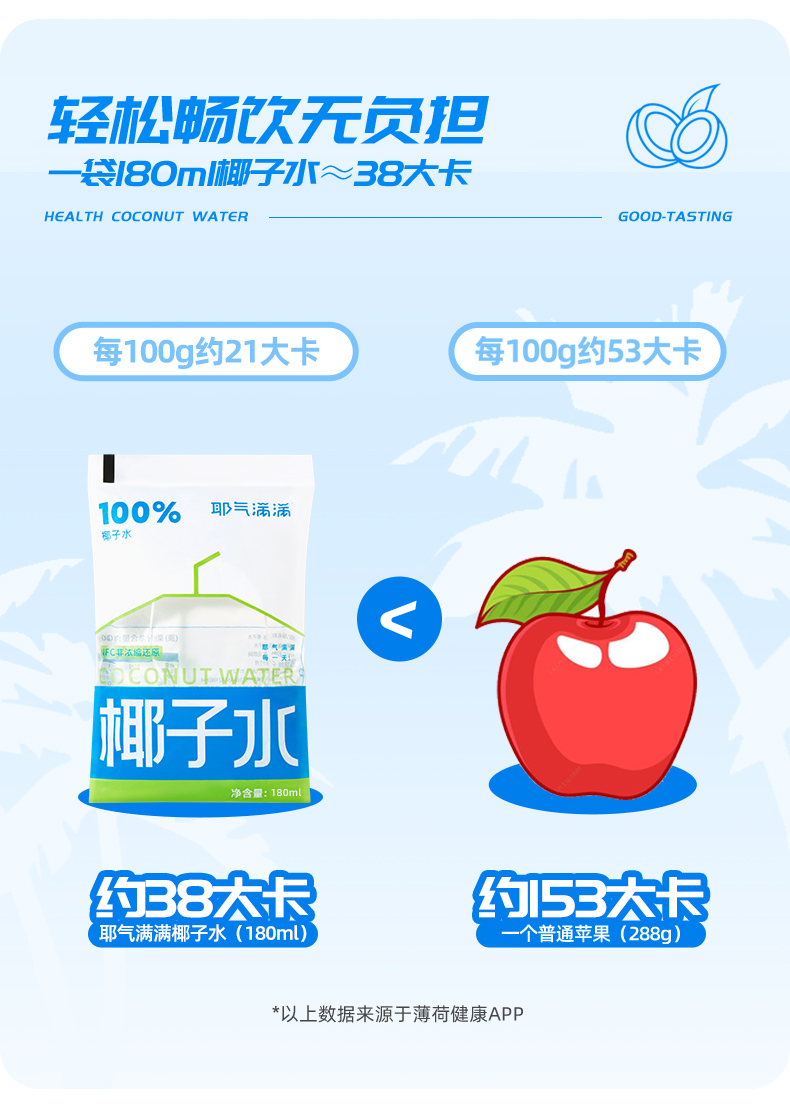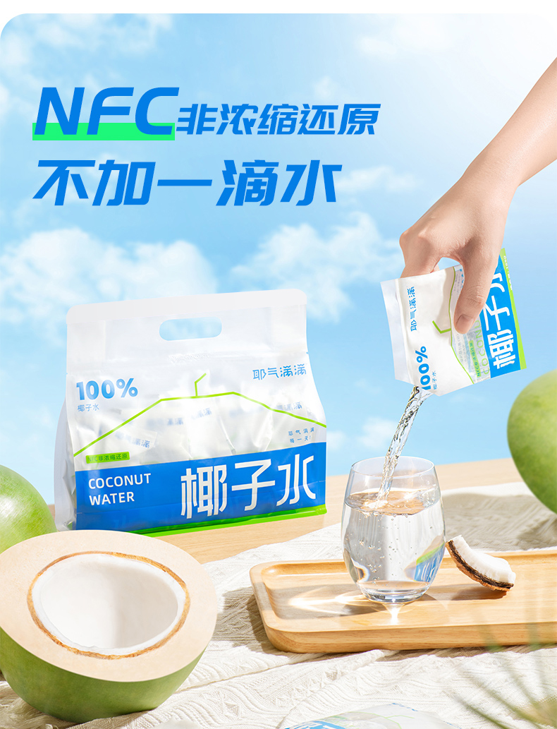 【10袋装】耶气满满纯椰子水 天然电解质新鲜椰青非浓缩0添加椰汁 健康好喝解渴夏日必囤饮料 180mI*10袋