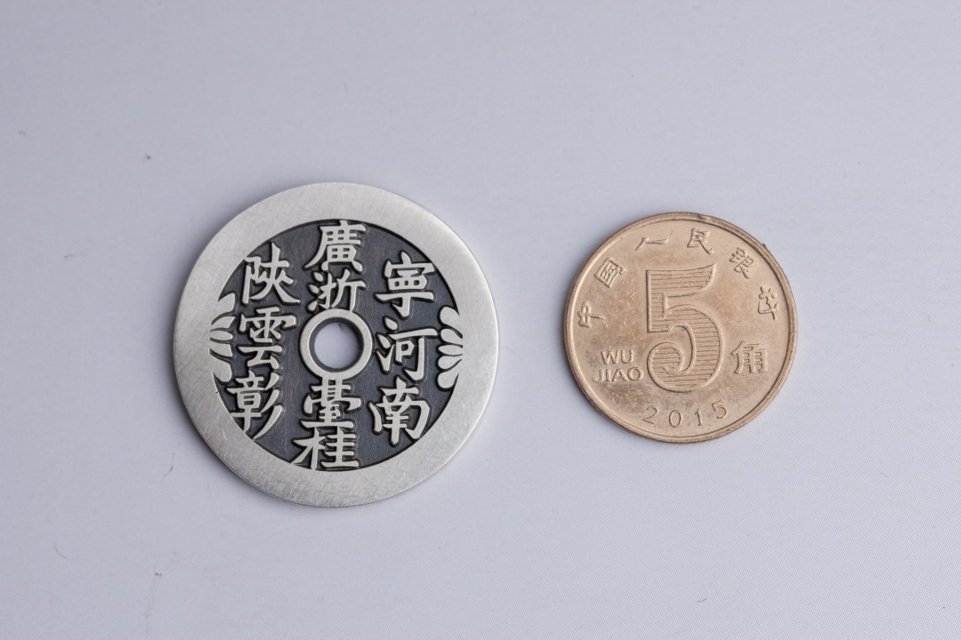 尺寸:直径约28.8毫米,厚约2.3毫米,孔径约4毫米,重约11.5克(手工作品有少许误差,请知晓)。