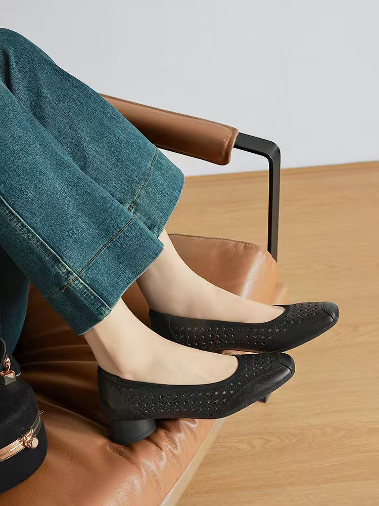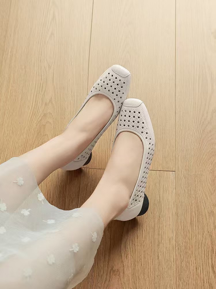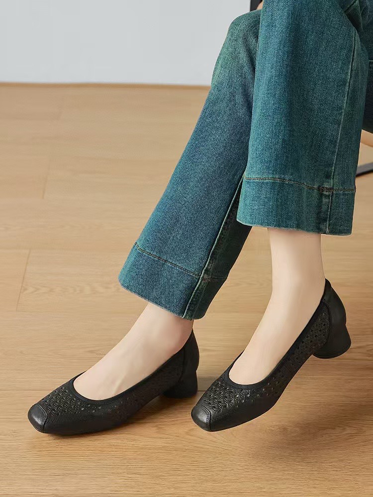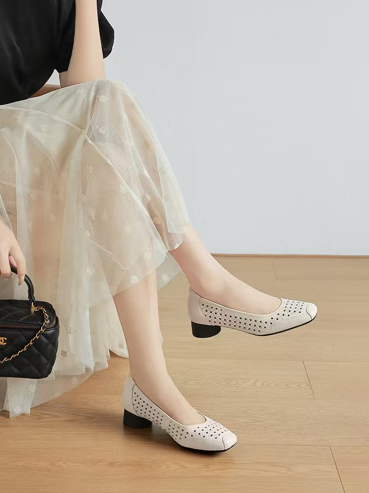 515-3 烘干 优雅方头 柔软镂空羊皮 3cm暴走粗跟 夏天凉快的单鞋 号很足我穿36 35-40
