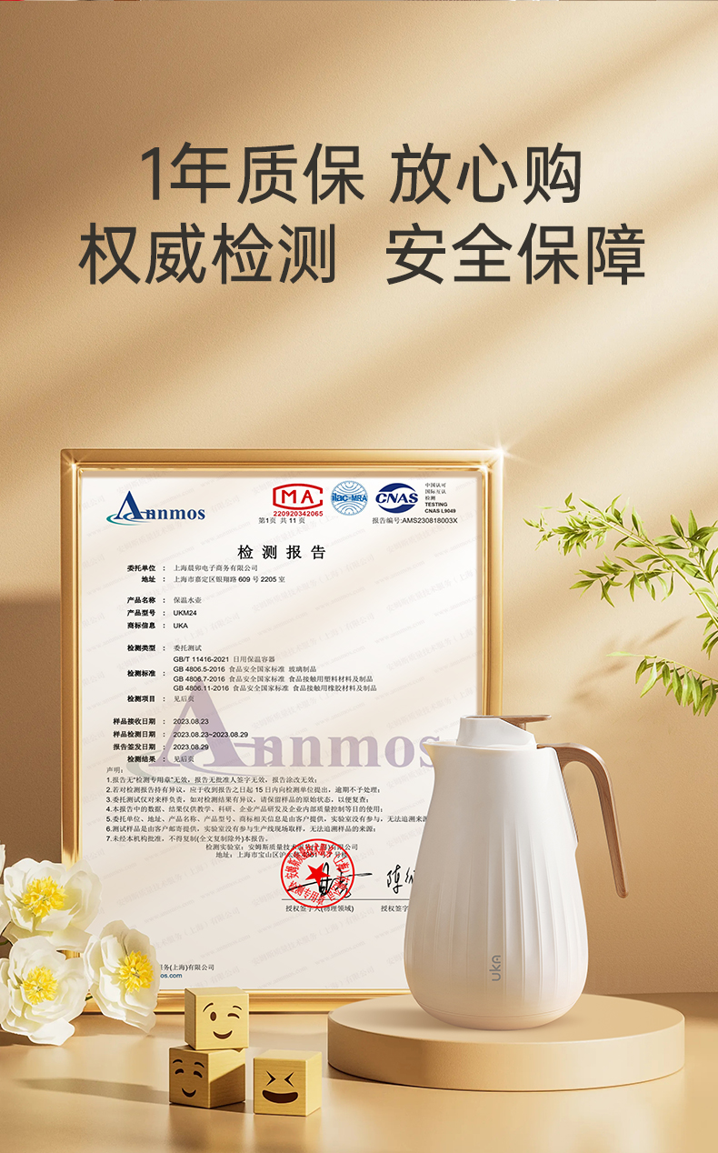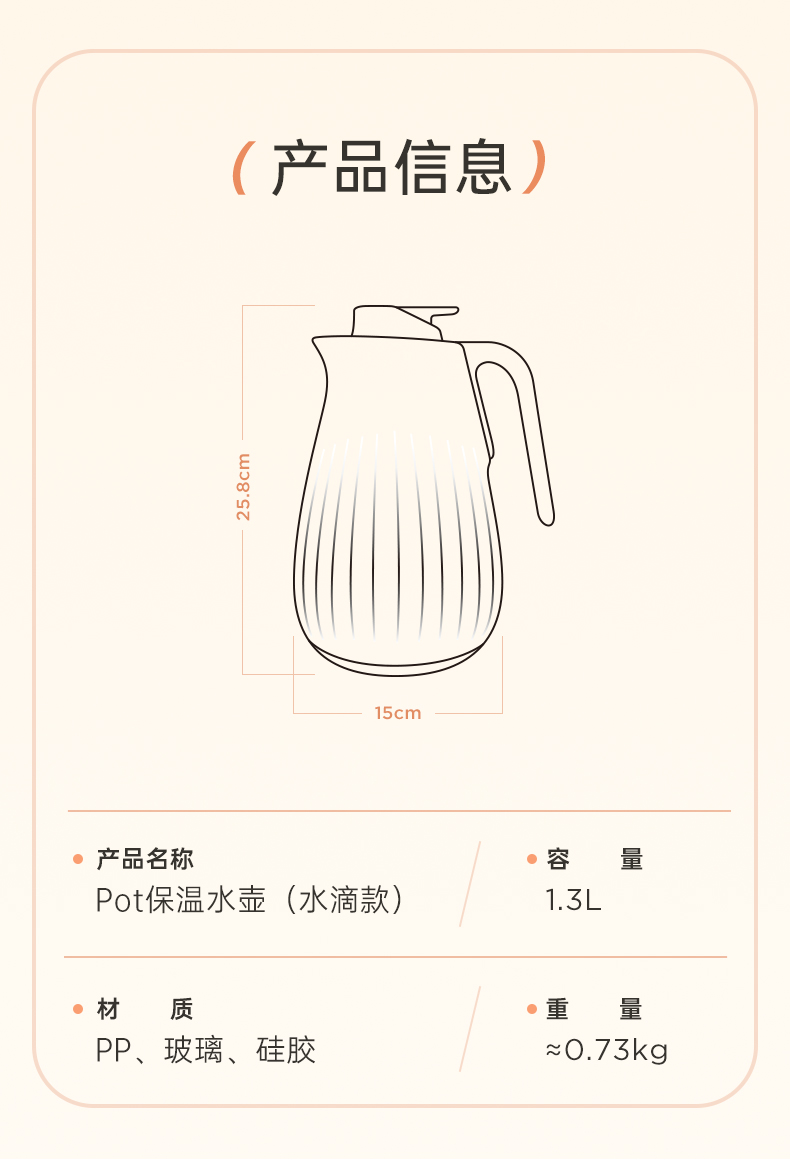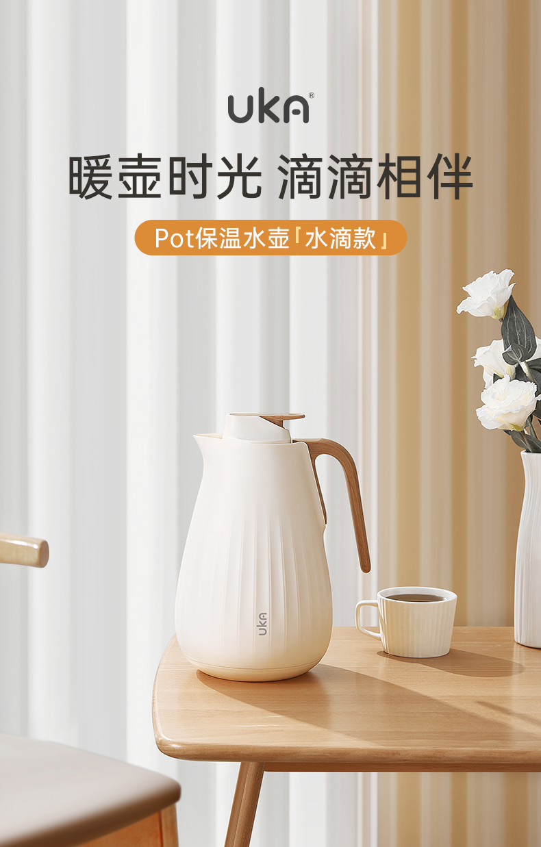 【品名/规格】UKA POT保温水壶(水滴款,1.3L容量)