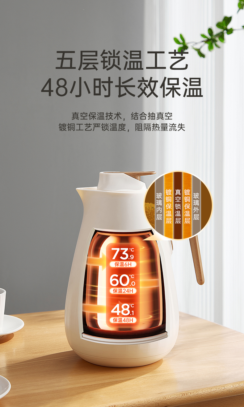 1、【长效保温】镀铜真空锁温工艺,保温48小时还有48.1℃;
