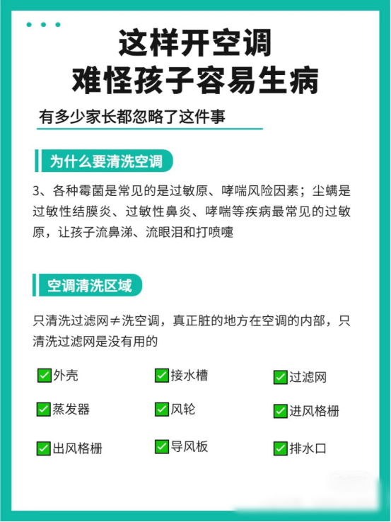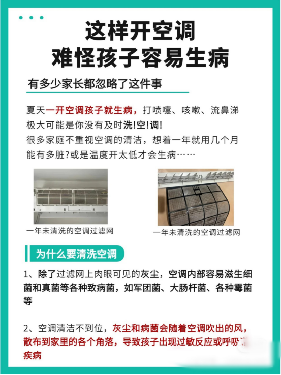 ☀️夏天就要到了,而夏天最少不了的莫过于可以救命的空调 夏天最爽的不就是在空调房里,吃西瓜,看电视剧吗!! 空调也已经放了大半年没有启动了,在夏天之前一定一定要清洗❗ 👀你以为的空调并不是你以为的空调,它外表看起来很干净、 但搁置了一年内部滤网早已成了细菌和螨虫🐛的“培养皿”😨😨😱 🎈所以空调出风经过滤网后, 也不可避免的把可见的灰尘和不可见的灰尘带入到室内的空气中… 这是导致很多呼吸道疾病的根源。 ❗这并非危言耸听,央视就曾对空调清洁的必要性做过专题报道: