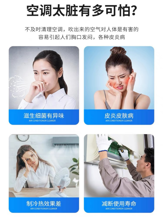 有的家人觉得:自己动手洗能洗的干净吗? 放心吧家人们!完全没问题‼️ 这款清洁剂让你毫不费力的 把细菌🦠、灰尘赶跑!还你清新空气 对准空调出风口喷、泡、擦就OK啦~🥳🥳