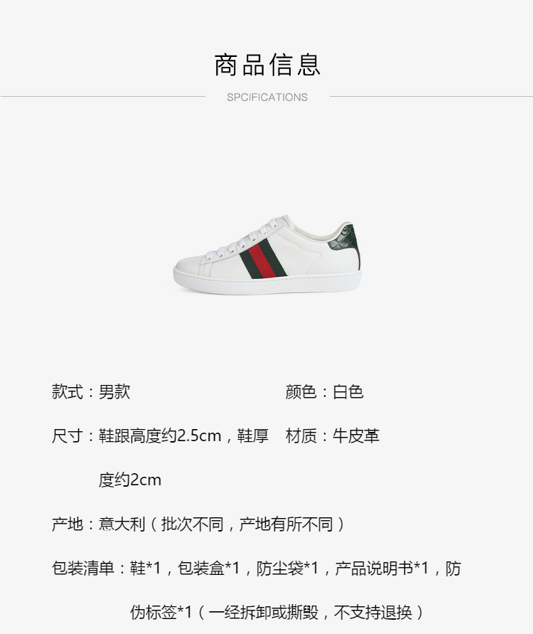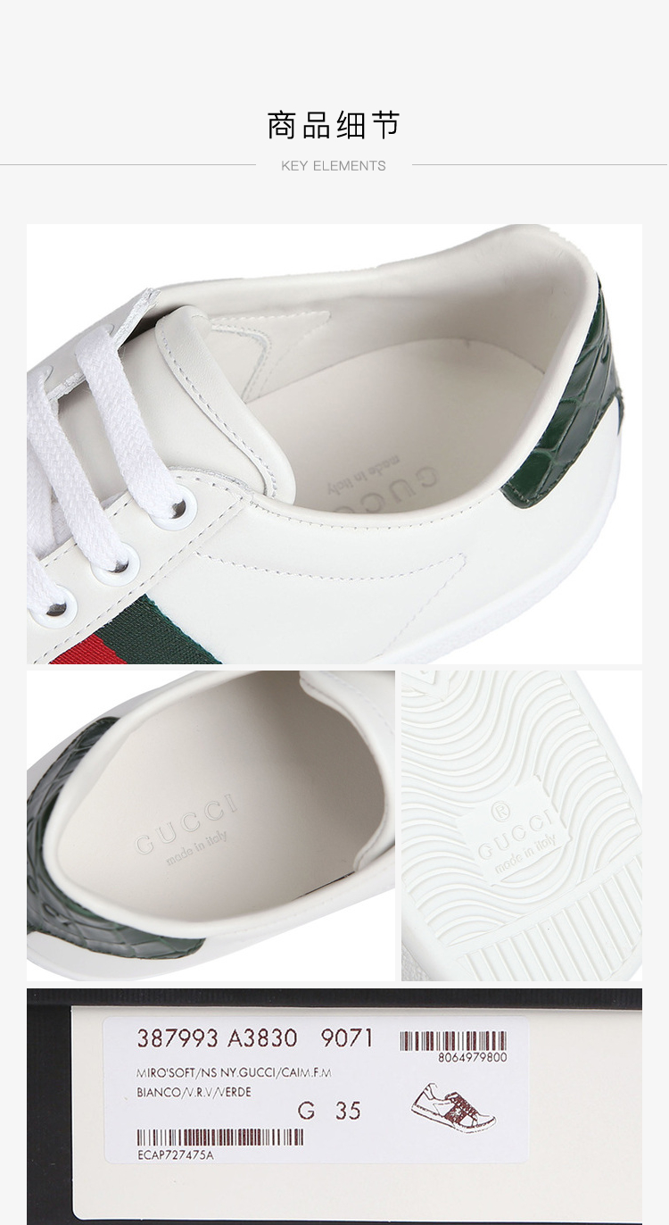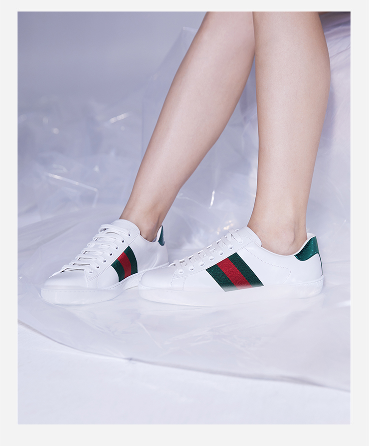 GUCCI 古驰 Gucci女鞋 女士Ace系列条纹织带小白鞋运动鞋 387993A3830