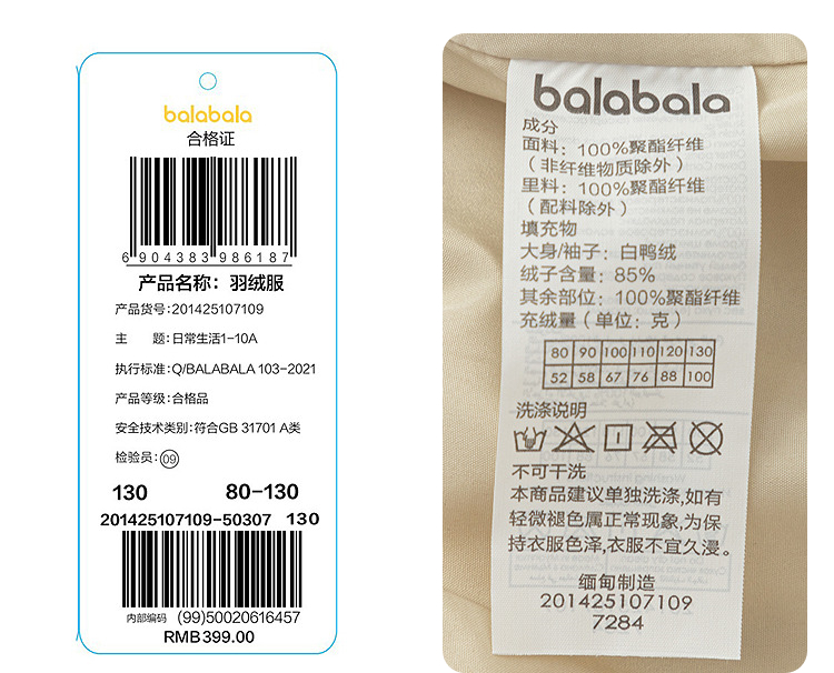 【商场同款】巴拉巴拉宝宝羽绒服男童装宽松连帽外套2025新款冬装
