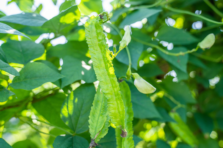 成熟的四角豆棱角展开宽阔,形体修长,犹如小手绿君子般