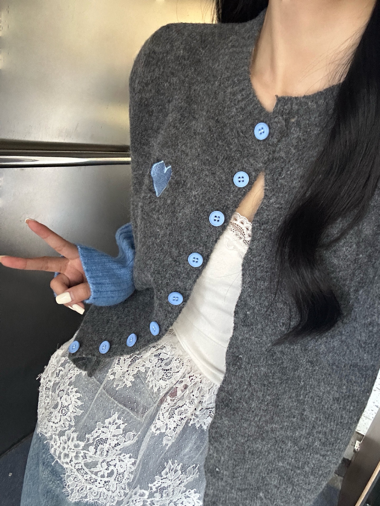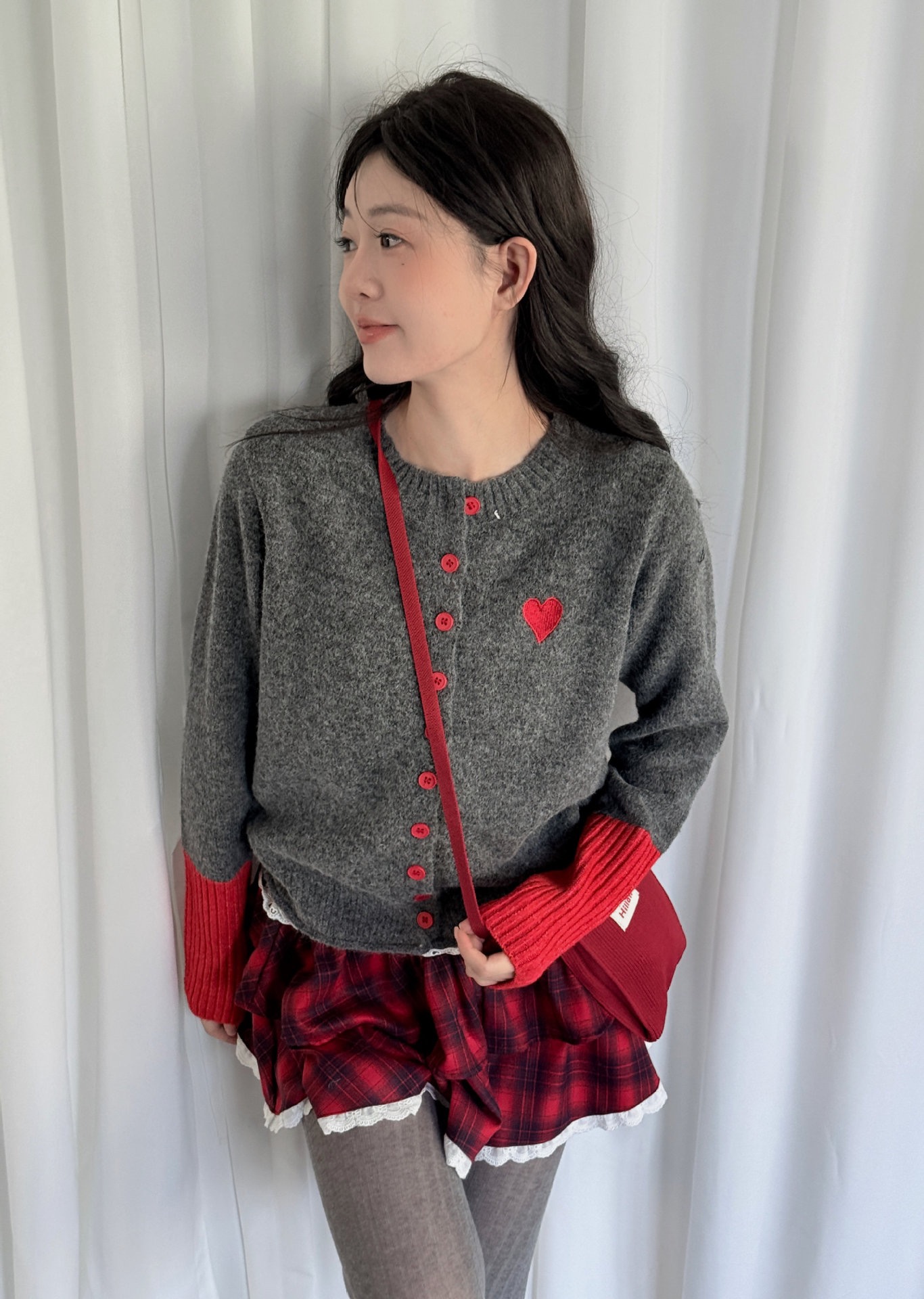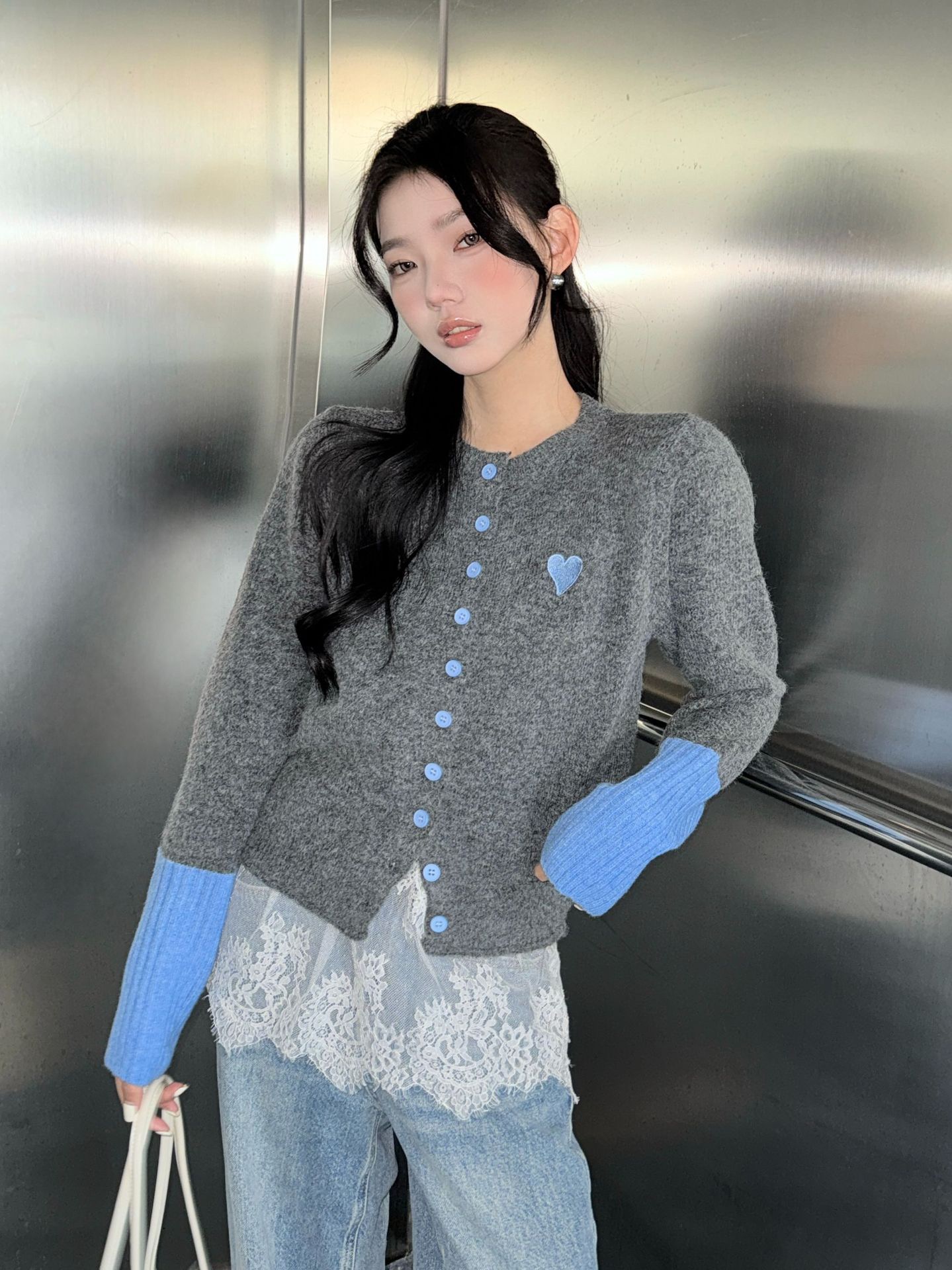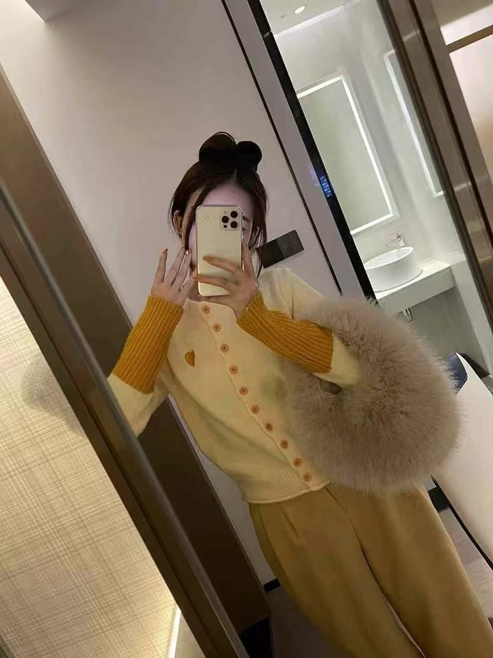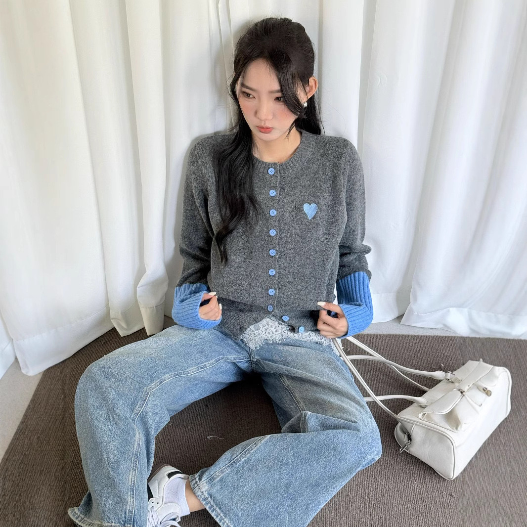 【YW】无忧购韩系拼接撞色爱心logo软糯开衫针织毛衣1918(截单后7天发货)