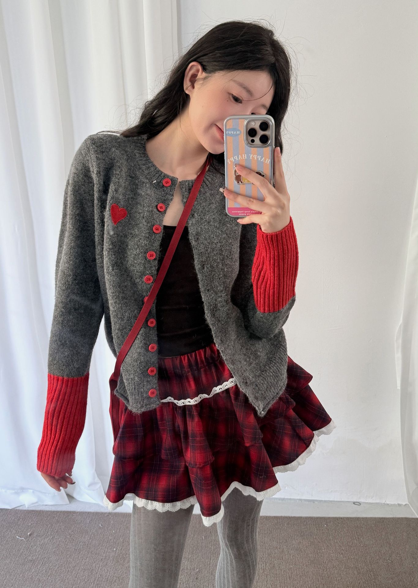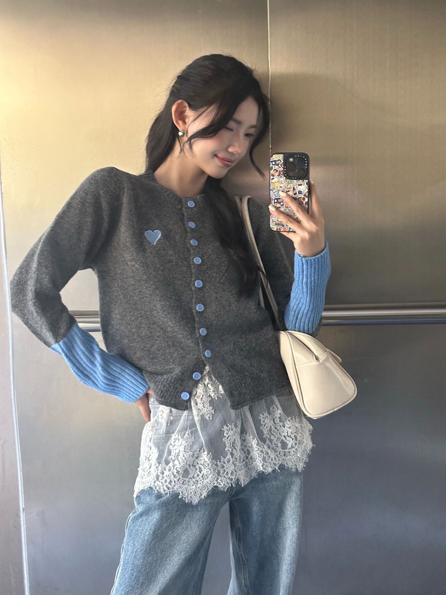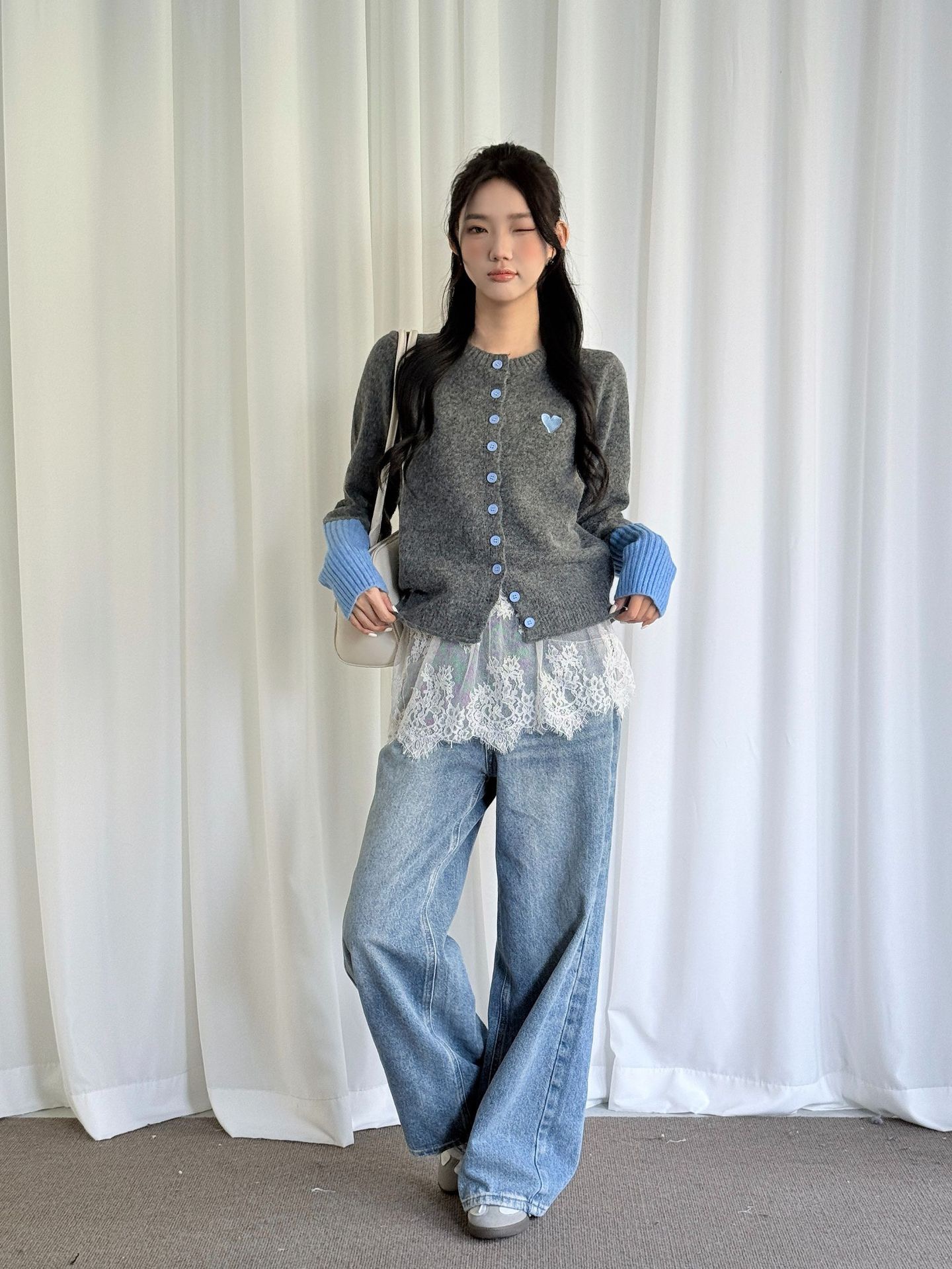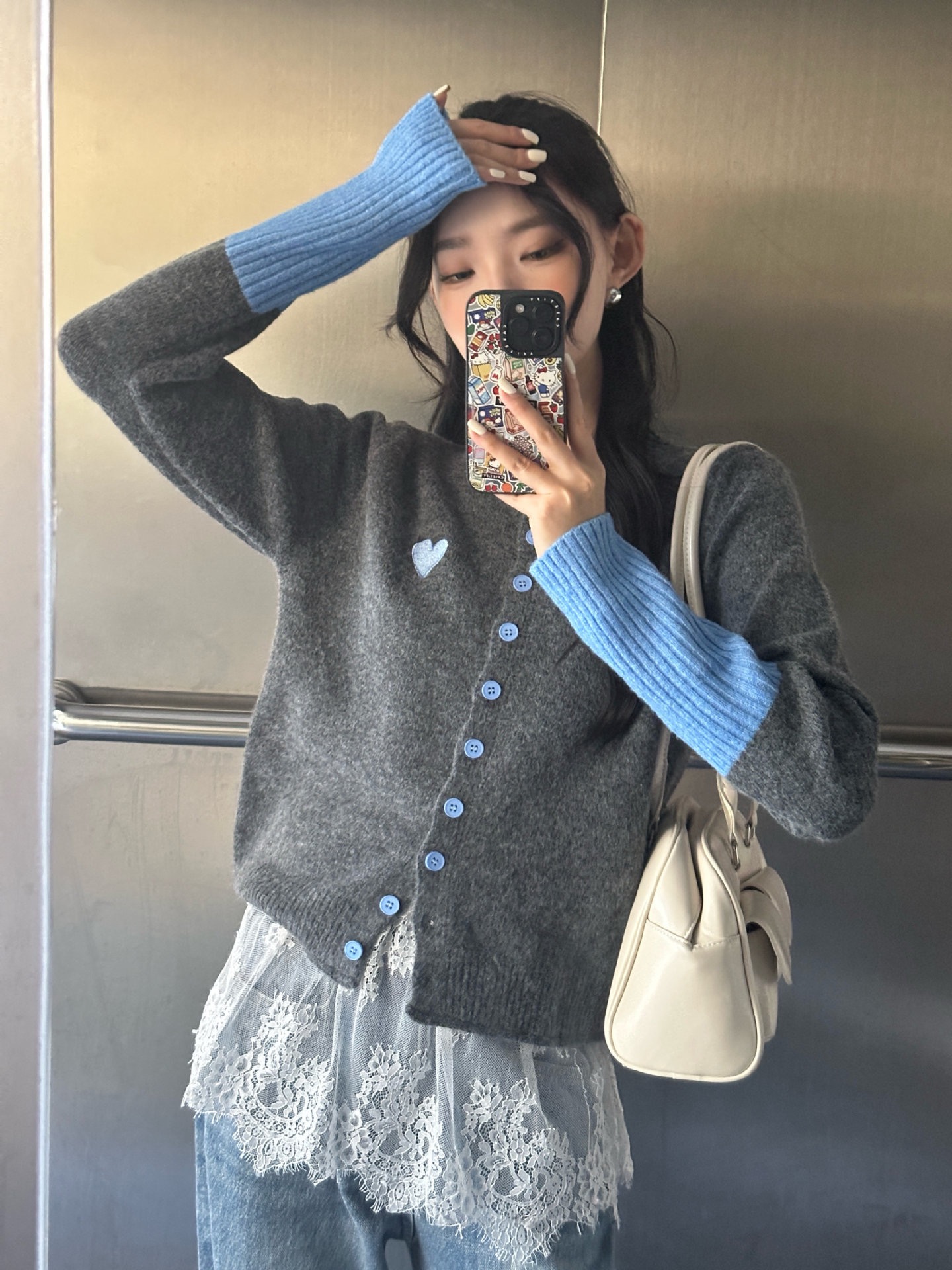 【YW】无忧购韩系拼接撞色爱心logo软糯开衫针织毛衣1918(截单后7天发货)
