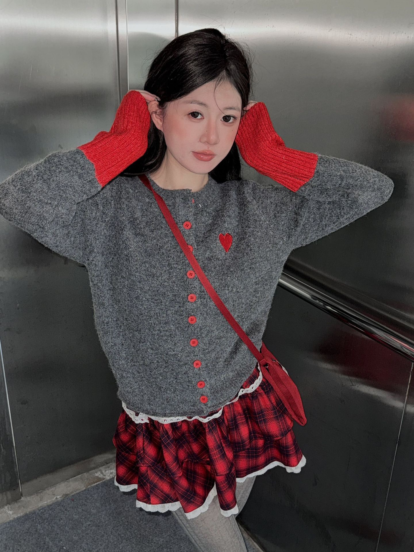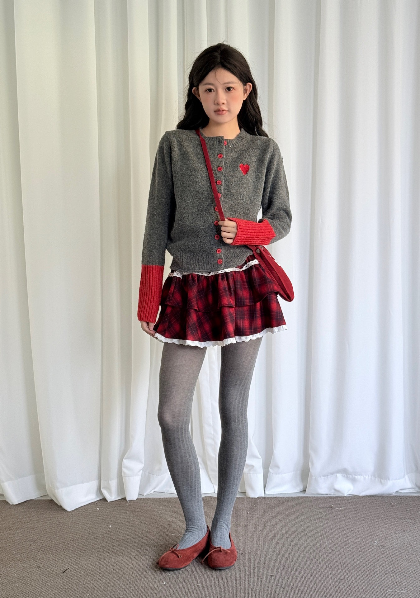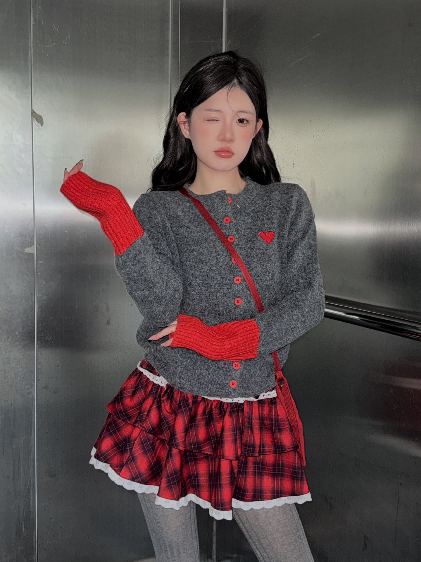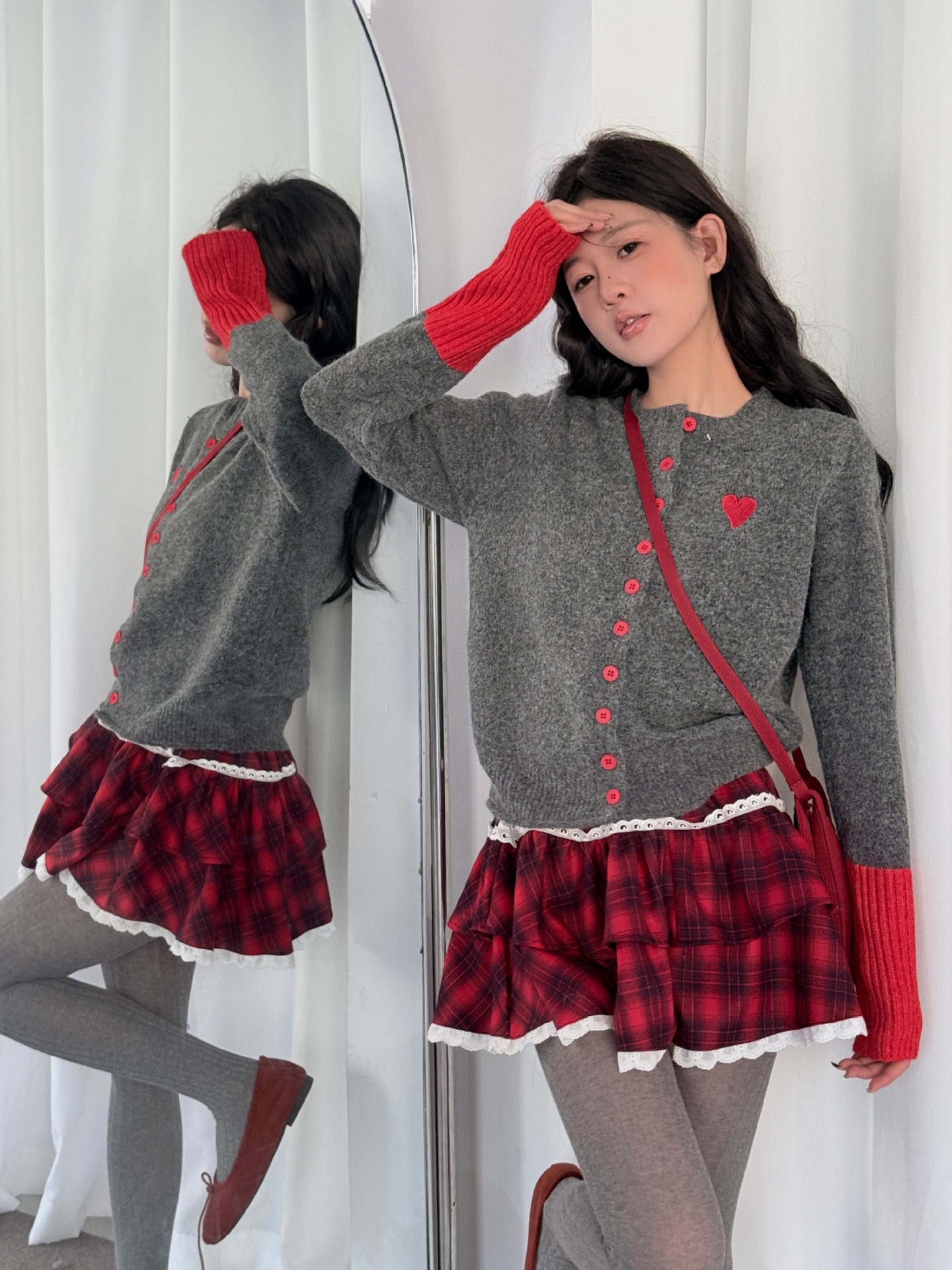 【YW】无忧购韩系拼接撞色爱心logo软糯开衫针织毛衣1918(截单后7天发货)