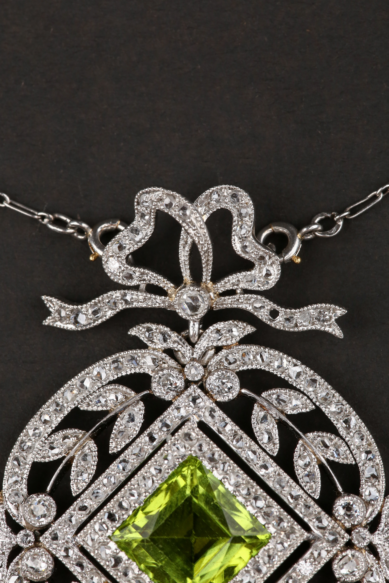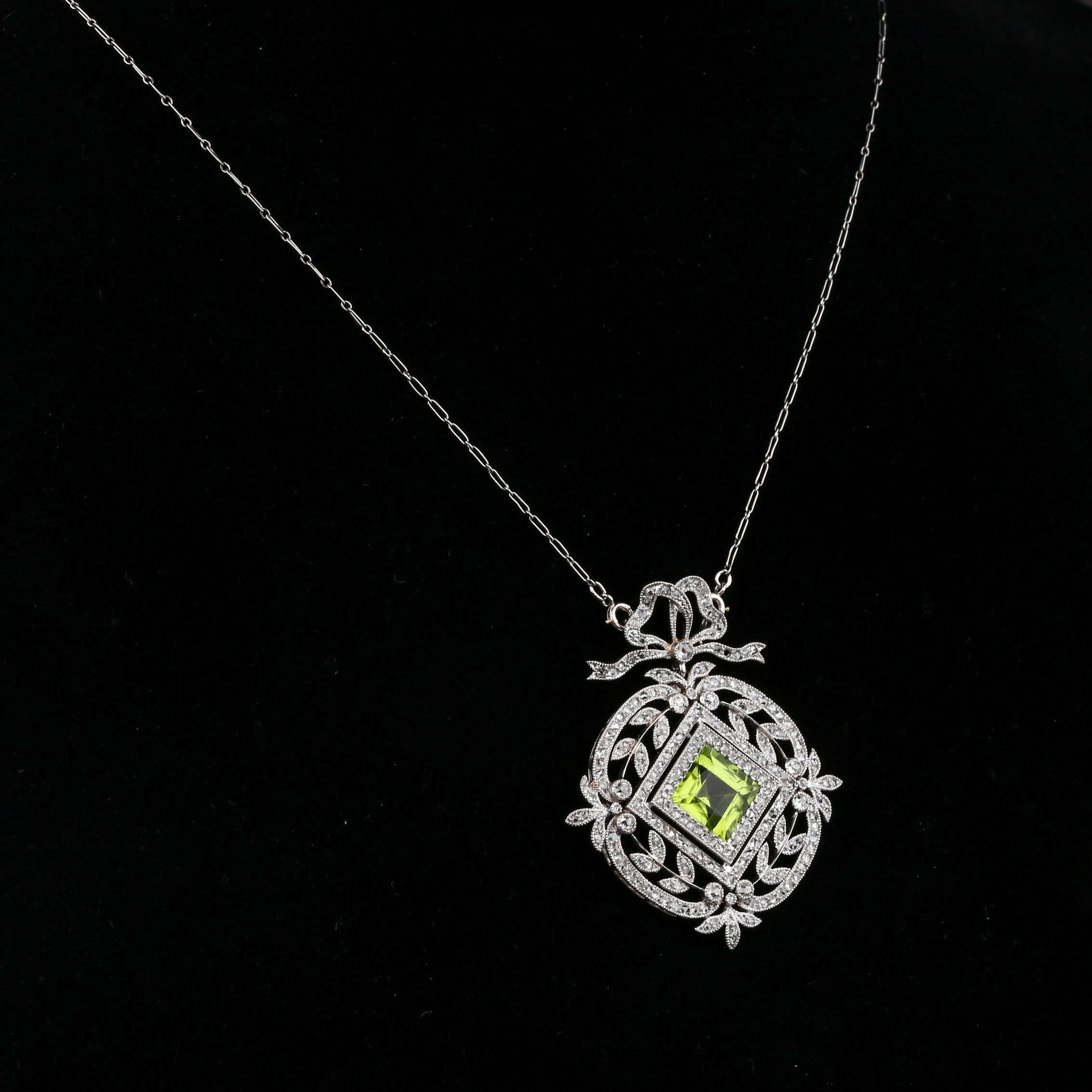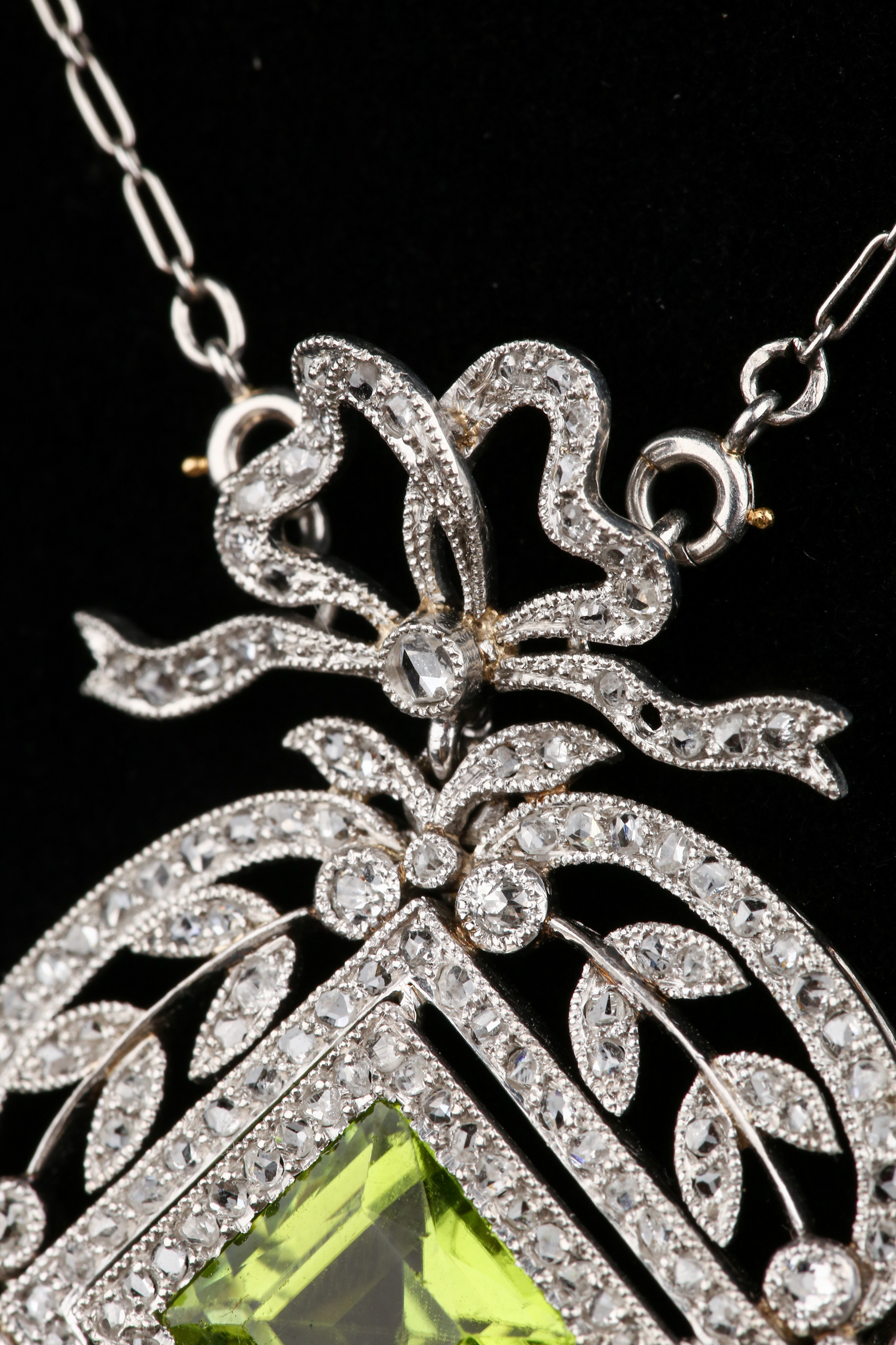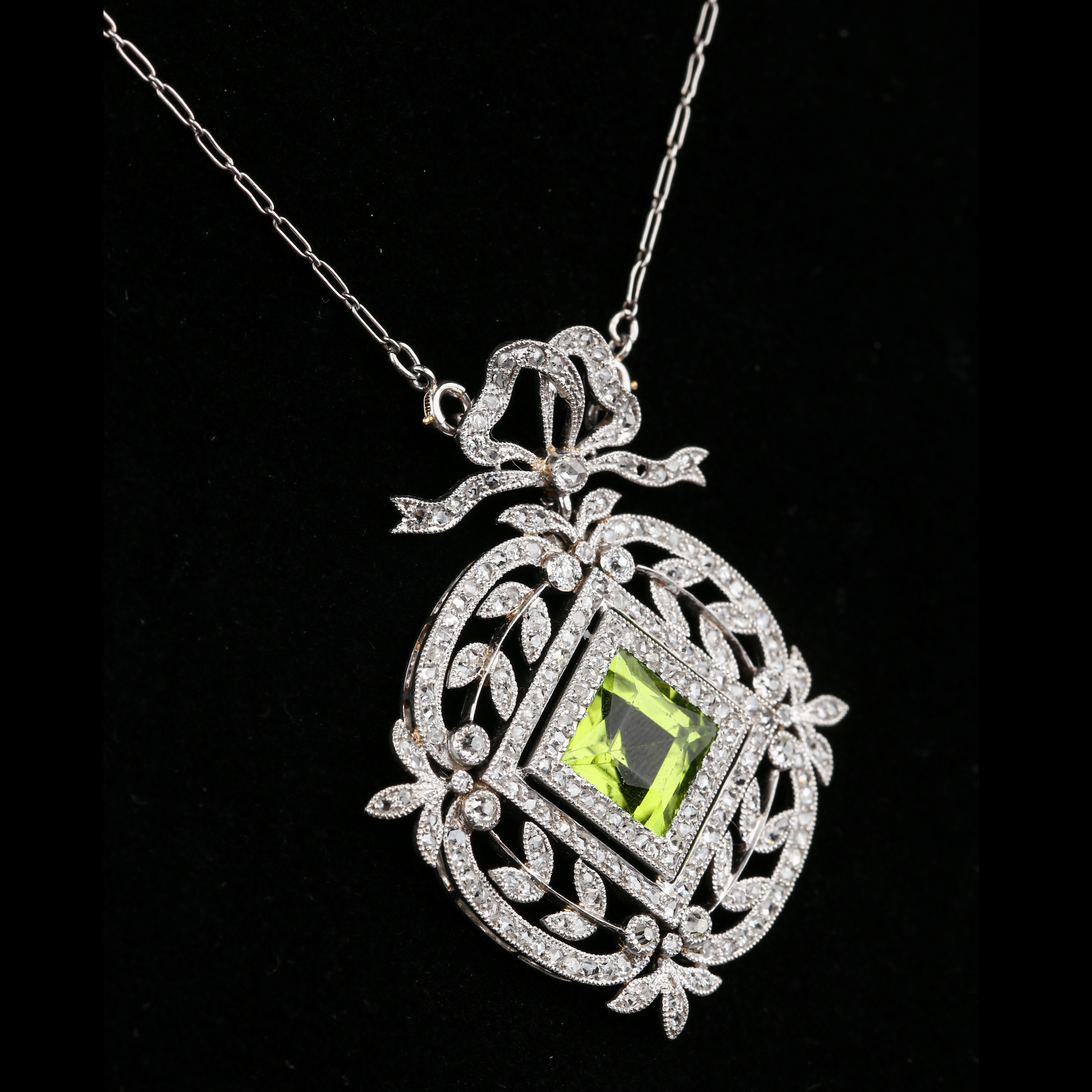 独角鹿西洋古董珠宝Fontenay美好时代风铂金镶钻石橄榄石吊坠项链