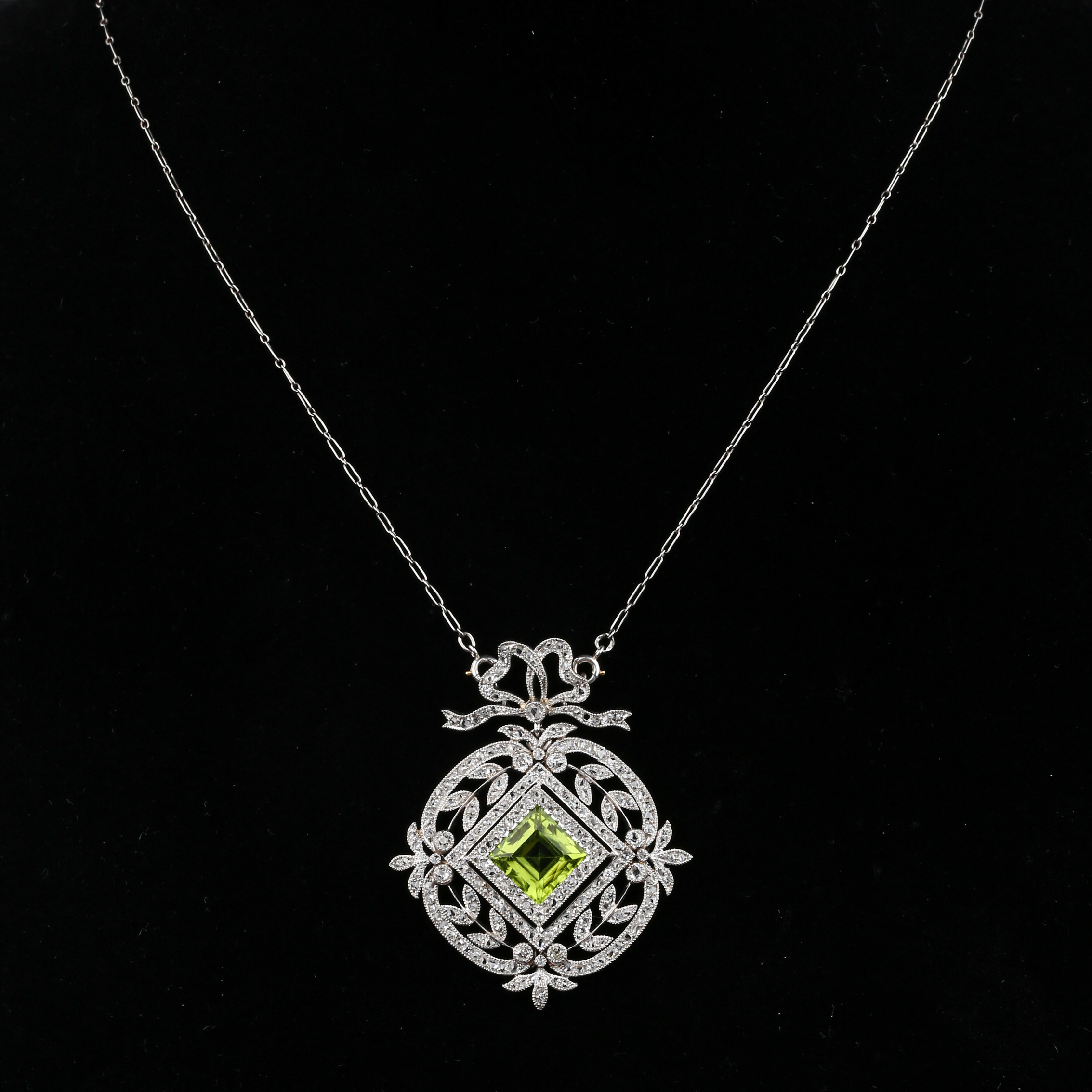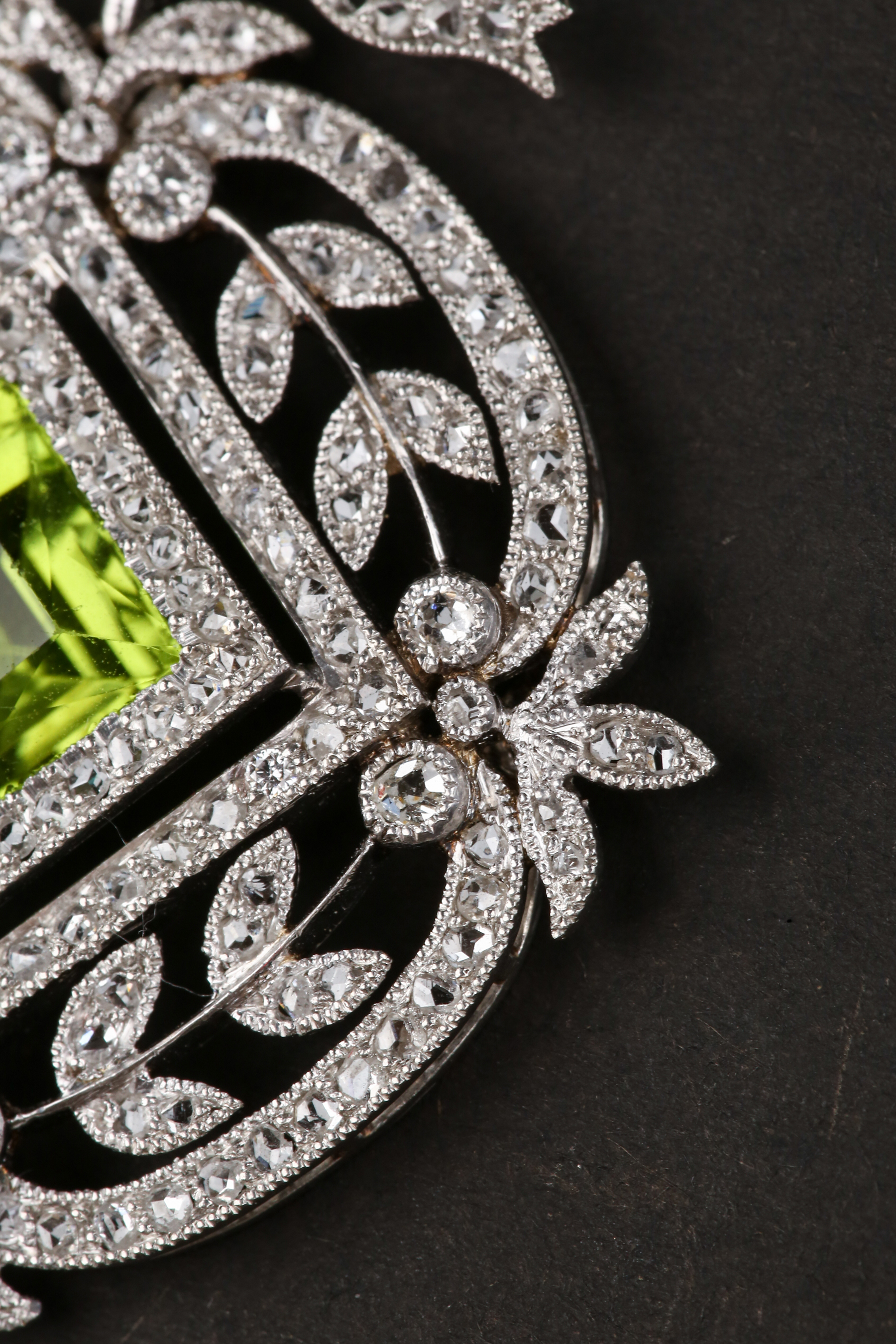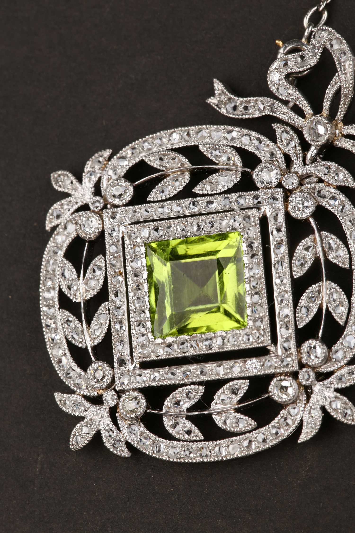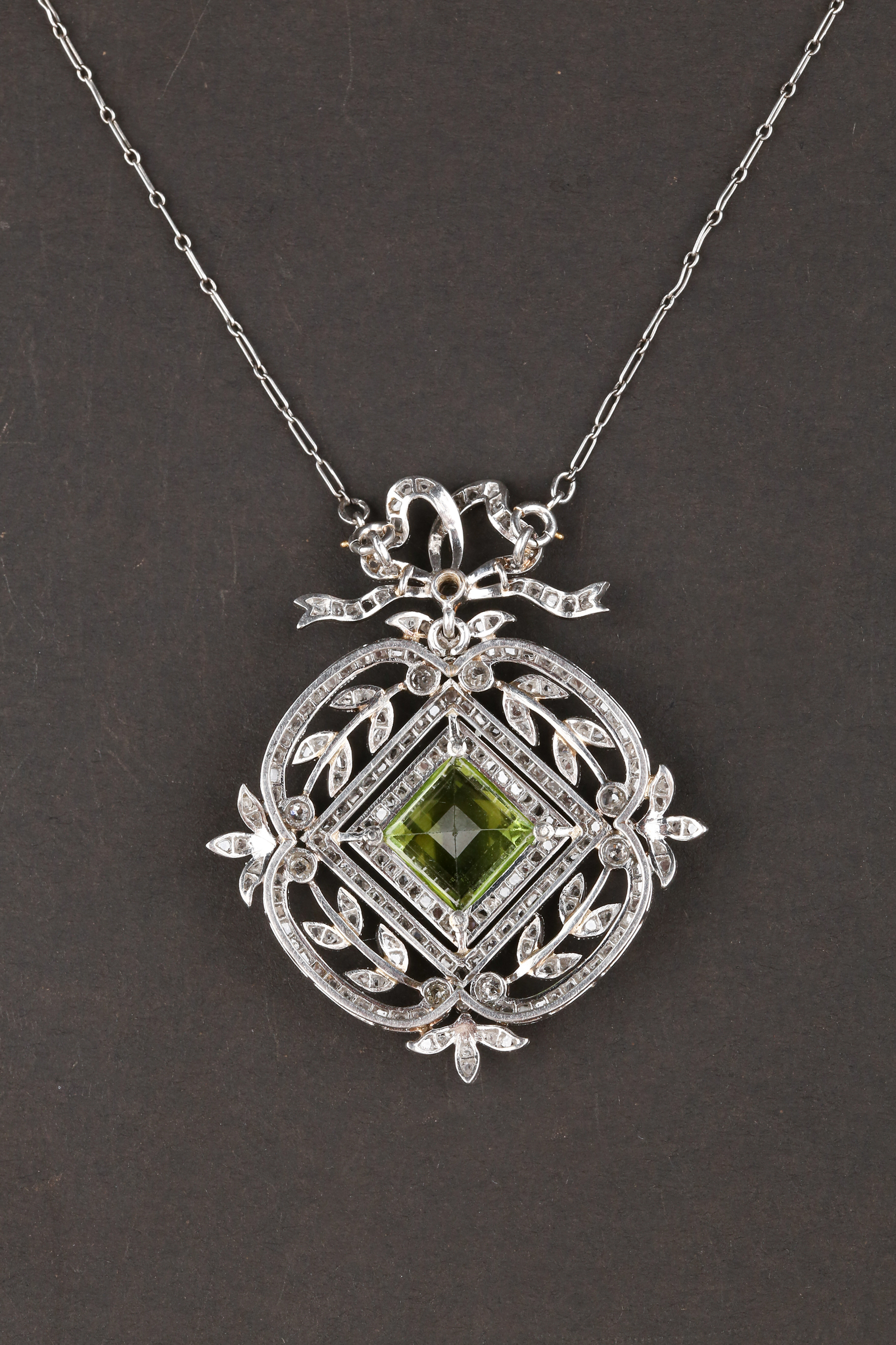 独角鹿西洋古董珠宝Fontenay美好时代风铂金镶钻石橄榄石吊坠项链