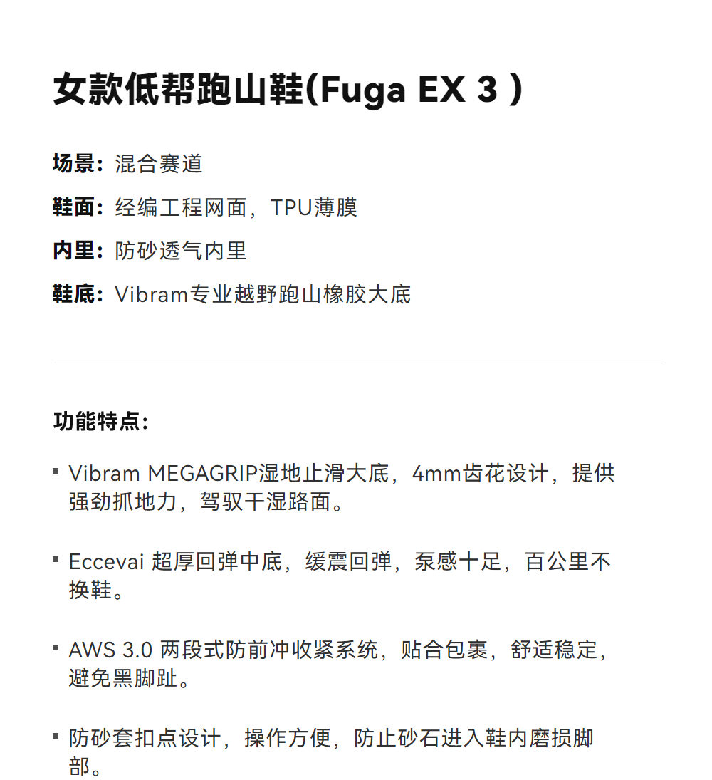 KAILAS凯乐石 女款低帮越野跑山鞋(Fuga EX 3)KS2413212/KS2433279/KS2433183