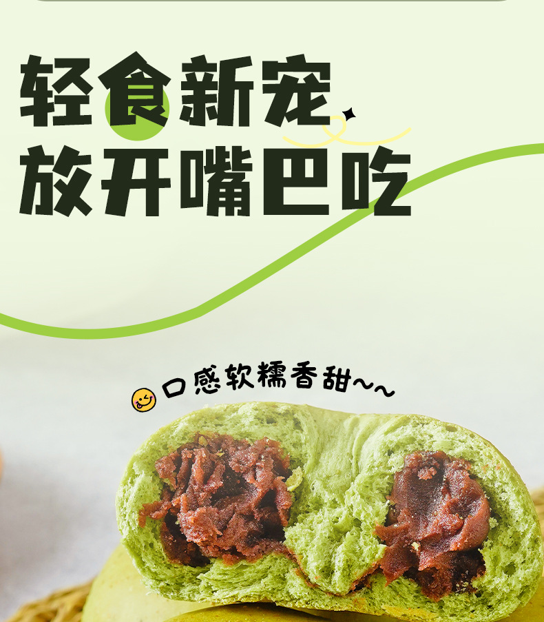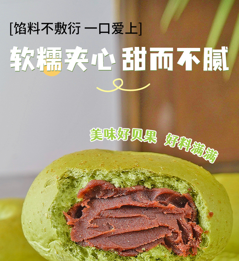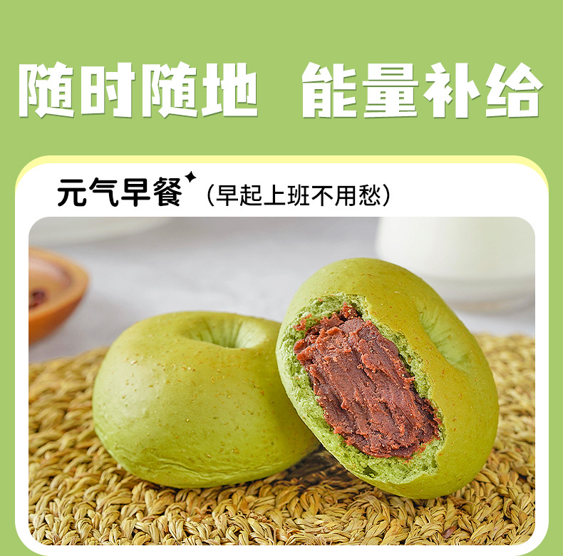【不单独添加蔗糖!抹茶红豆贝果面包】0反式脂肪酸,软糯香甜,营养美味!约75g/袋饱腹代餐糕点零食品