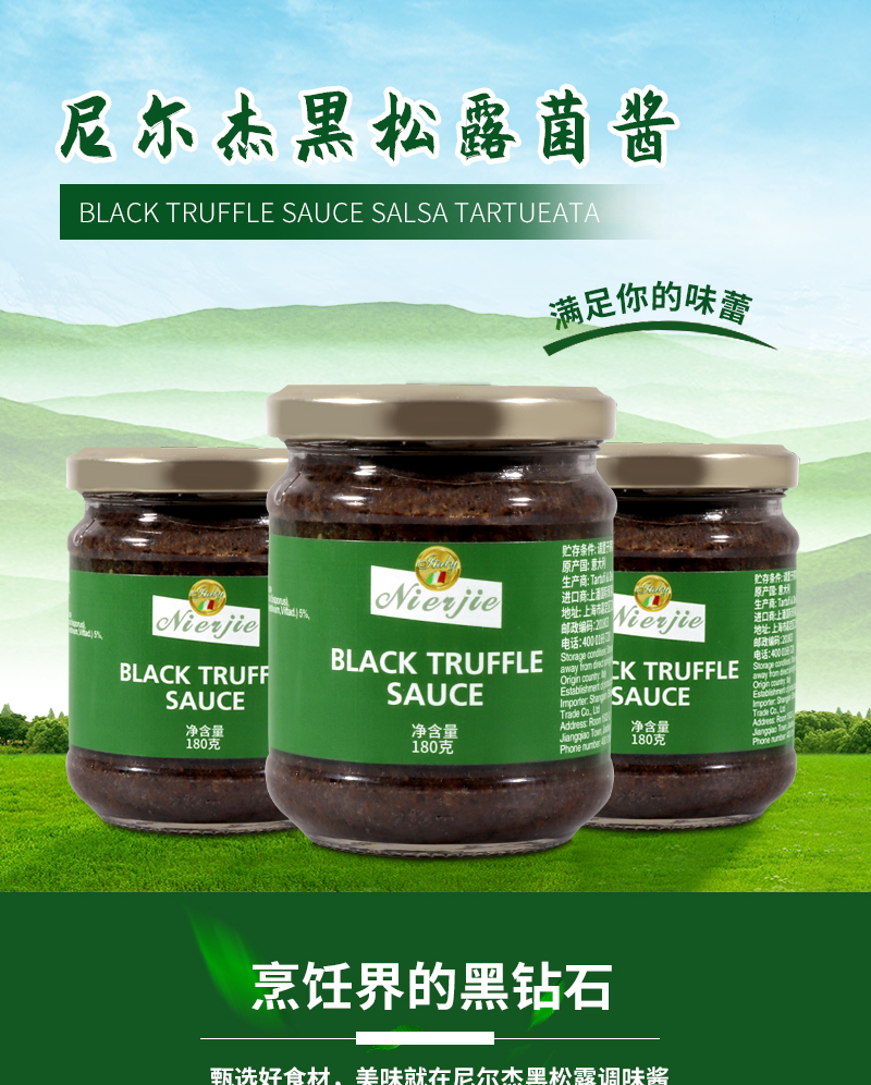 【中欧班列精选】意大利尼尔杰黑松露酱 原装进口意面披萨黑菌酱商用拌面下饭调味黑松露酱180g/瓶