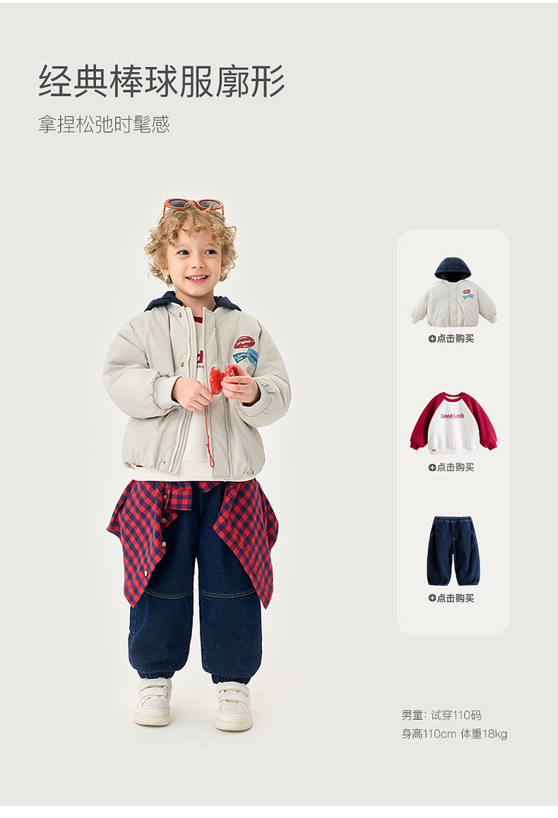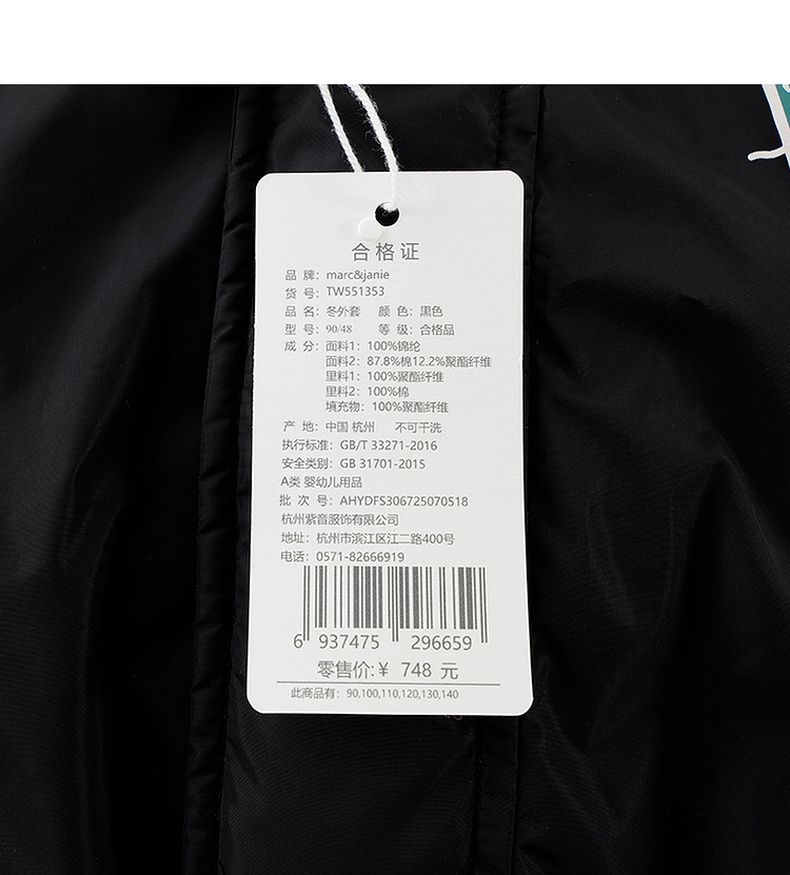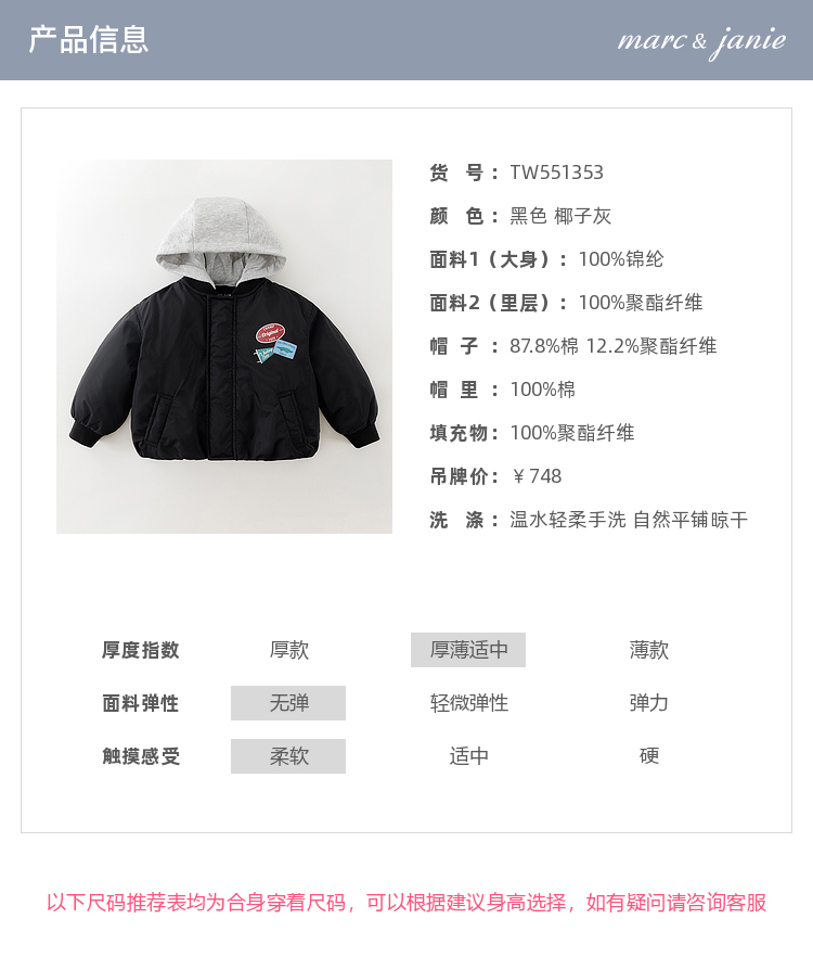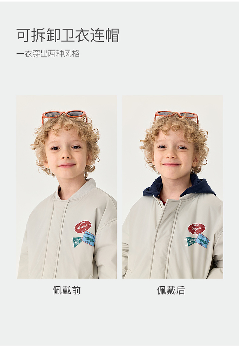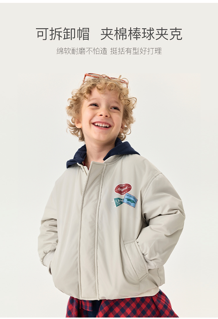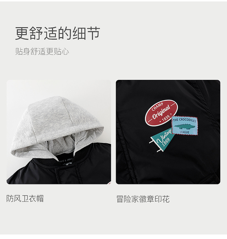 【无氟防泼水】马克珍妮男童时尚可拆连帽夹棉外套秋冬新款551353