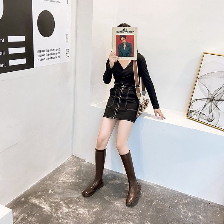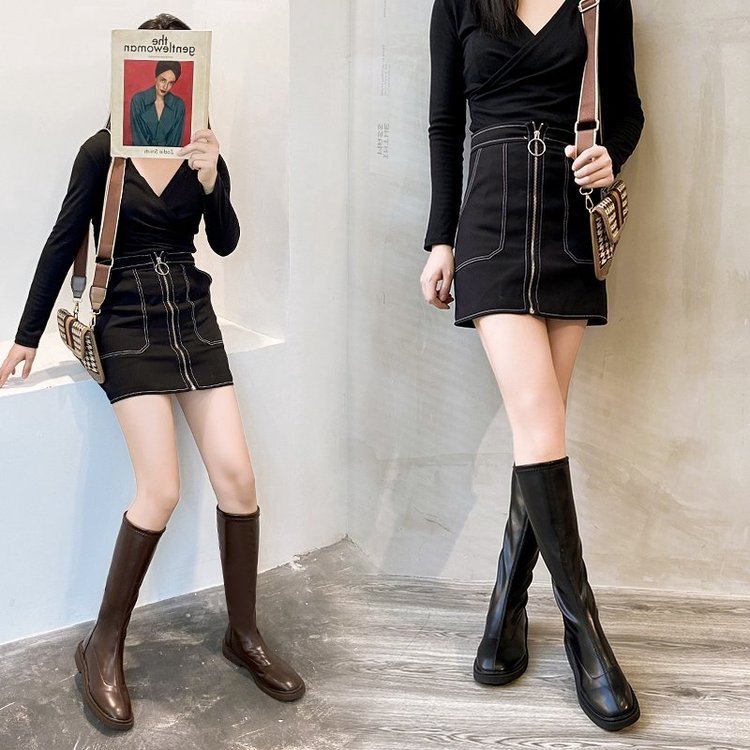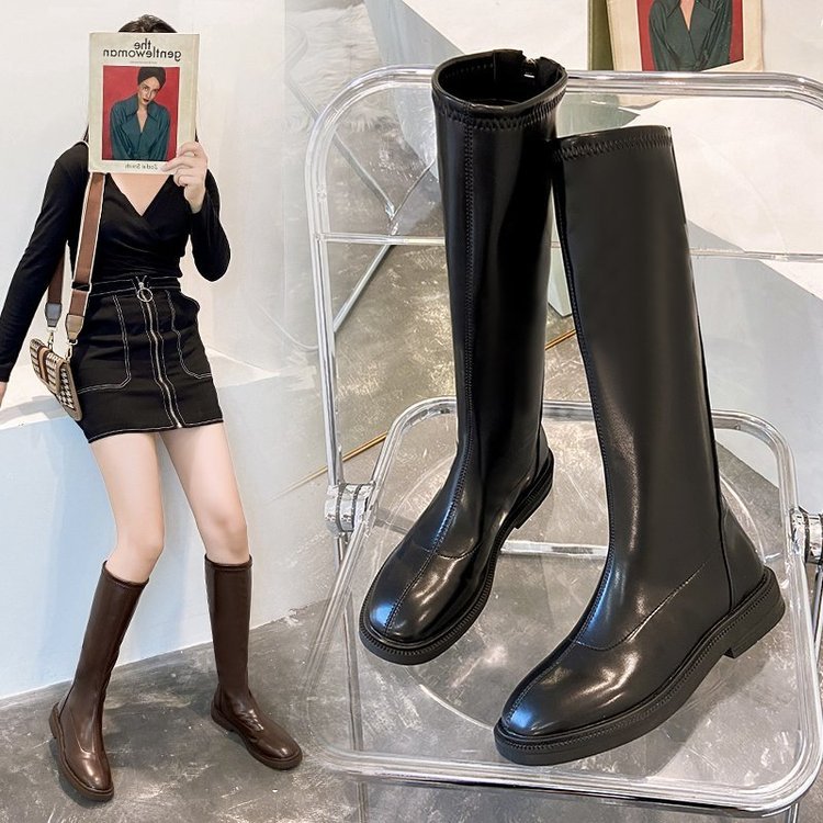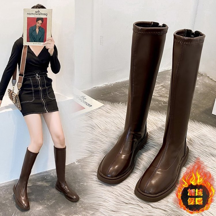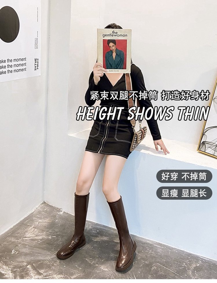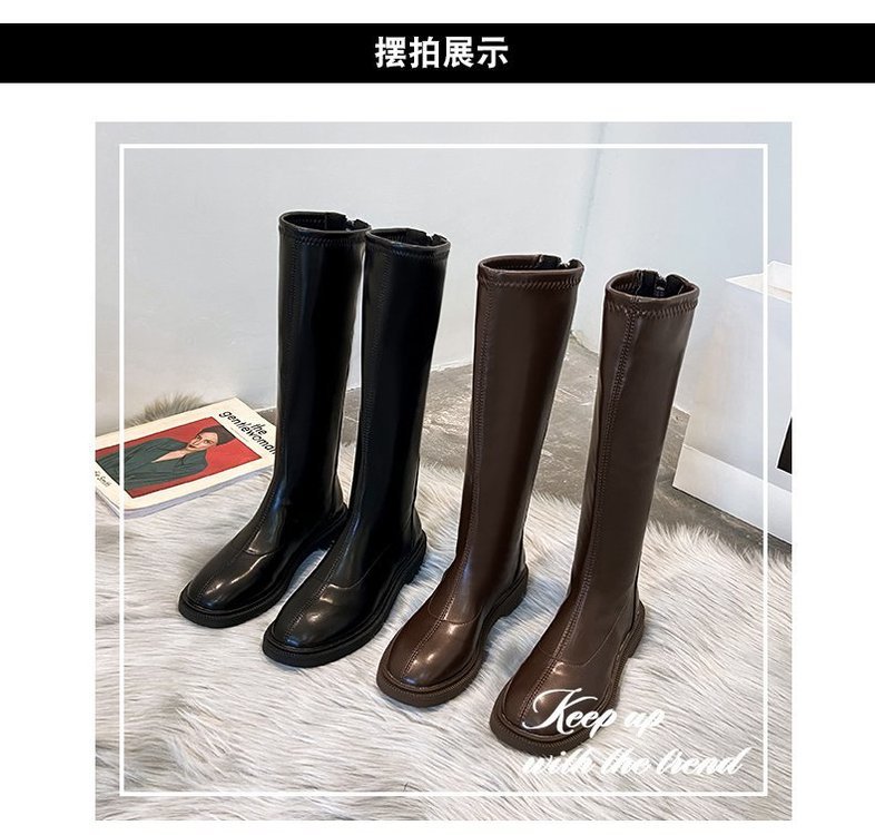秋冬新款网红英伦风瘦瘦靴ins休闲圆头高筒靴骑士靴长筒靴