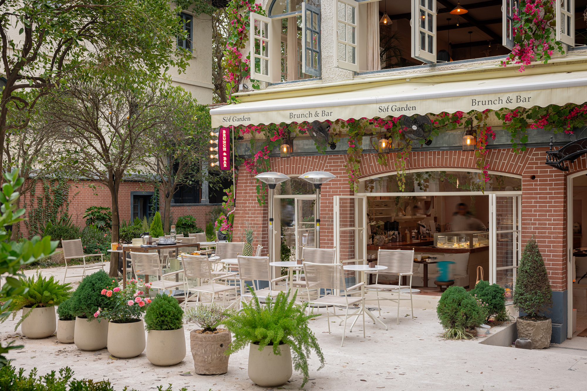 上下四层的美学空间与偌大的花园用餐区,诠释了一种“慢下来”的生活方式。从早上的咖啡、下午的Brunch到晚上的餐酒,店里提供全天候的All day美食理念,让你待一整天都不会腻。