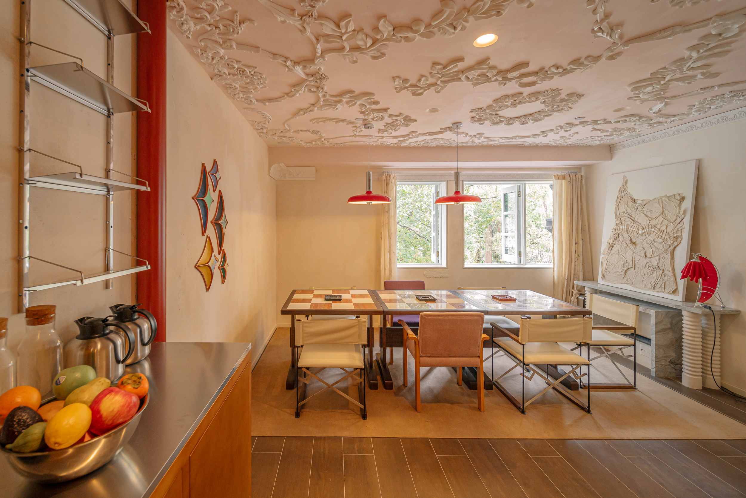 沿着楼梯来到以手冲及特调为亮点的二楼用餐区,给人一种舒适悠闲的度假风氛围。建筑本身的复古窗框自带时髦质感。店里摆设的家具与艺术品,亦皆为设计师精心挑选或用心打造,将细节的层次都拿捏得恰到好处。
