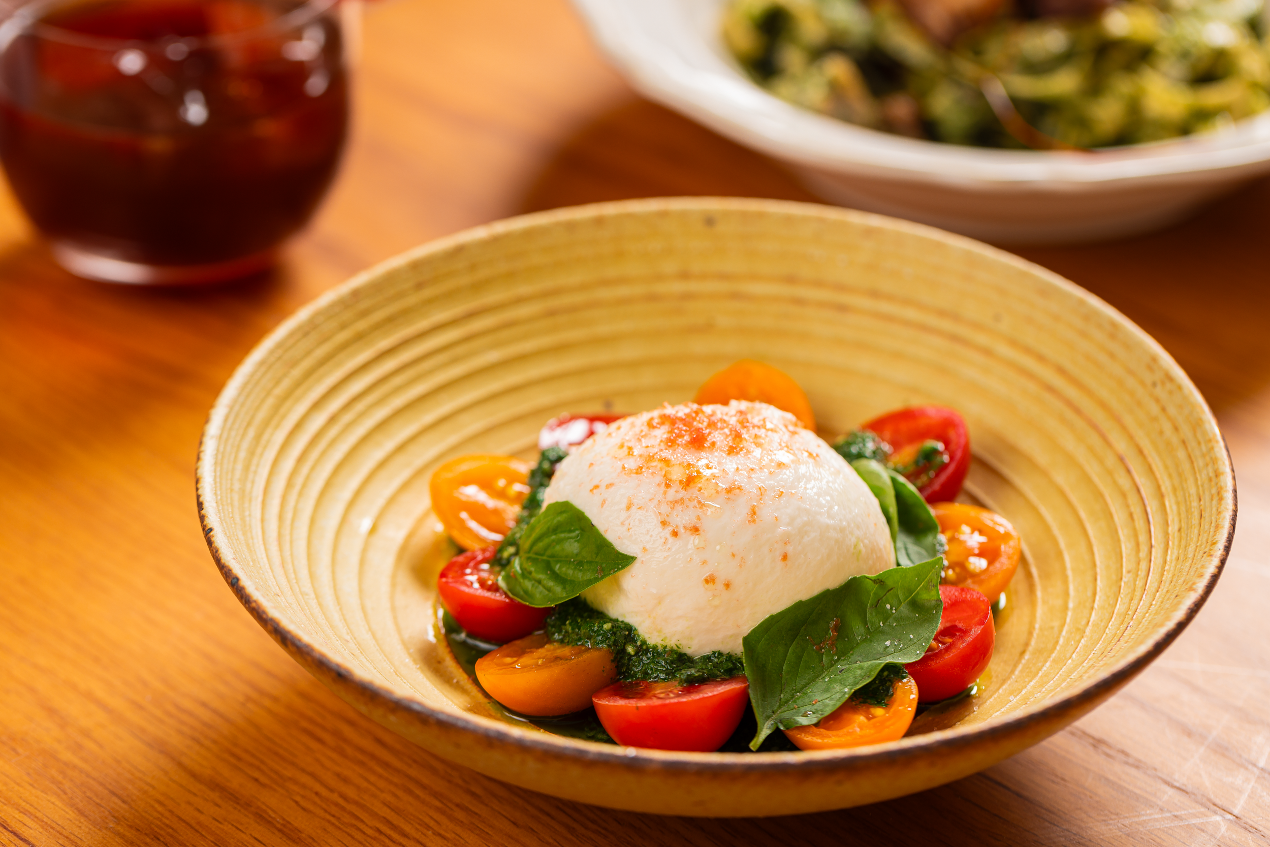 美如艺术品的番茄布拉塔,正适合作为前菜开场,酸酸甜甜的小番茄与奶香浓郁的奶包子就是经典CP,简单却不会出错。