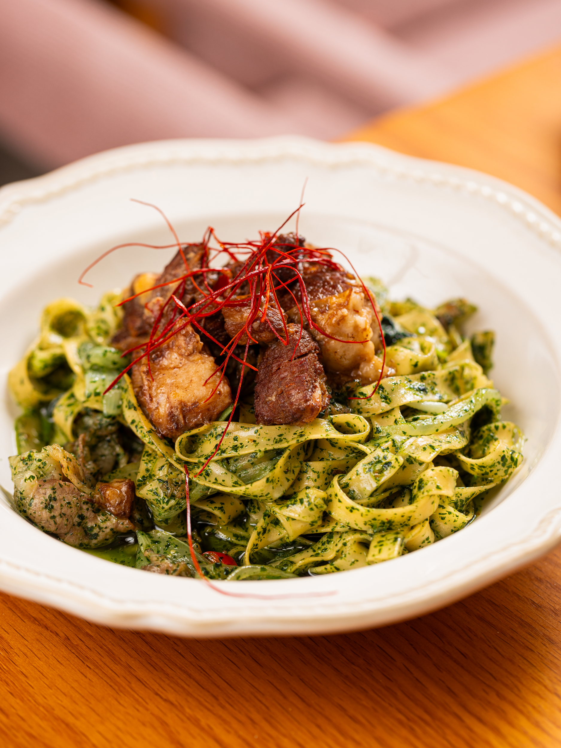 同时,意面也是每日手工现做的,目前菜单有青酱牛肉意面、泡菜奶油意面、蒜香虾仁扇贝意面三种口味,每一款都在水平之上。