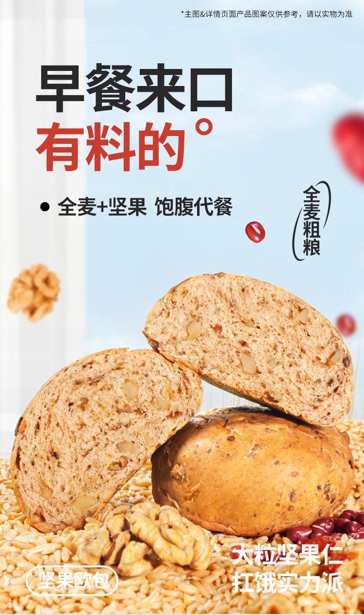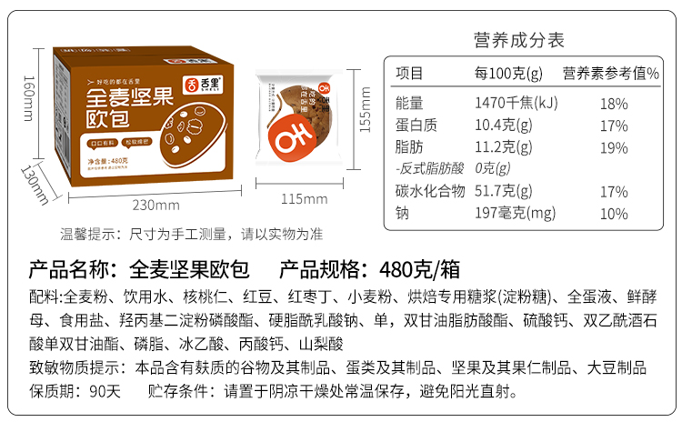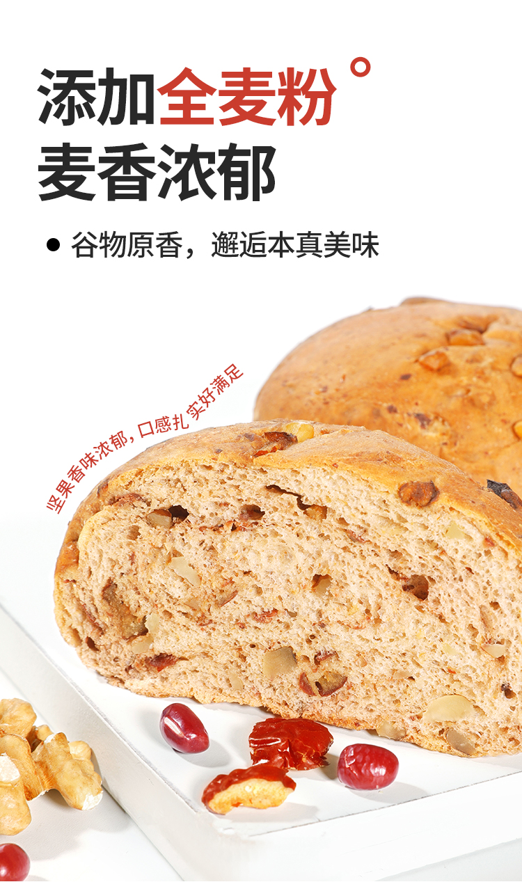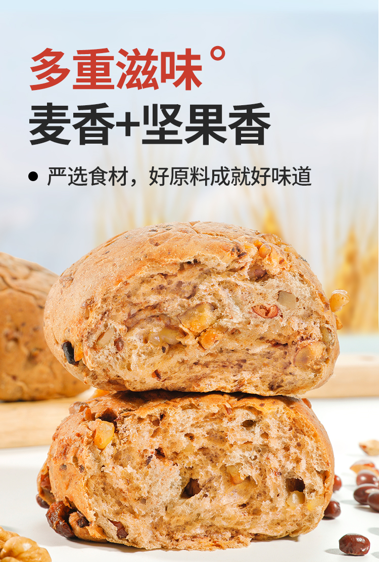 【舌里全麦坚果欧包480g/箱】早餐搭档 全麦坚果面包软欧包