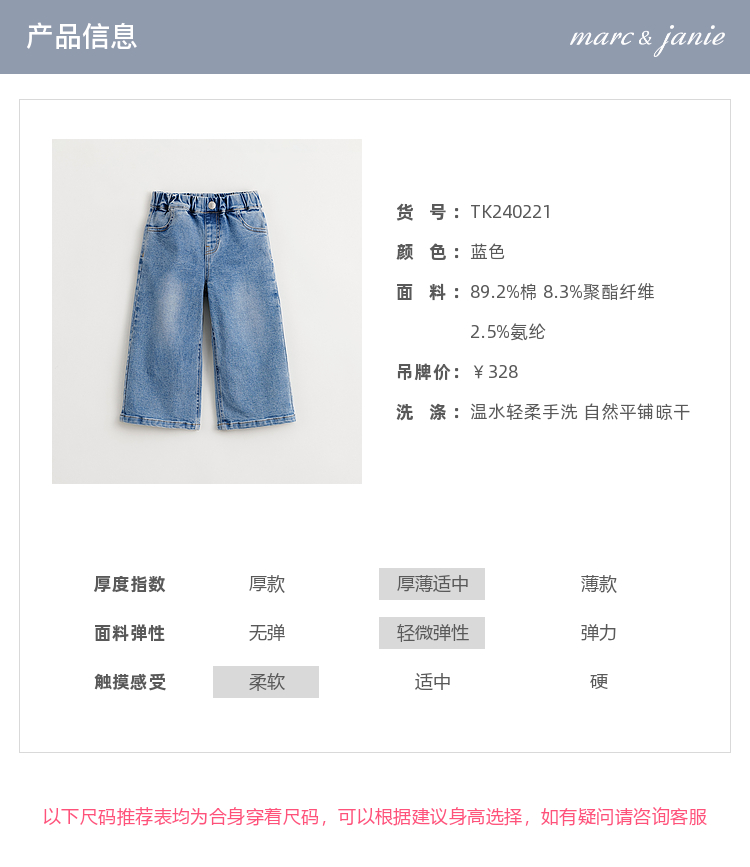 马克珍妮女童时尚百搭直筒软牛仔裤儿童裤子2024年春装新款240221