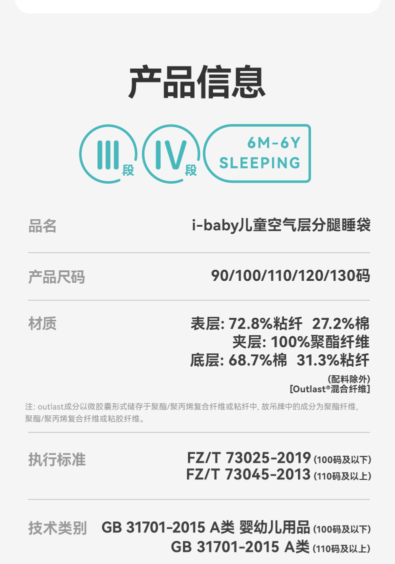 【79元秒杀断码清仓】i-baby德国outlast竹棉恒温睡袋 空气层分腿睡袋【若缺货会安排退款】