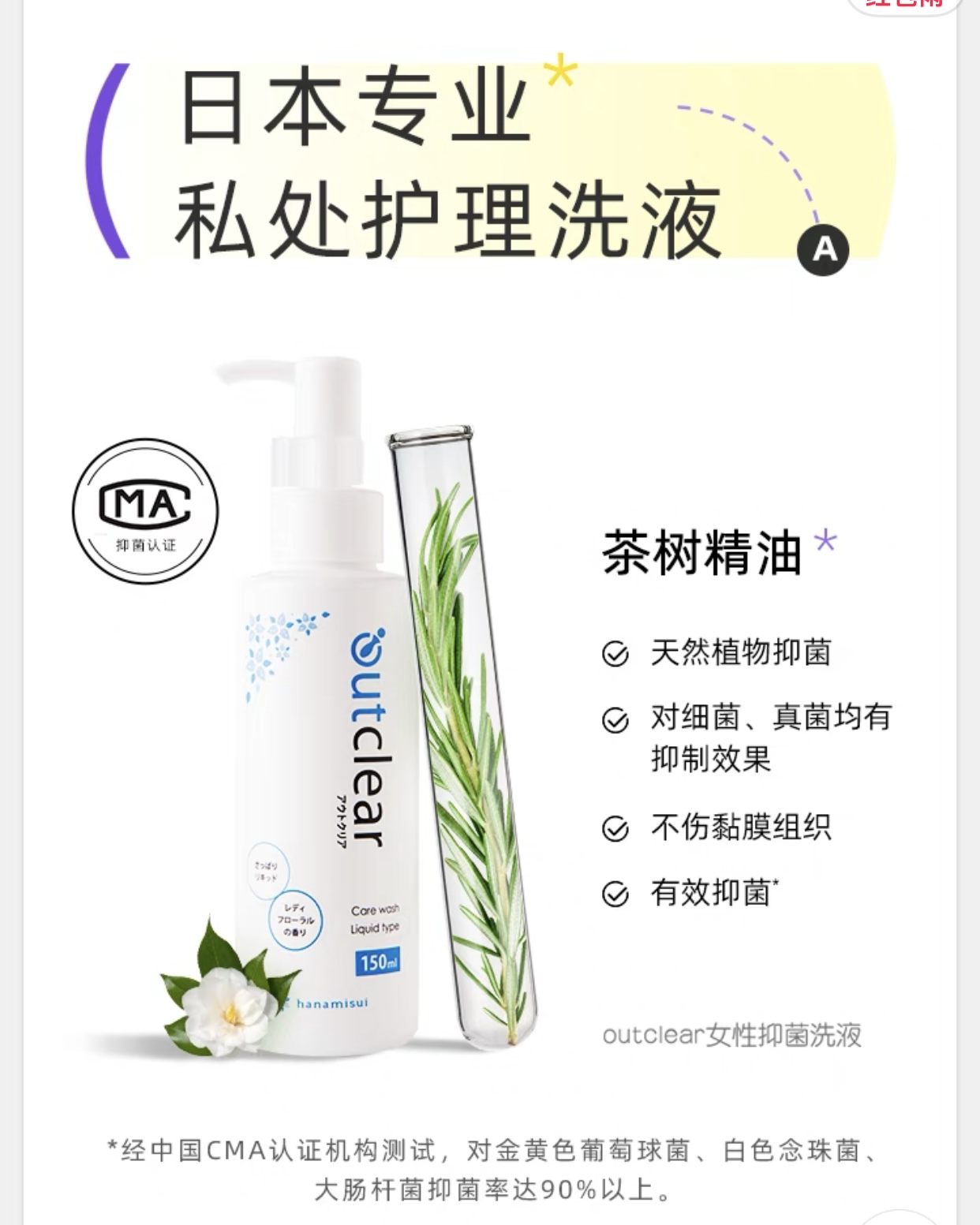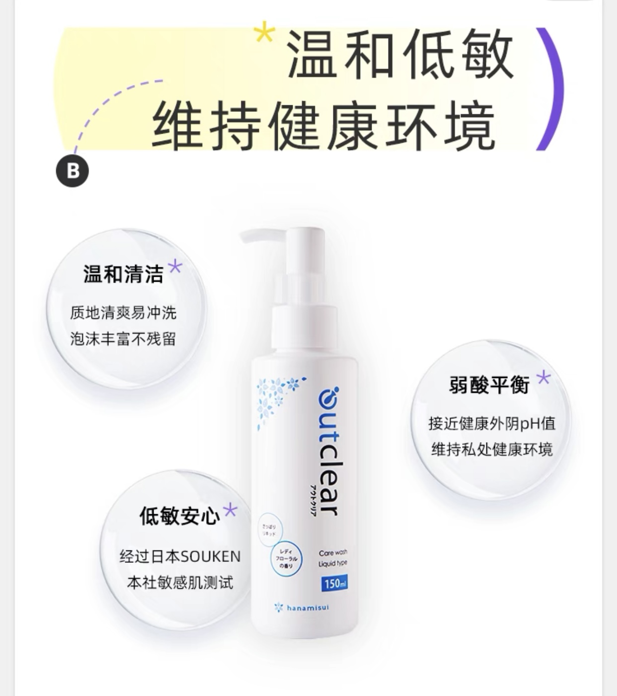 日本inclear女性私处清洗护理液Outclear弱酸性去异味抑菌止痒150ml