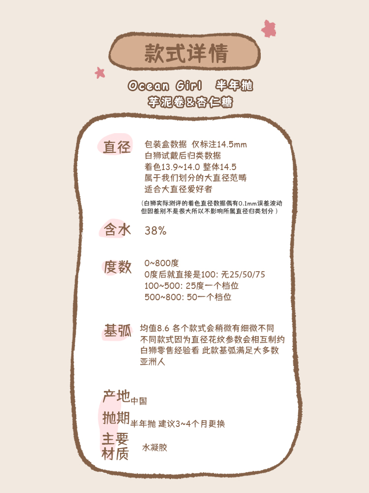 Ocean Girl旗下 · 芋泥卷&杏仁糖 |14.5mm白狮参考着色大直径 半年抛