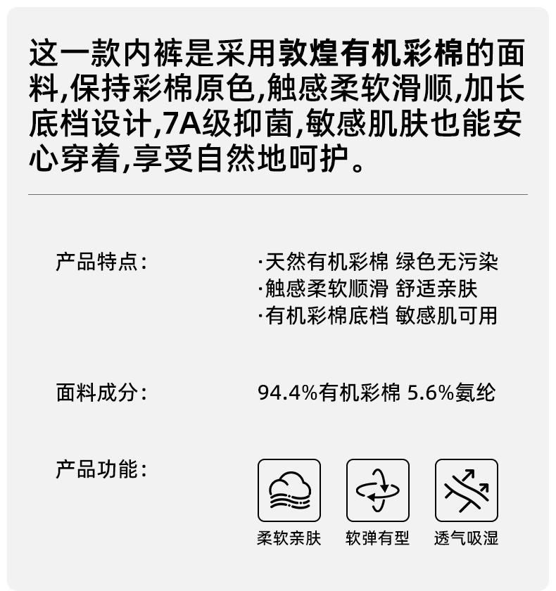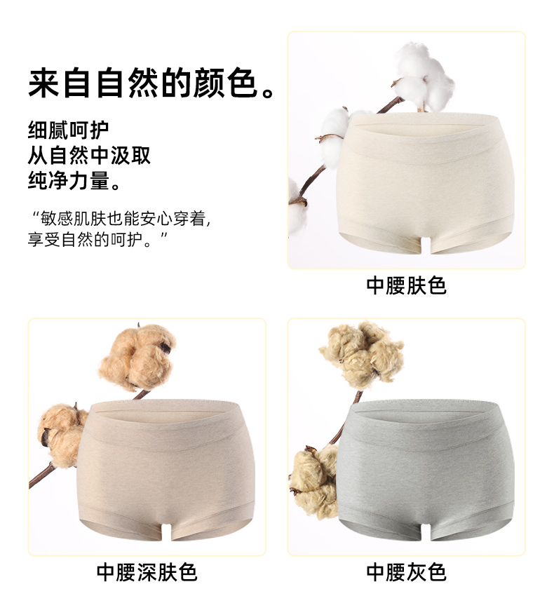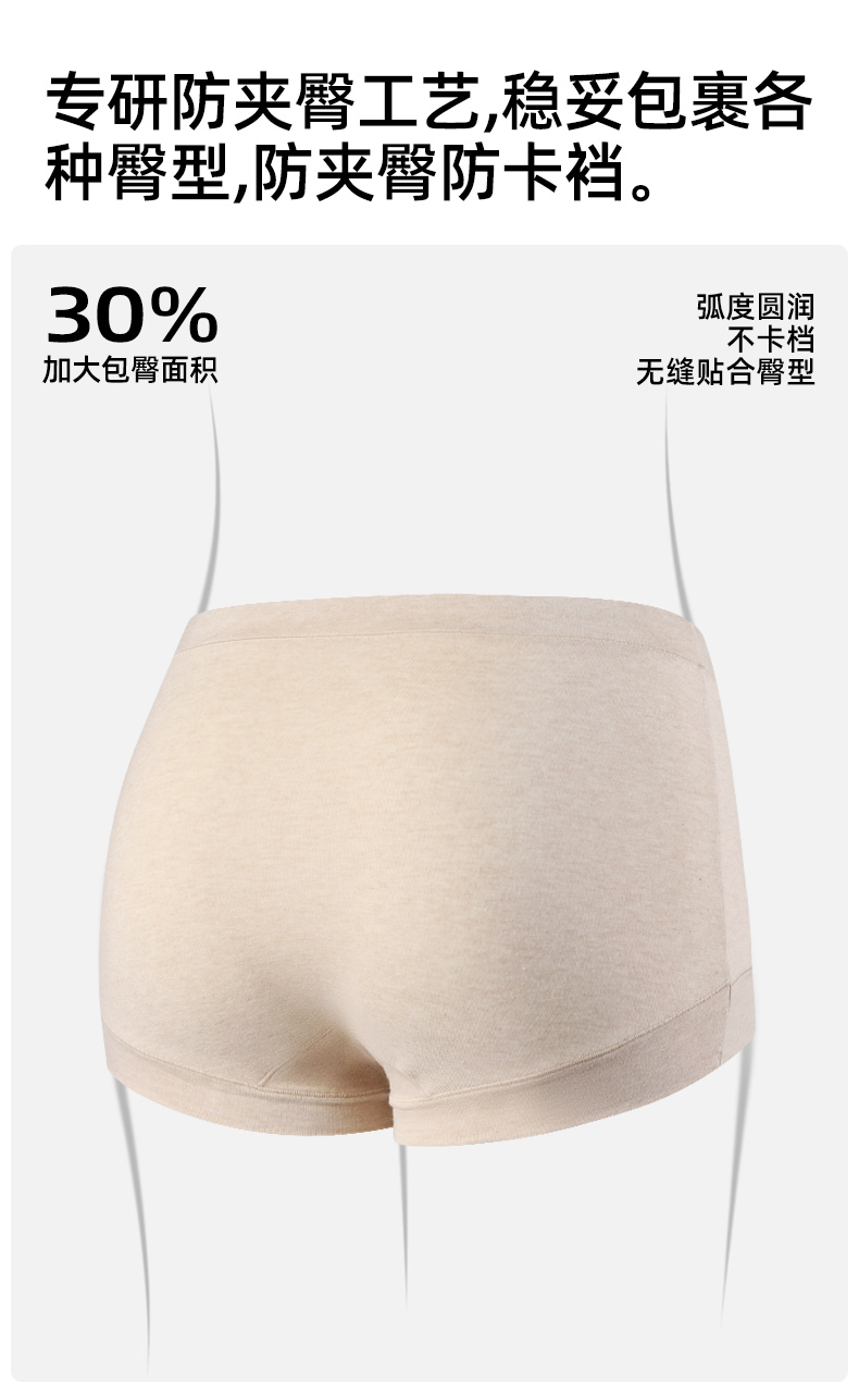 布冇有机棉女士平角内裤 高腰中腰经典四角裤