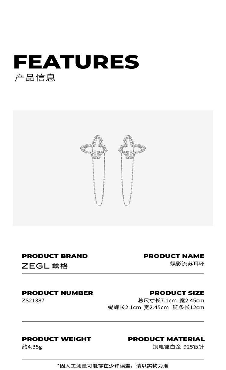 ZEGL设计师蝴蝶流苏耳环女长款2021年新款高级感耳钉925银针耳饰
