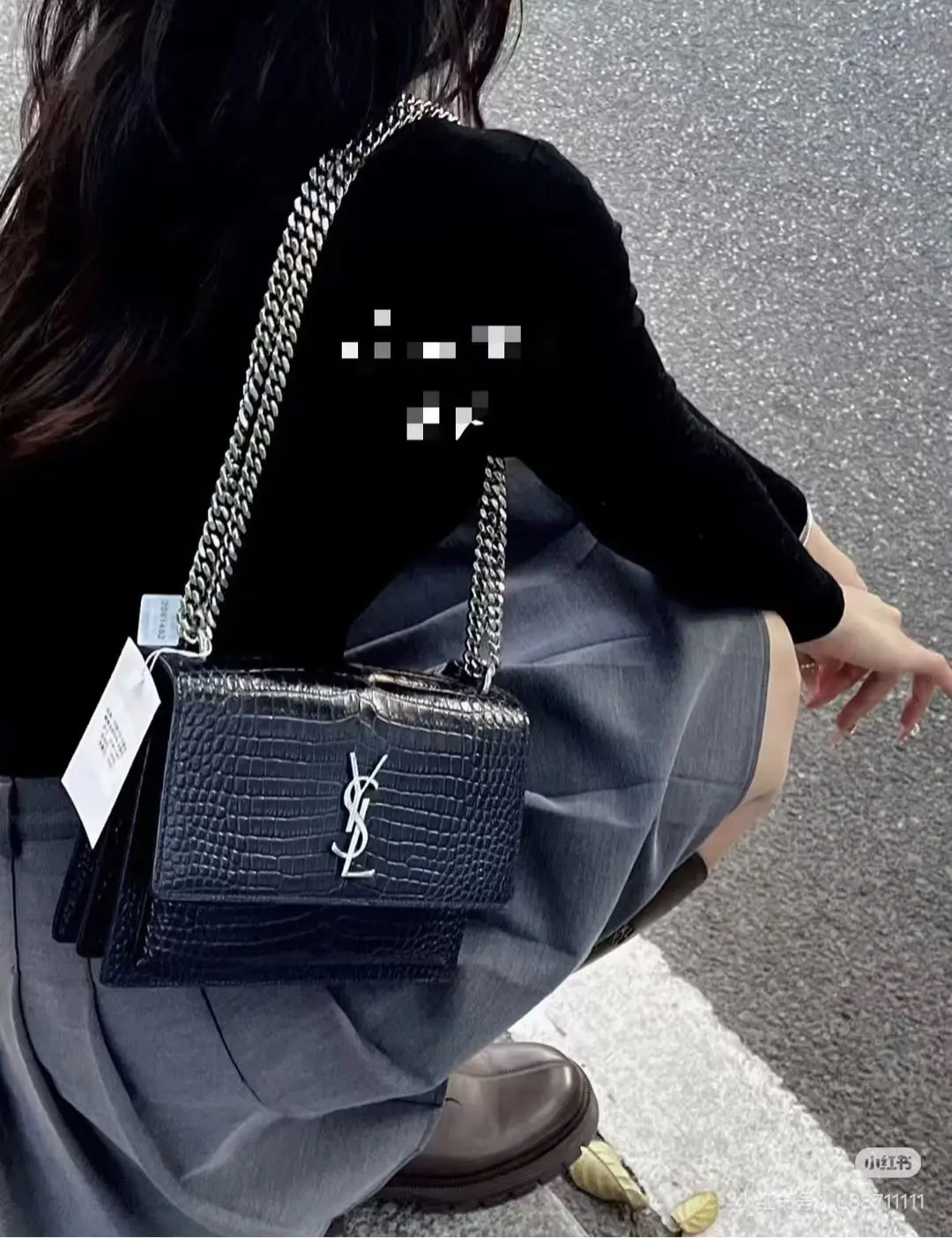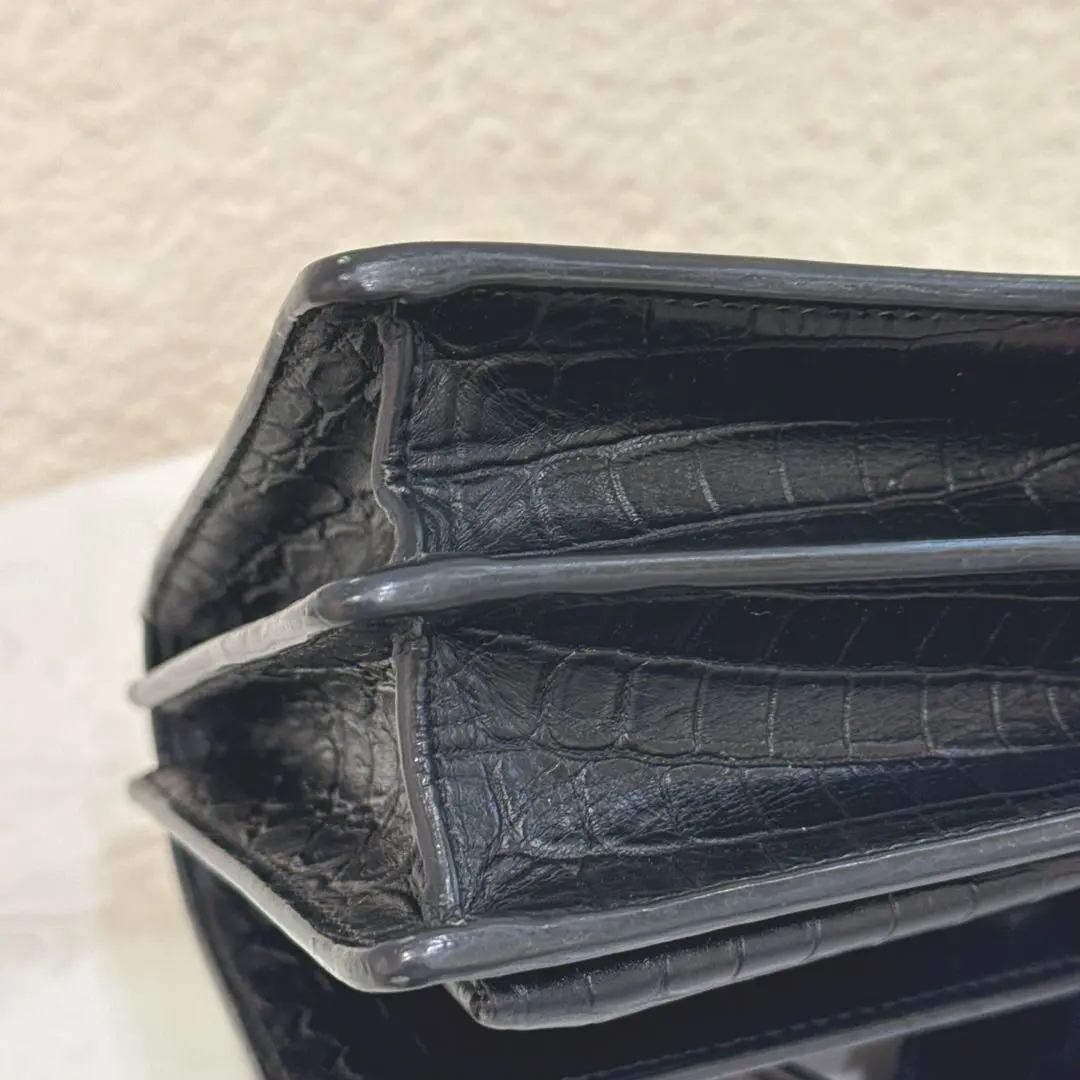 YSL 中号 黑金 鳄鱼压纹牛皮 日落包