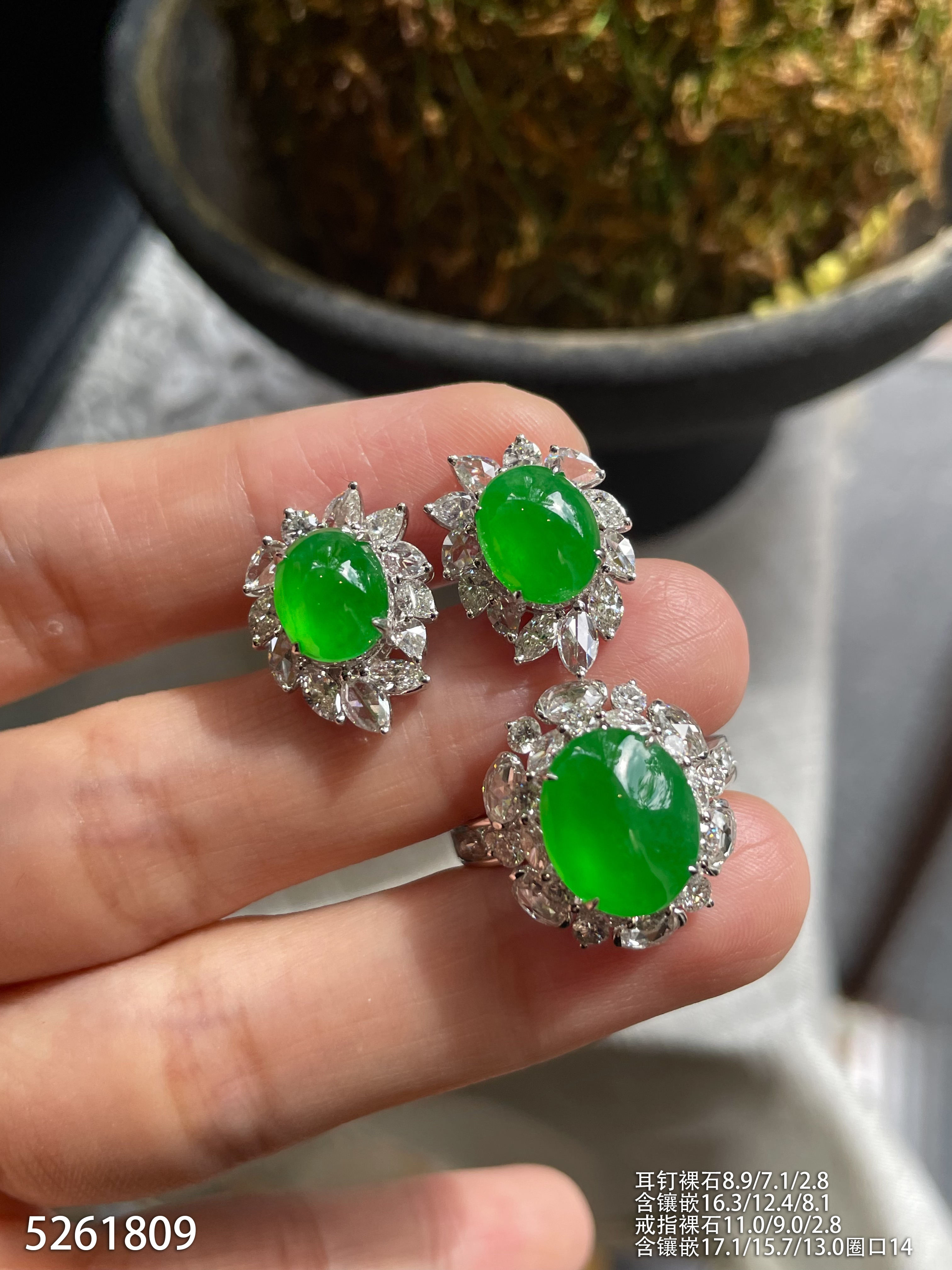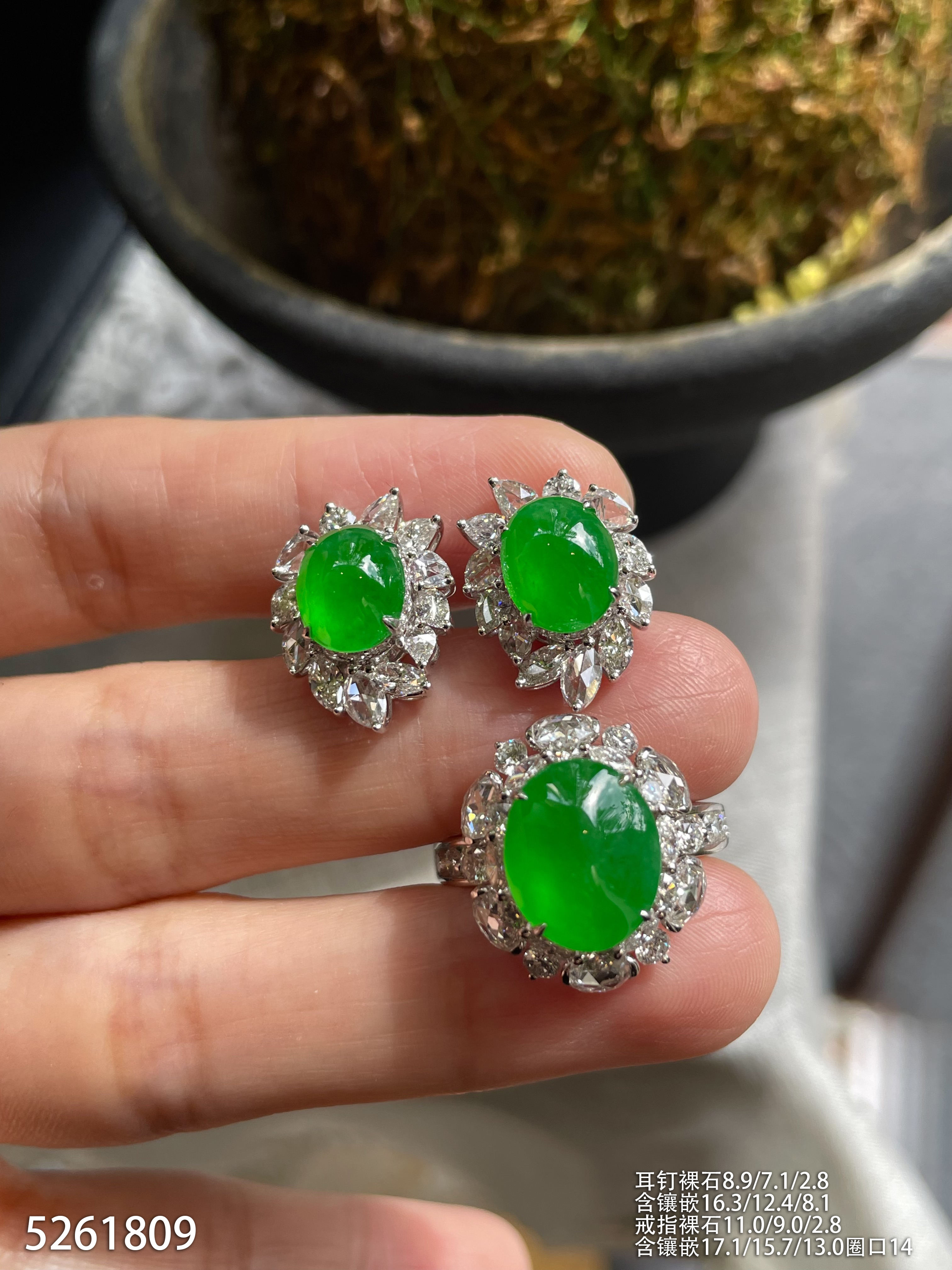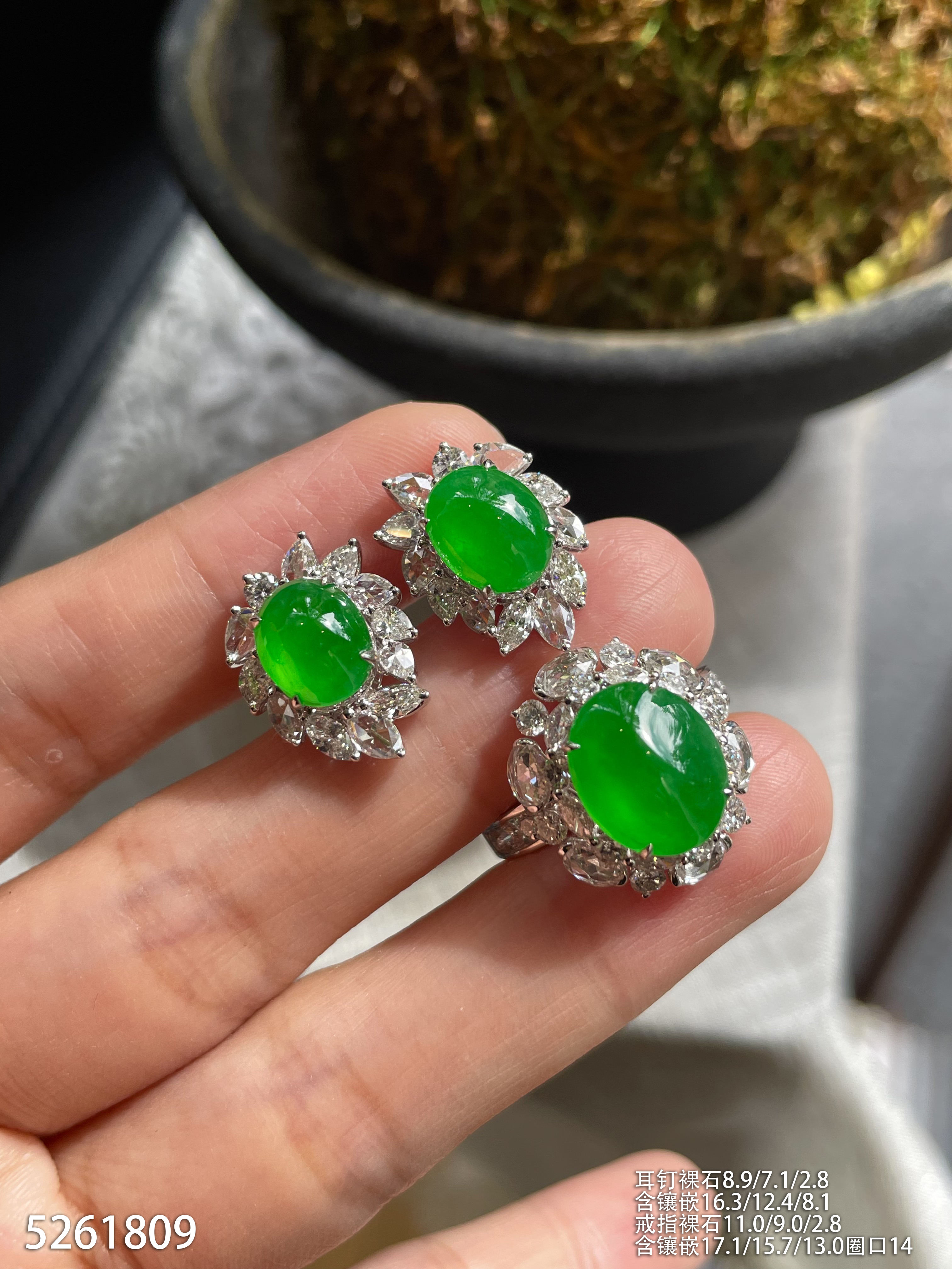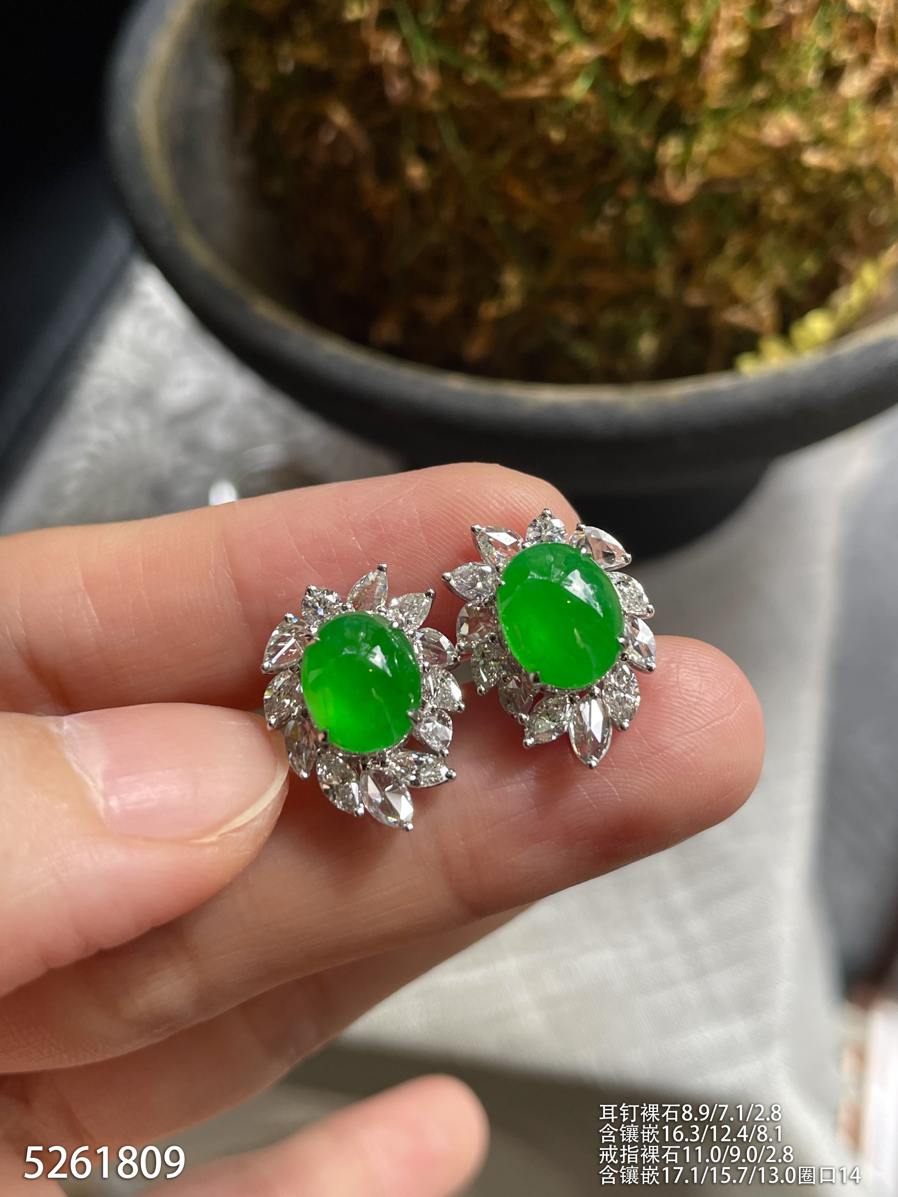 81-1072707,老坑玻璃种帝王绿蛋面耳坠,具体价格微信咨询