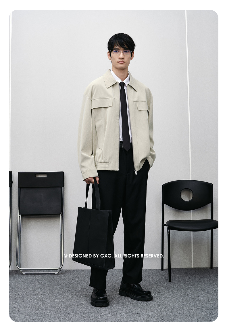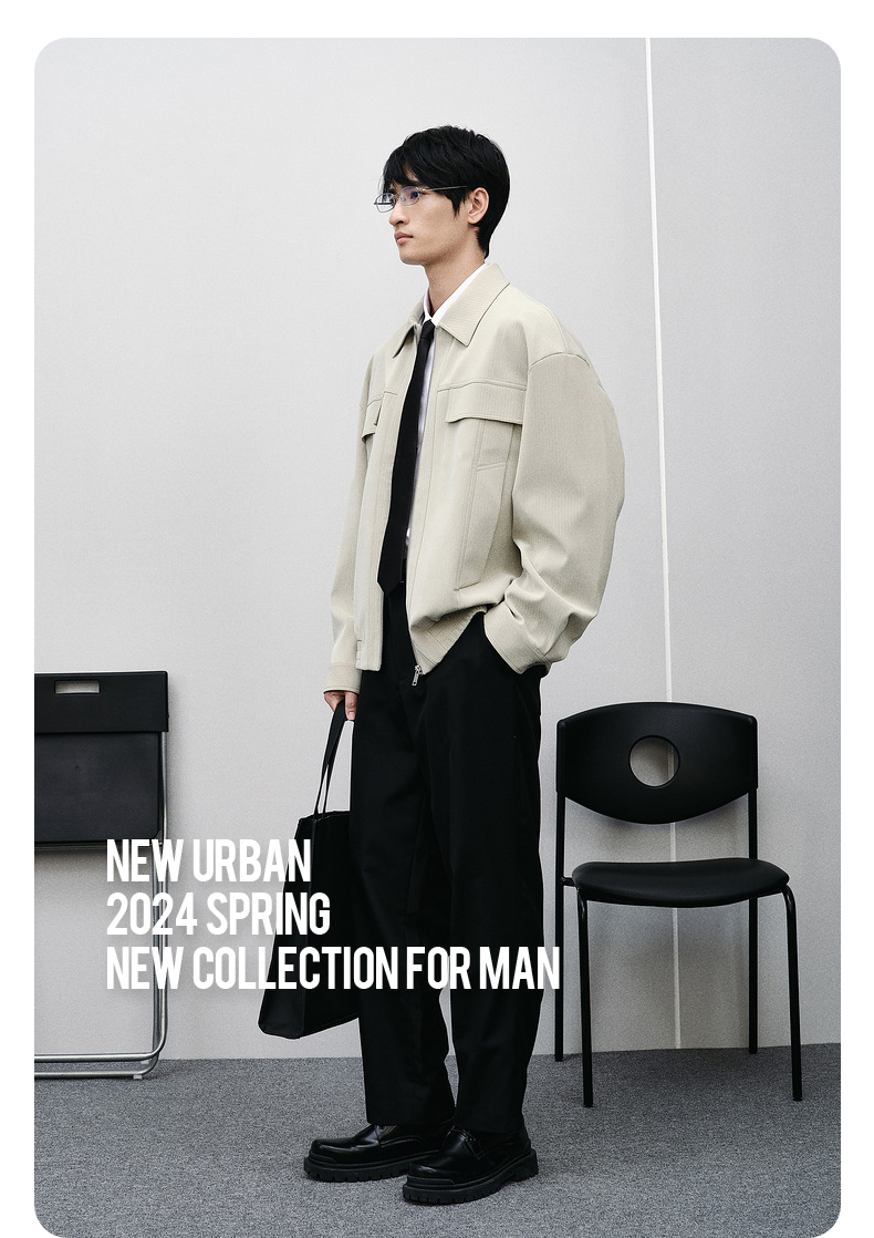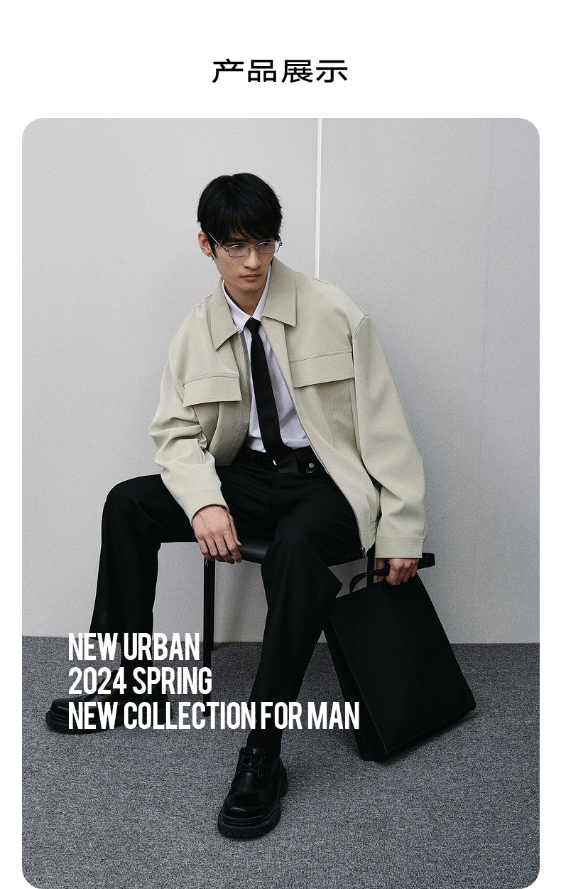 GXG男装 灰绿条纹pu翻领夹克 2024年春季热卖GFX12100911