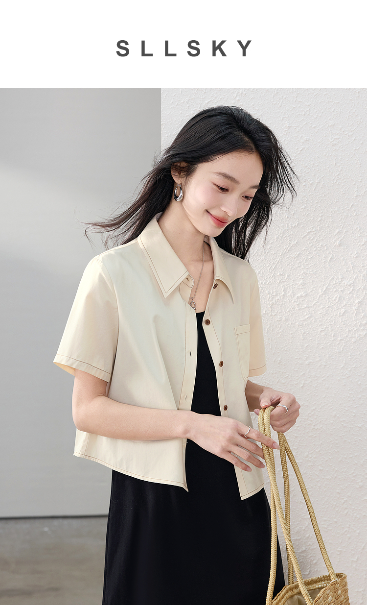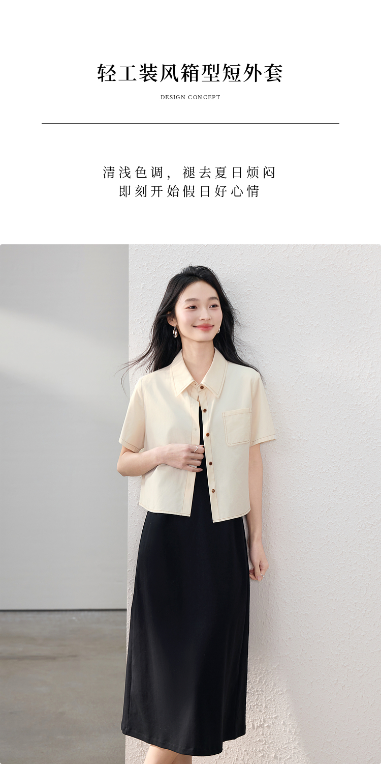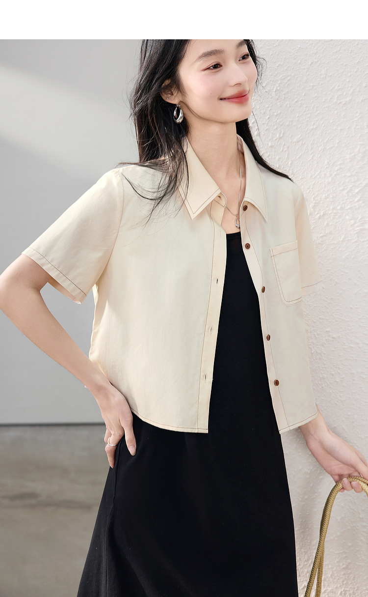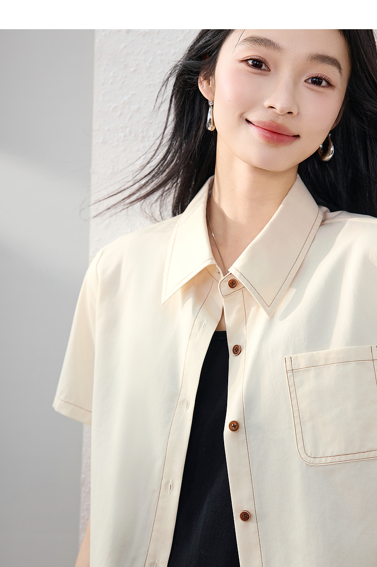 【夏日新品】熙世界工装风衬衫短外套女小个子莱赛尔天丝短袖上衣2025夏装新款