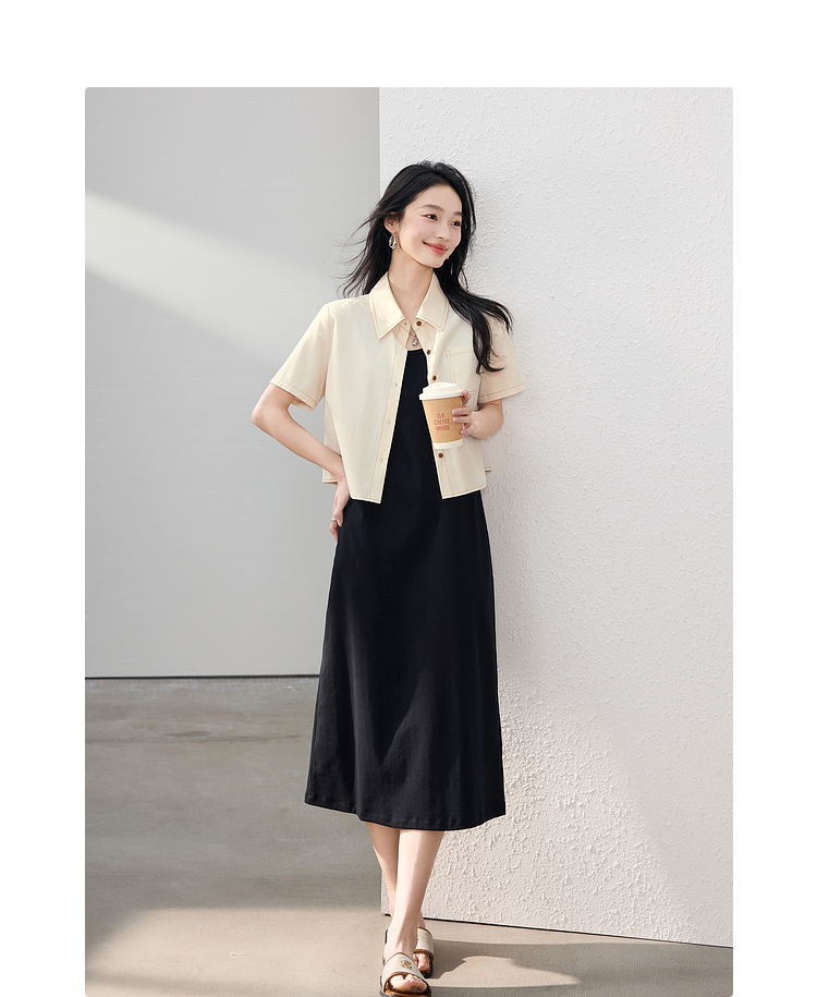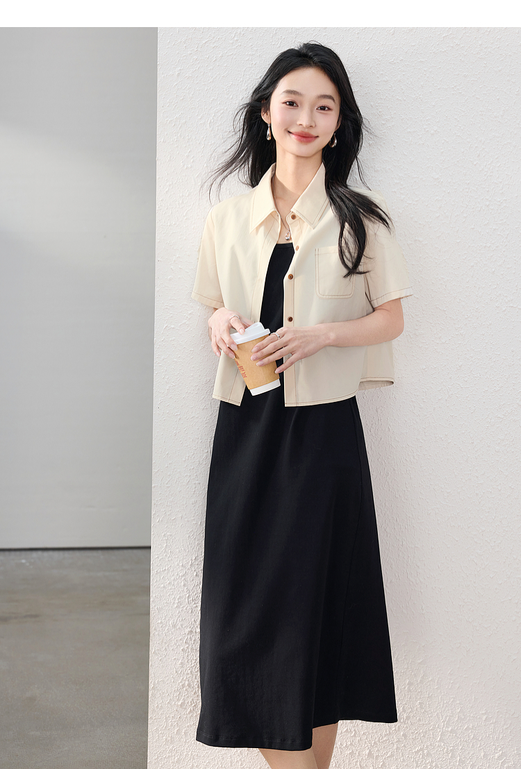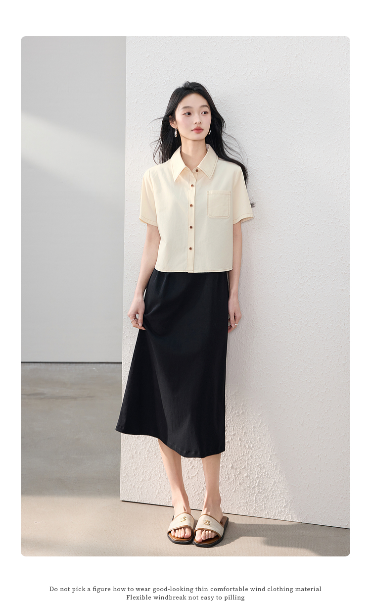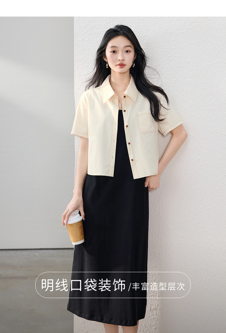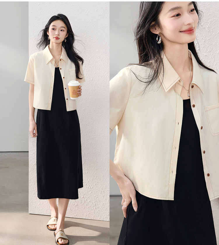 【夏日新品】熙世界工装风衬衫短外套女小个子莱赛尔天丝短袖上衣2025夏装新款