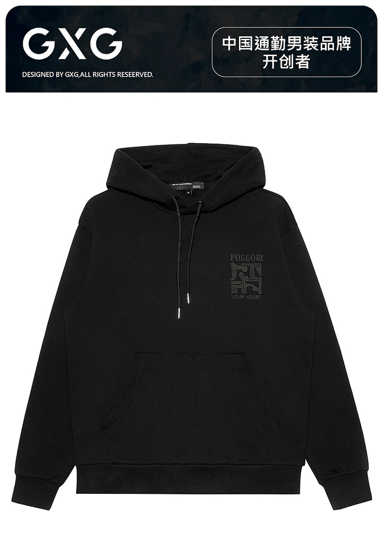 GXG男装26春季时尚潮流刺绣简约百搭套头宽松休闲男式连帽卫衣K&C