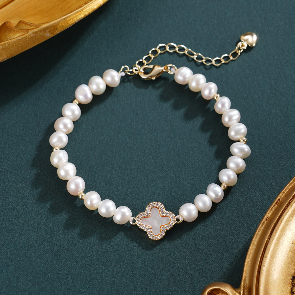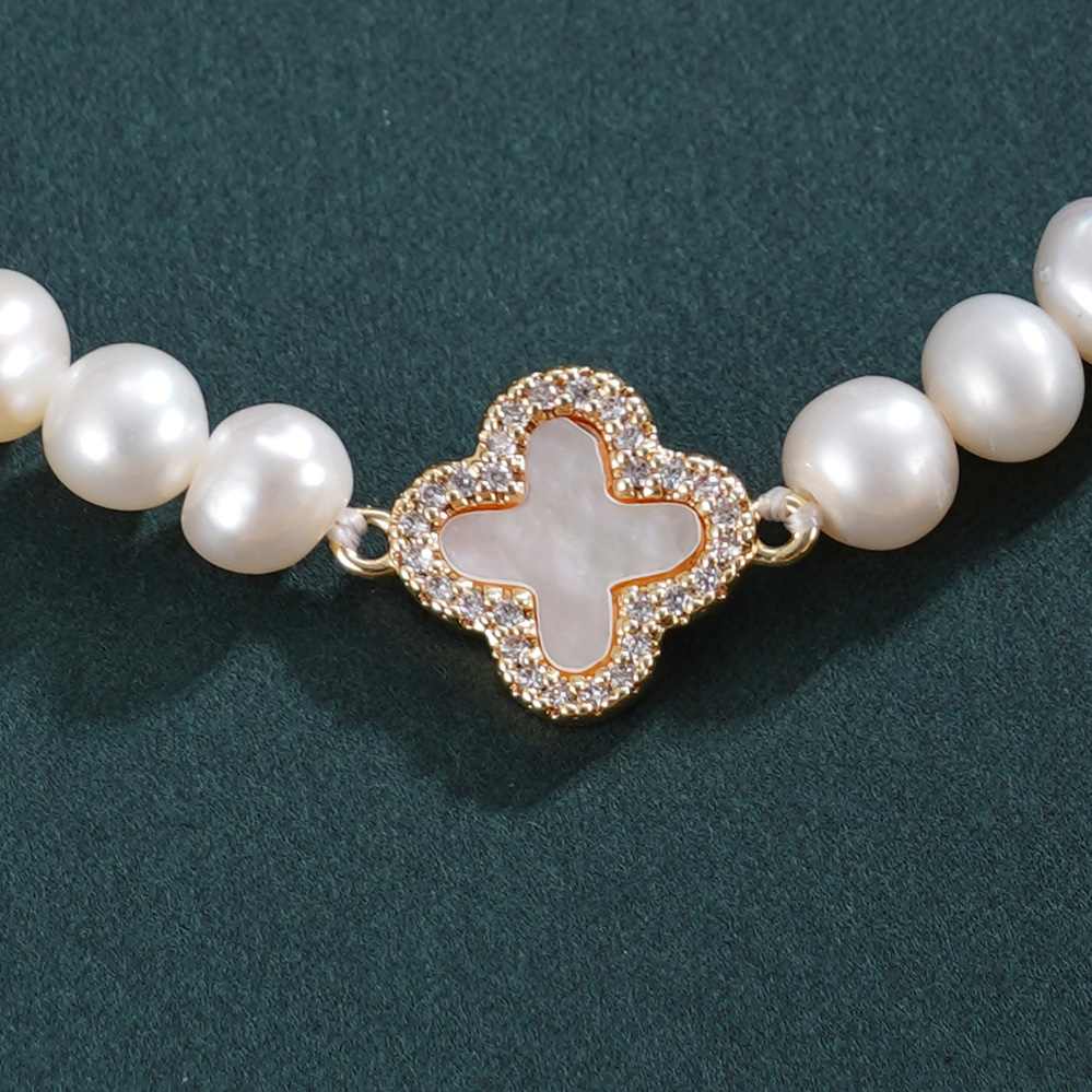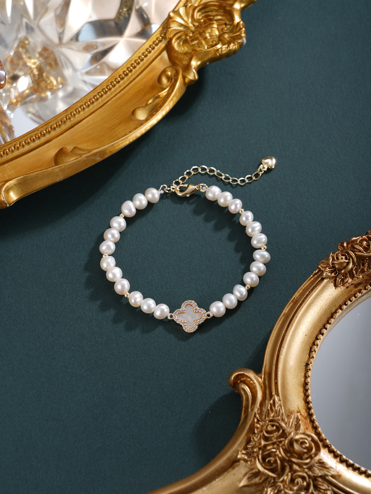 子佩集【四叶寄情】珍珠惜王妃手链【ZZSL008】5.5-6mm珠镀金四叶草2601