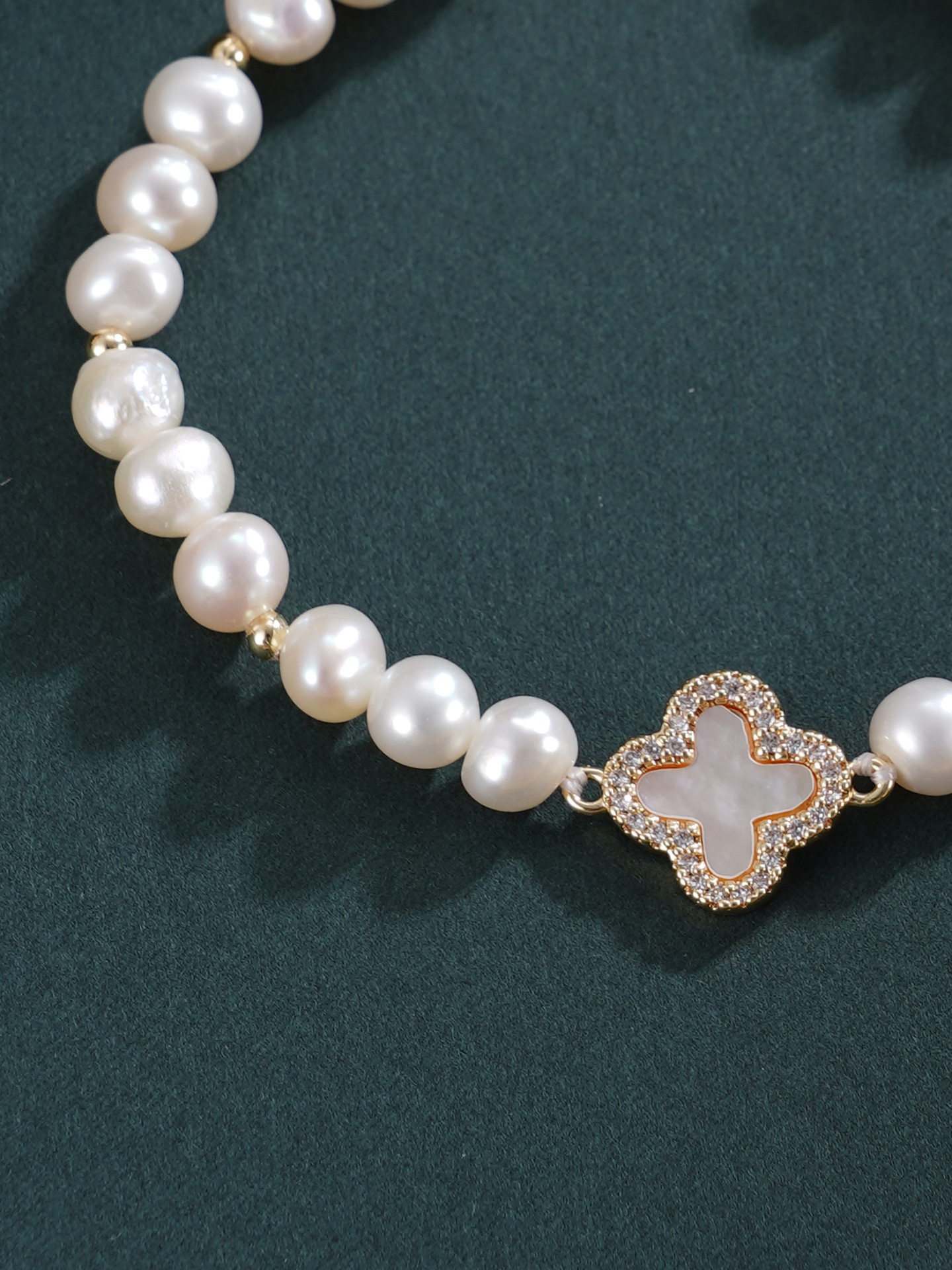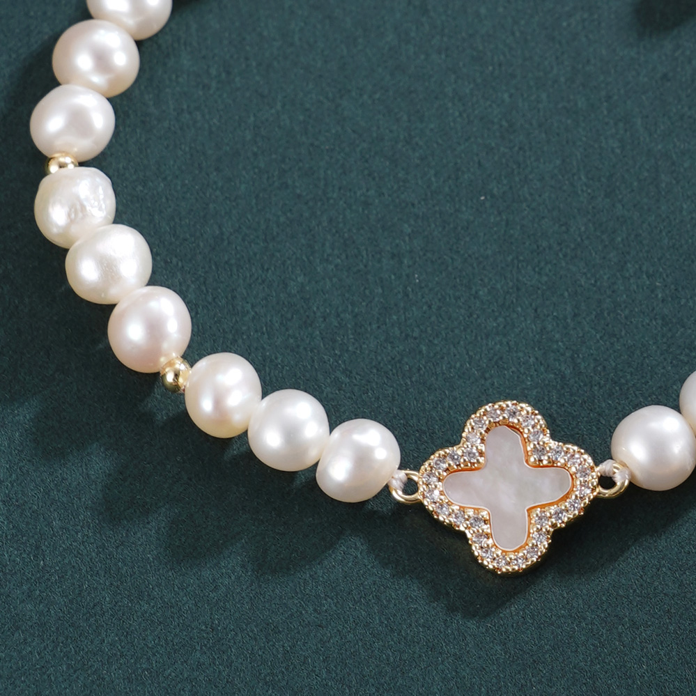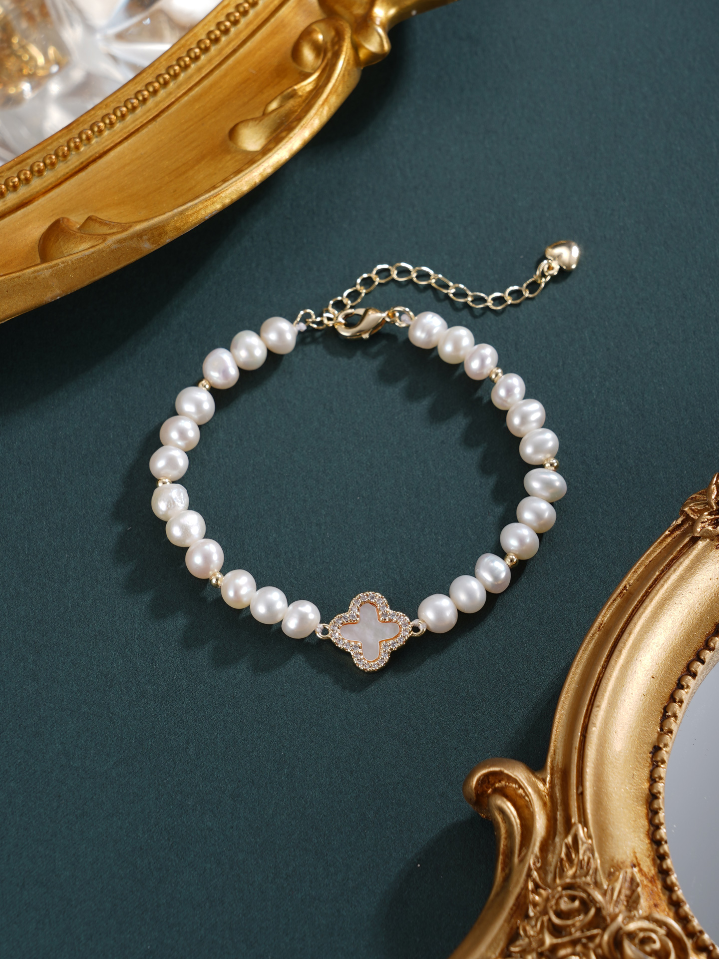 子佩集【四叶寄情】珍珠惜王妃手链【ZZSL008】5.5-6mm珠镀金四叶草2601