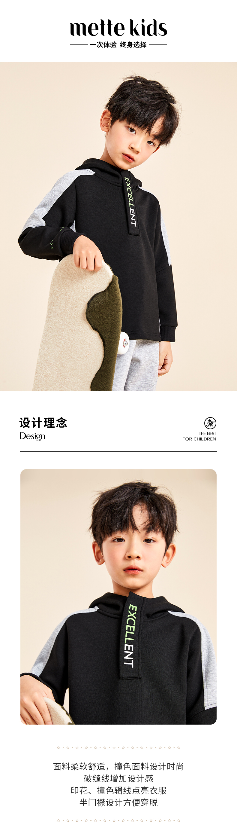mettekids儿童卫衣2022春秋新款字母印花男童洋气时髦潮套头上衣