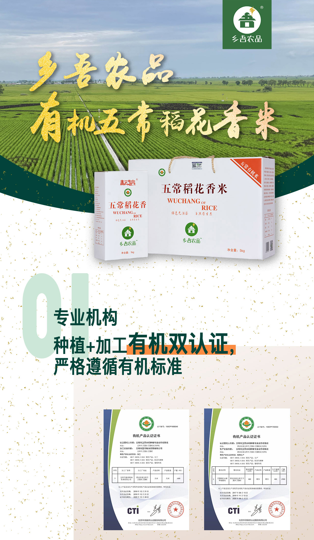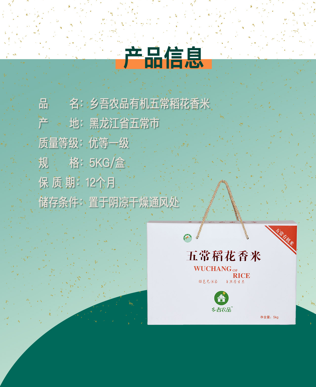 【乡吾农品】有机五常稻花香(礼盒装1KG*5)